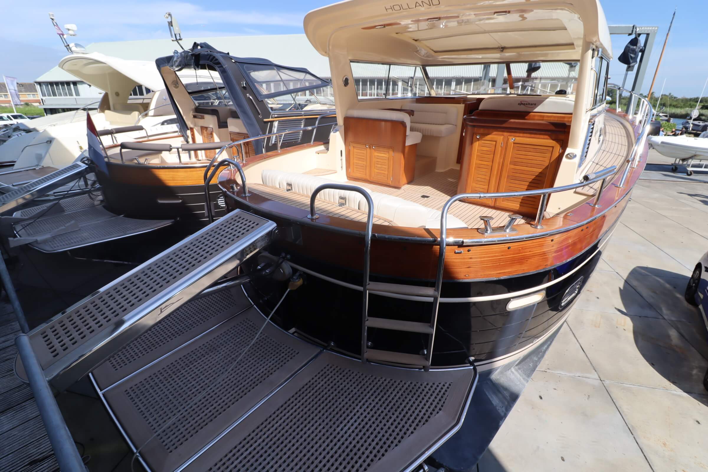 The Apreamare 12 meter Cabinato is 40 feet of lovingly designed and exquisitely finished yacht. She has always been well maintained and is ready for direct delivery. For the yachting enthusiast who appreciates the tradition but values enduring craftmanship, the Apreamare 12 Comfort will be a treat to own. NEW cockipitcover, major service, NEW plotter, NEW autopilot, NEW radar in 2019. Colour of the hull is black.