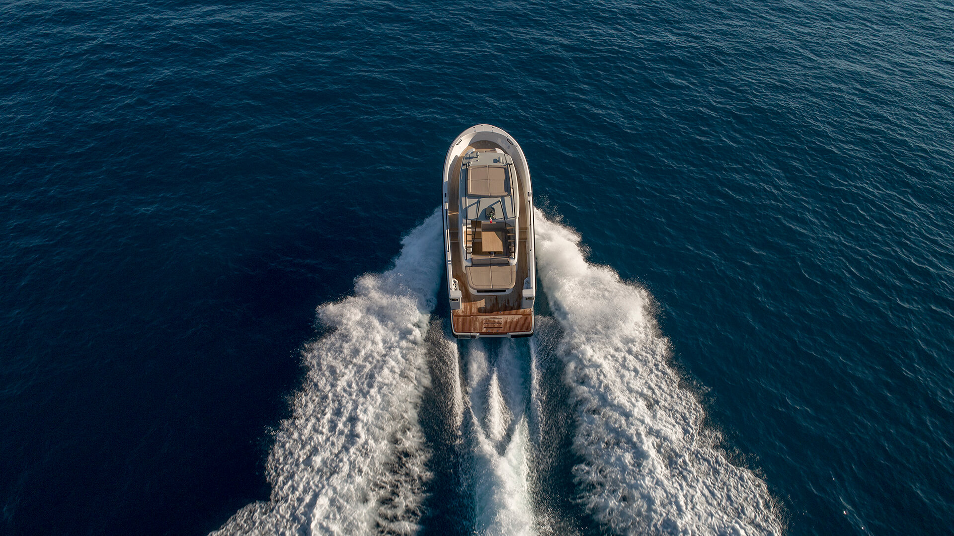 BG42 condenses all the characteristics of Bluegame into 13 meters. Equipped with a large cockpit, a walk-around protected by high edges for secure and safe operations in the open sea and ample visibility when manoeuvring, thanks to the central control station and the reverse glass. The layout features the use of the full beam to have the owner’s cabin in the centre of the boat with a king-size double bed and a dining area in the bow that can accommodate up to six people and which can be converted into a double bed.