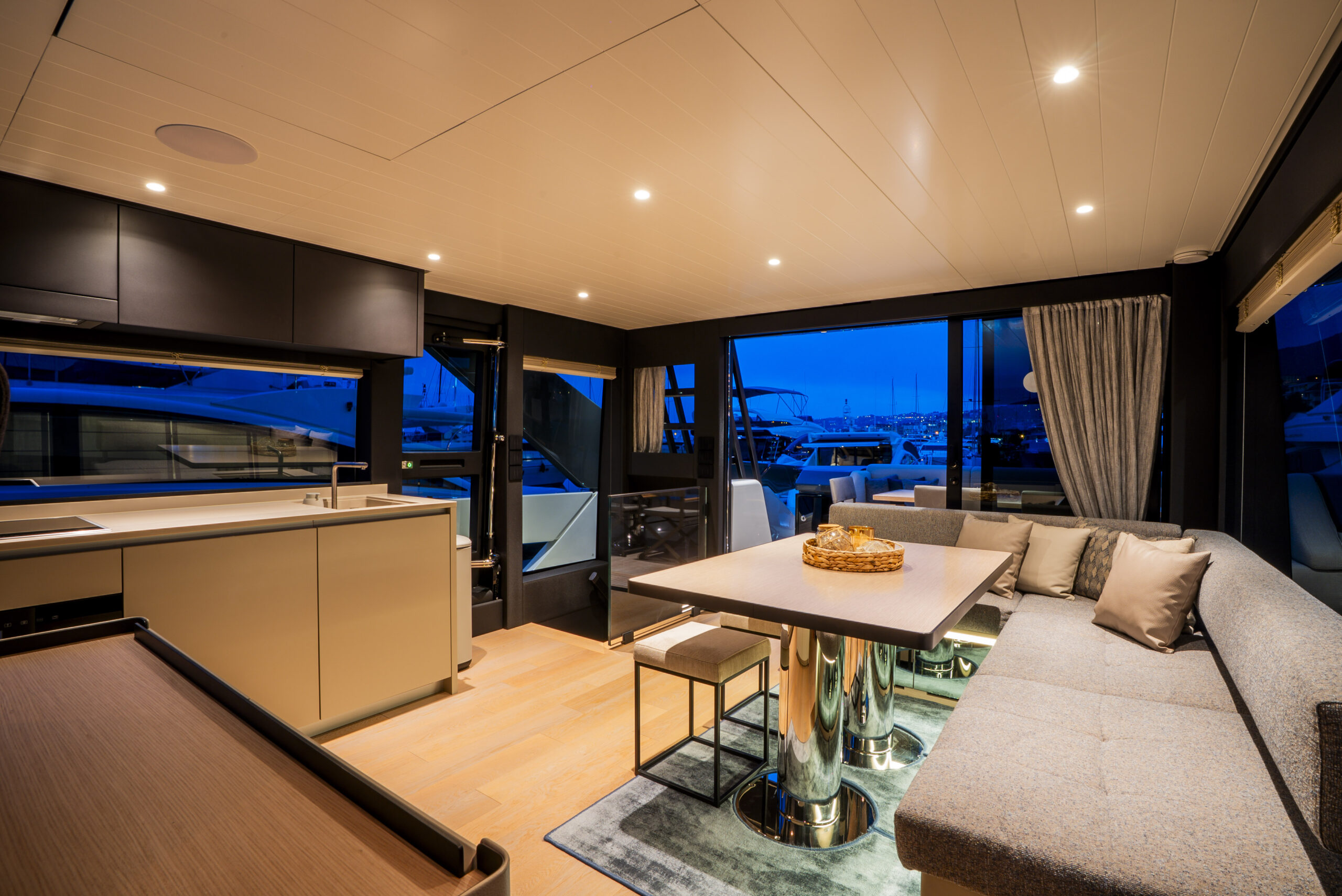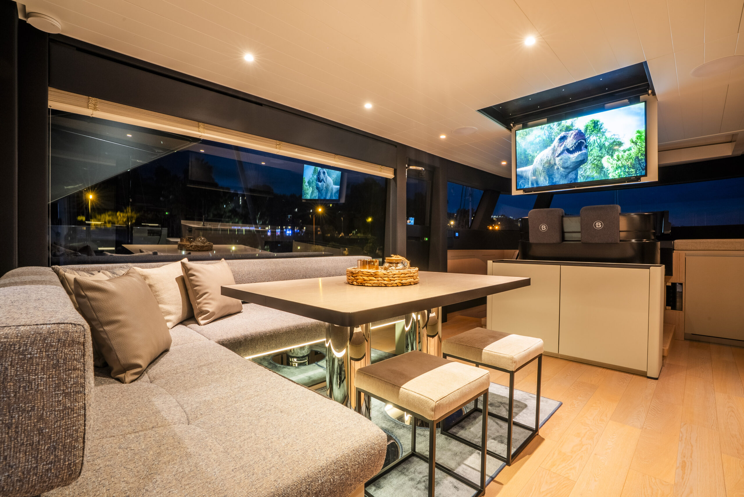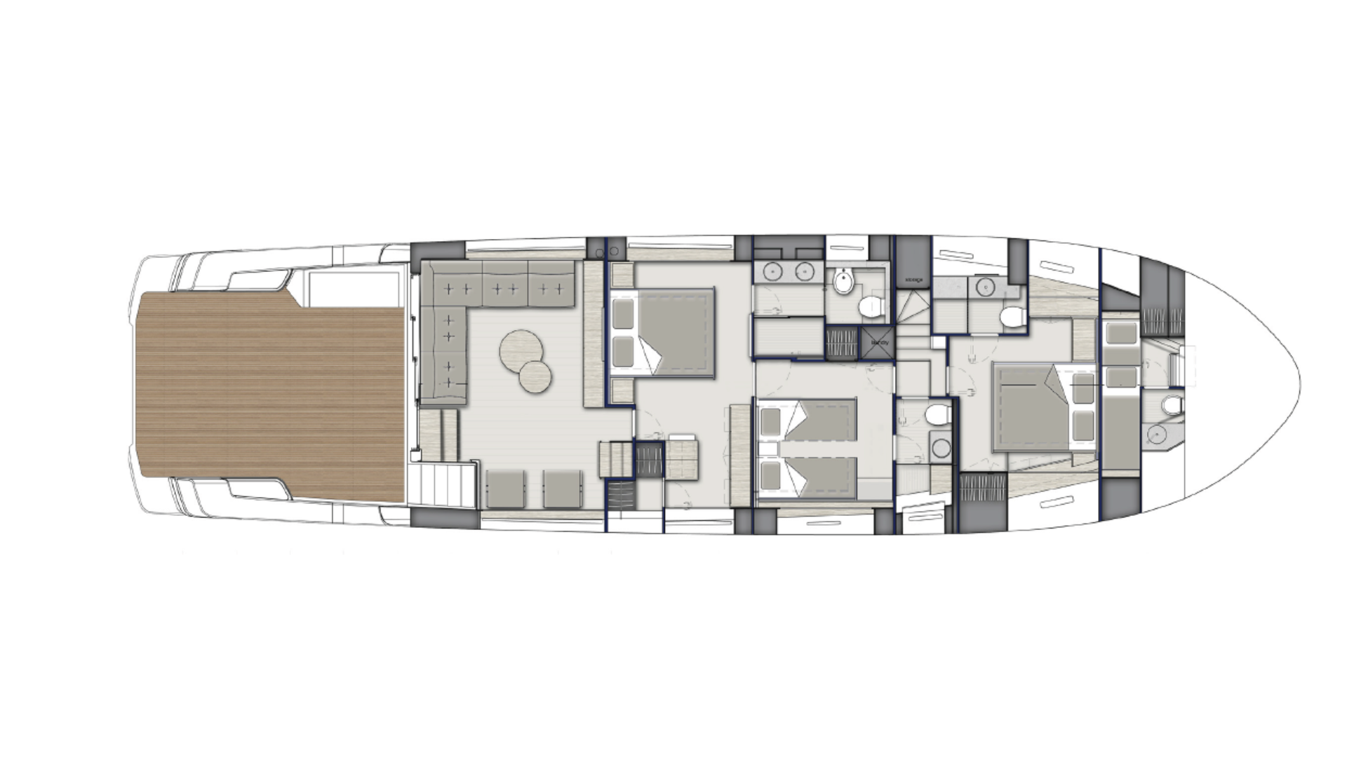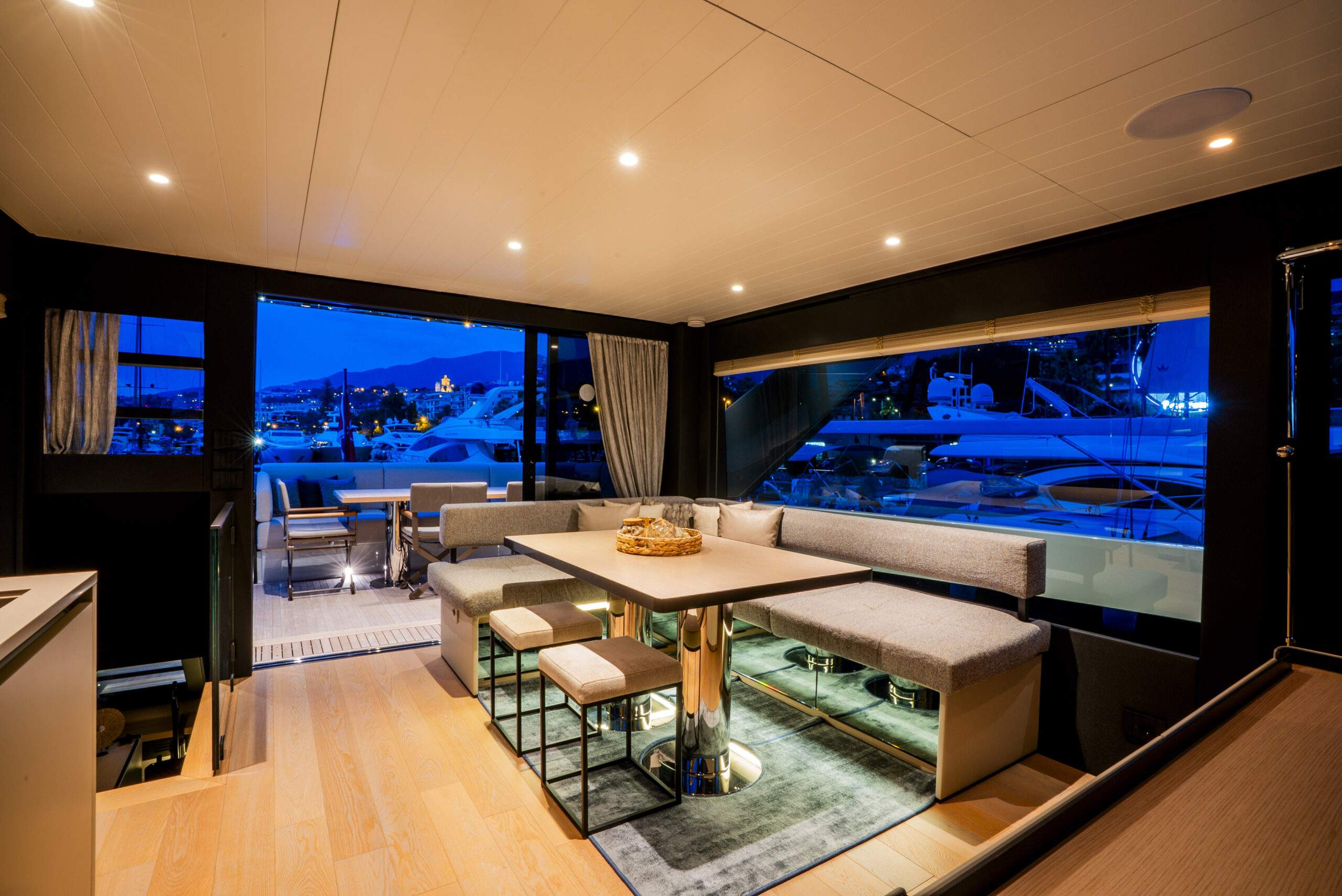 Featuring three spacious cabins, with a door from the owner’s to the guest cabin, this BGX70/BGX73 offers a beautifully designed interior that exudes elegance and functionality. Adding to its exclusivity, a hydraulic platform will be installed at the Bluegame Shipyard, enhancing its versatility and luxury.