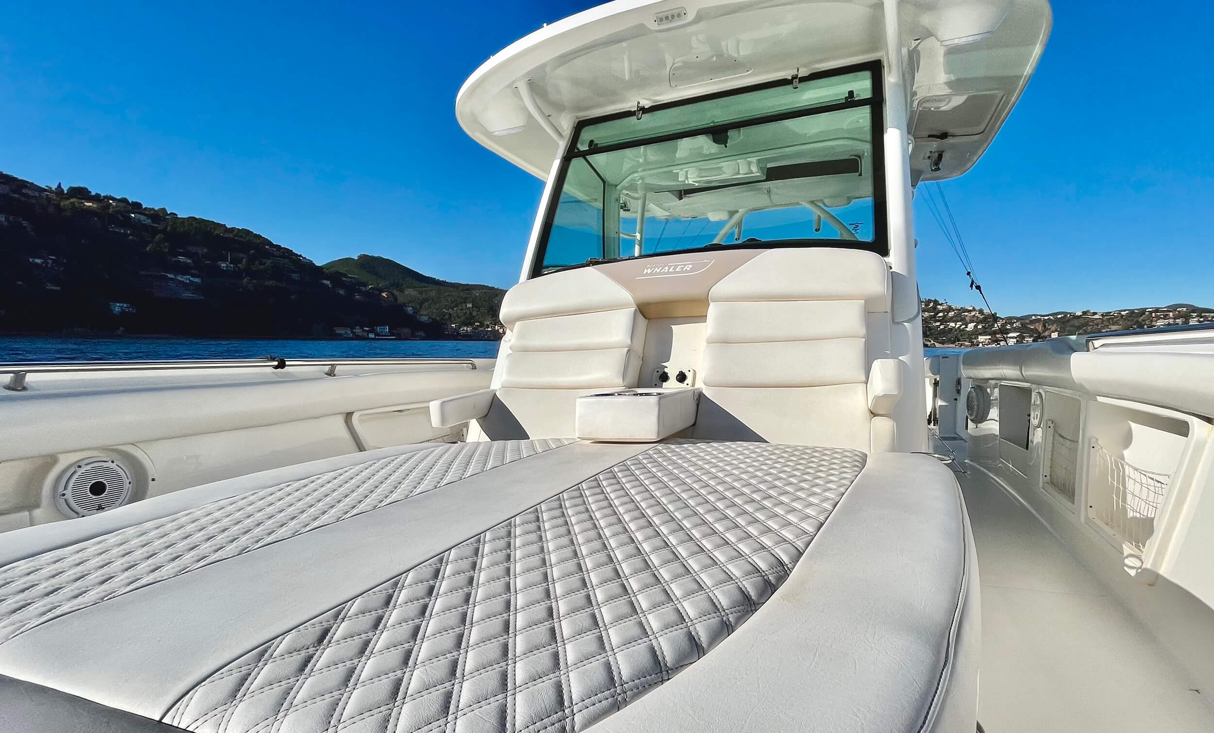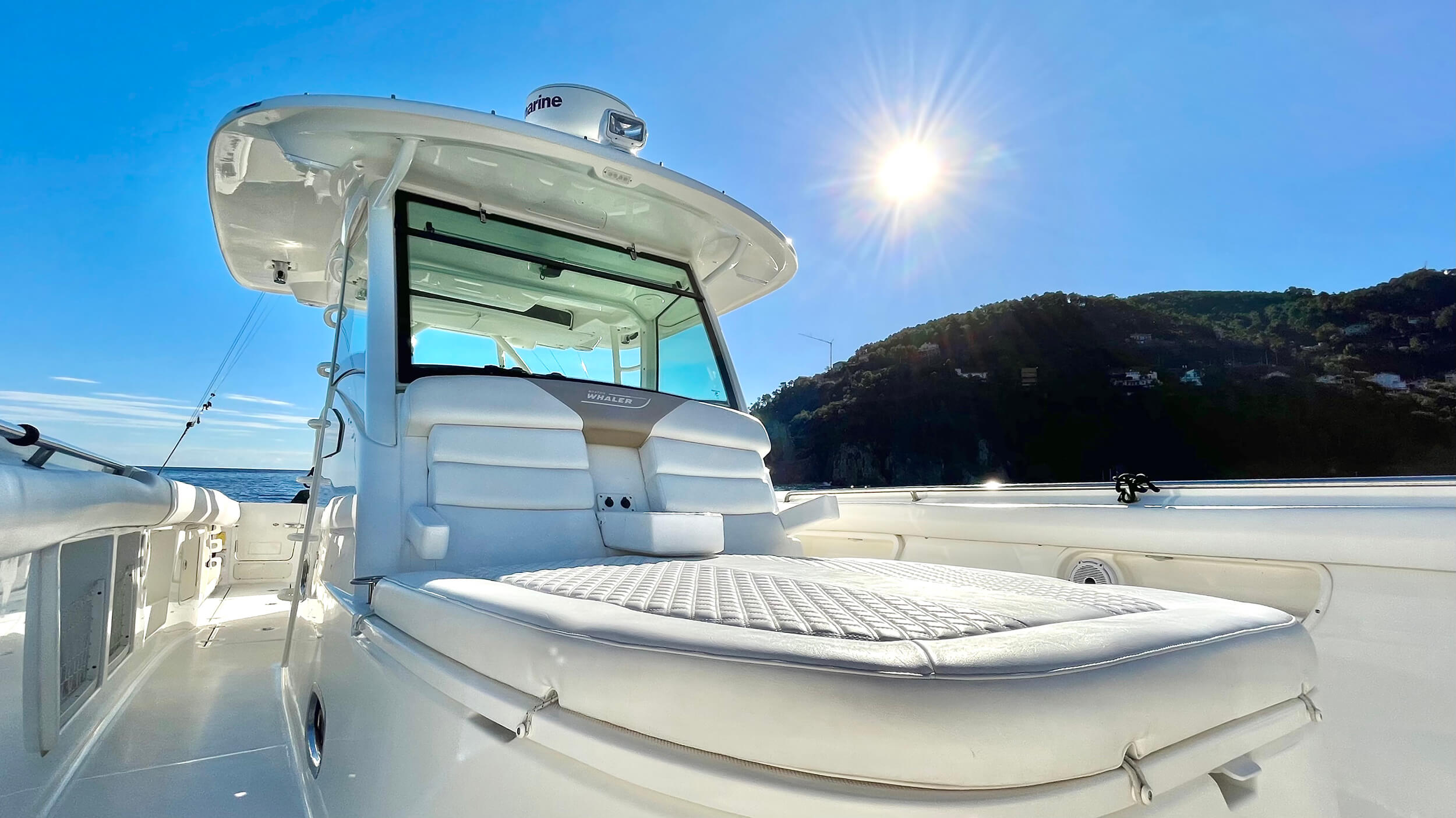 The Boston Whaler Outrage delivers huge fishing capability and huge comfort to match. The spacious bow area features ample seating and convenient in-floor and under-seat storage. Meanwhile, the roomy cockpit features the Converting Leaning Post, which conceals a handy work station and extra aft-facing seating. Available with an integrated fiberglass hardtop, premium navigation and fish-finding technology, JL Audio speakers and more, the 370 Outrage rises to any occasion. Ready for the season – engines serviced in February 2025.