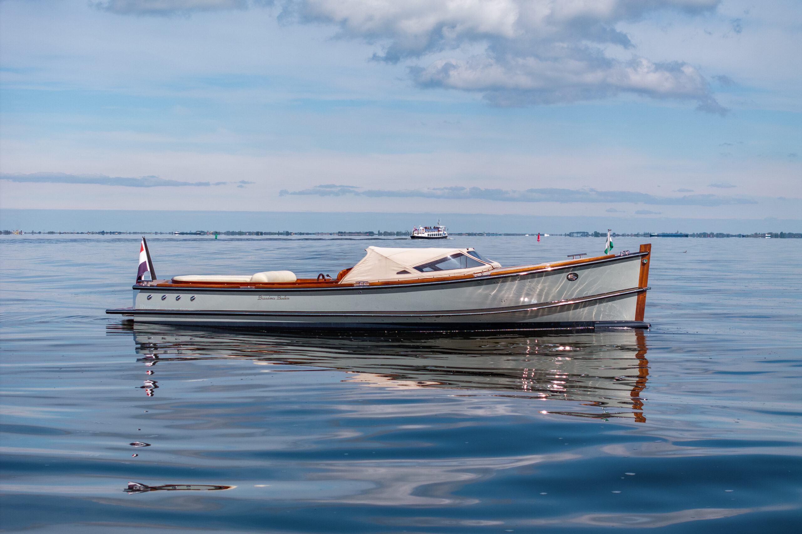 Welcome aboard the exquisite Brandaris 8.45 Barkas Limited Edition, meticulously cared for and boasting exceptional condition. Crafted entirely in the Netherlands, this vessel epitomizes renowned Dutch craftsmanship and opulent aesthetics. Measuring 8.45 meters in length with a beam of 2.45 meters, it has logged a mere 1500 engine hours. Revel in its elegant wooden interior adorned with white cushions, emanating a timeless classic allure.