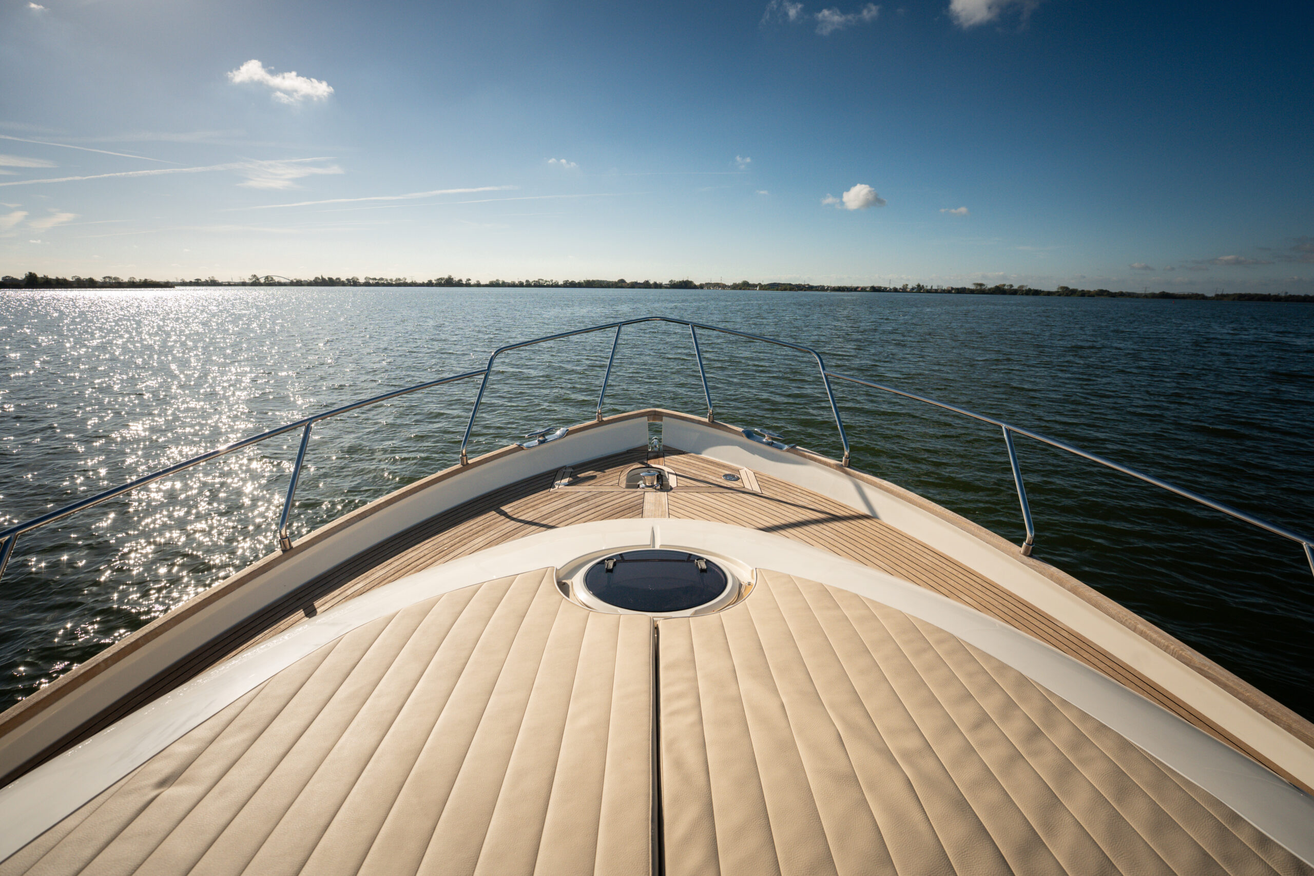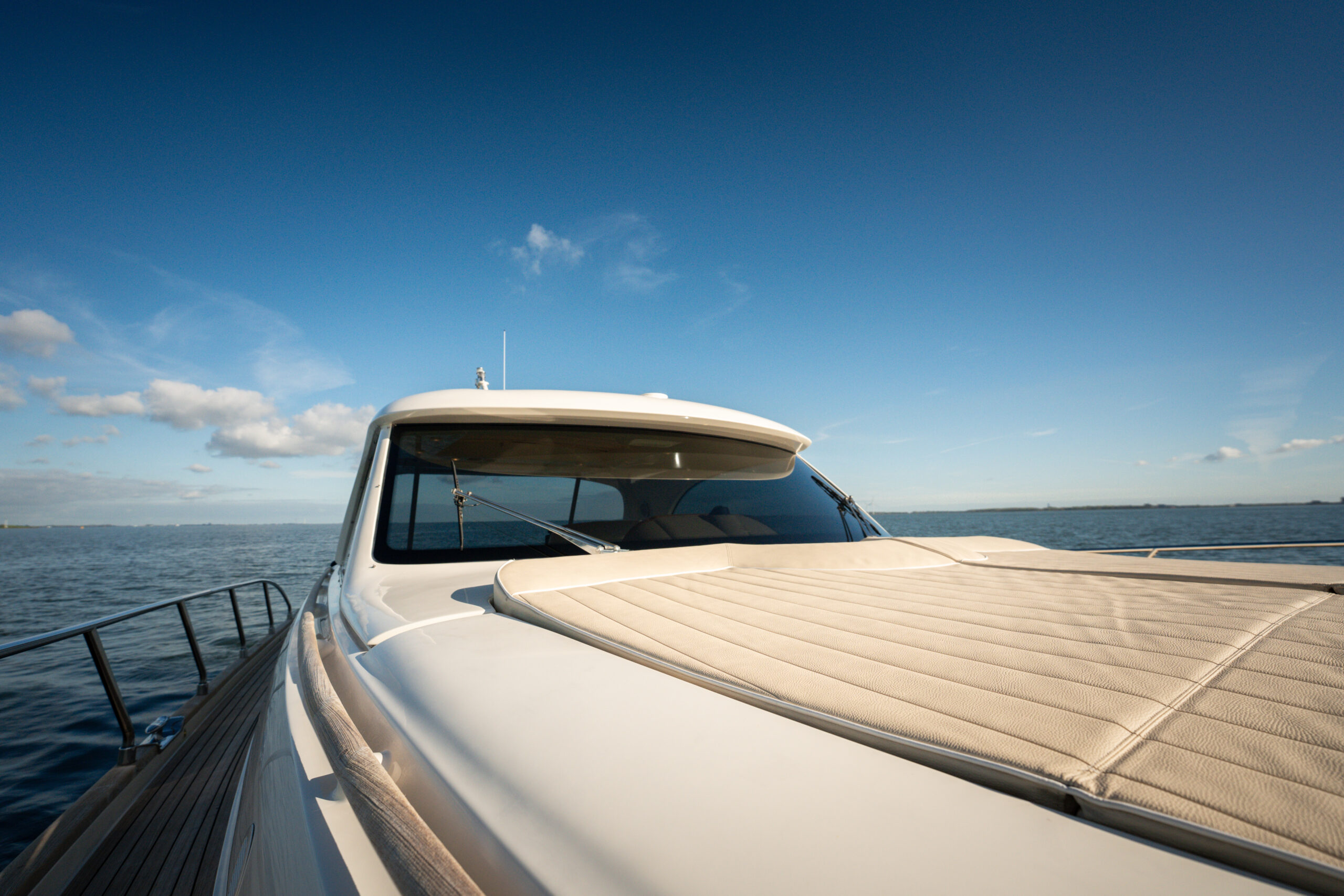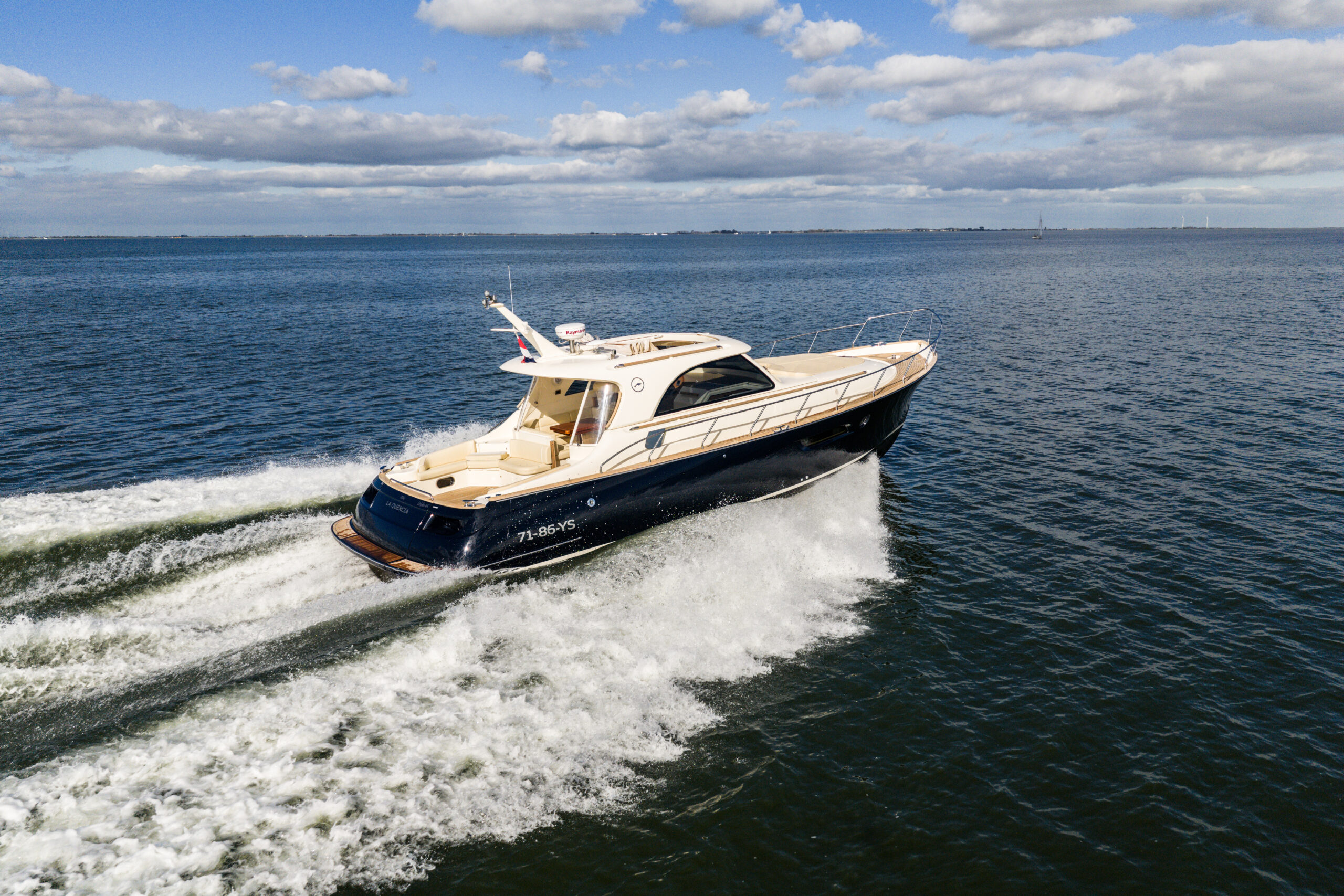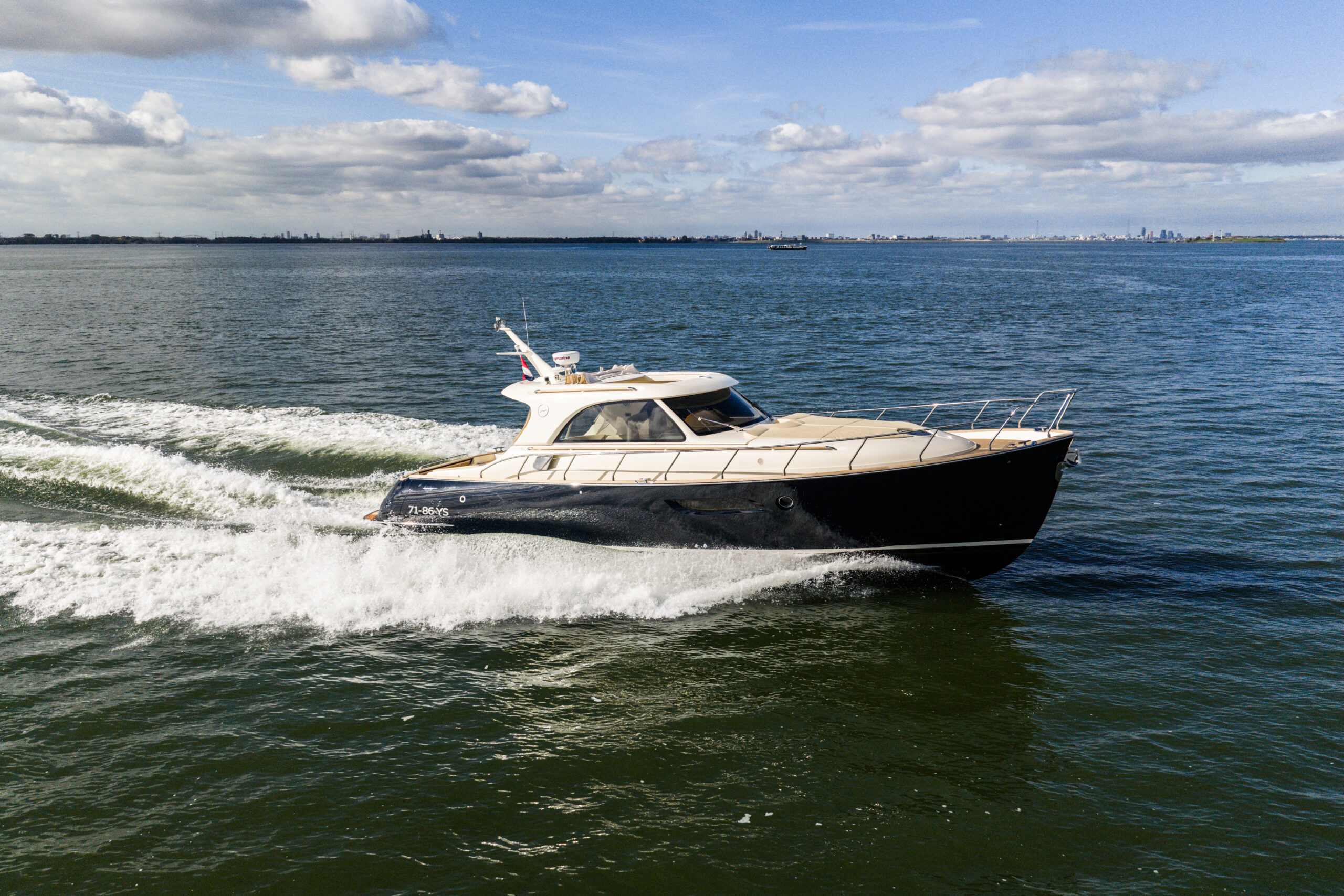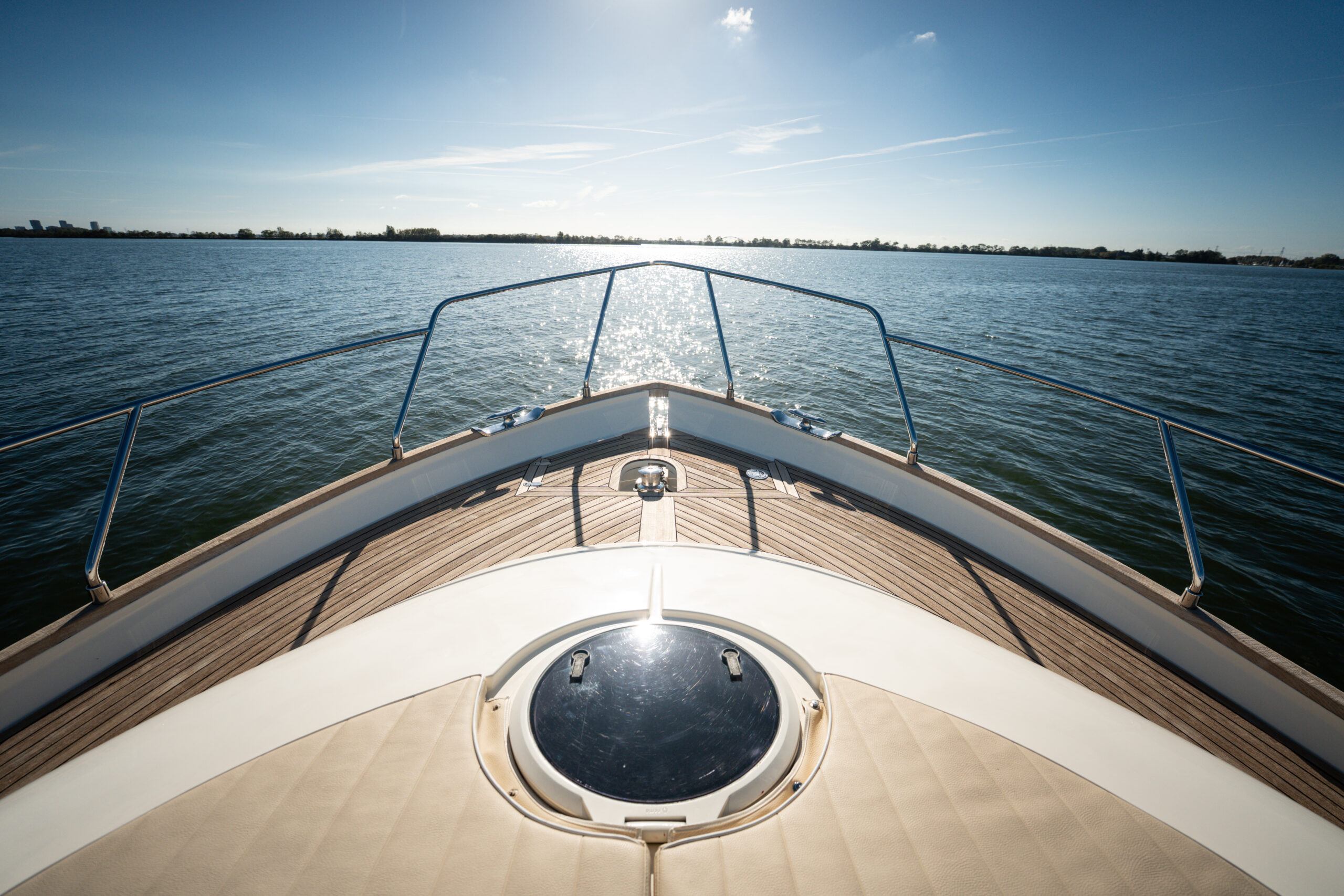 With her elegant curves, deep blue lobster hull, and unmistakable Italian soul, we offer “LA QUERCHIA”, a very well maintained Mochi Craft Dolphin 44 from the year 2012 (commissioned 2013) and built by the Ferretti Group. We delivered her to the first and only owner who used her in The Netherlands on sweet water and only in summertime.