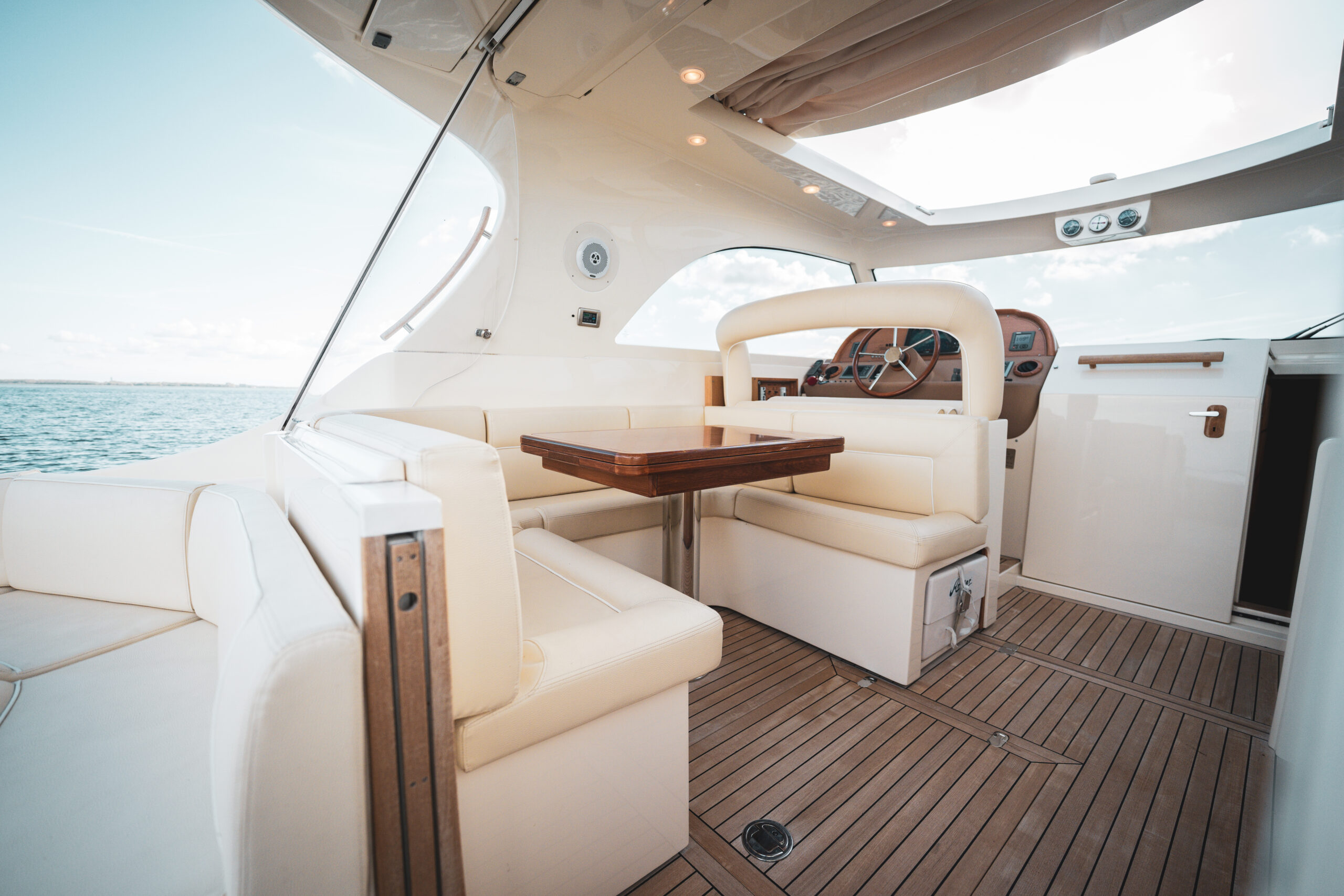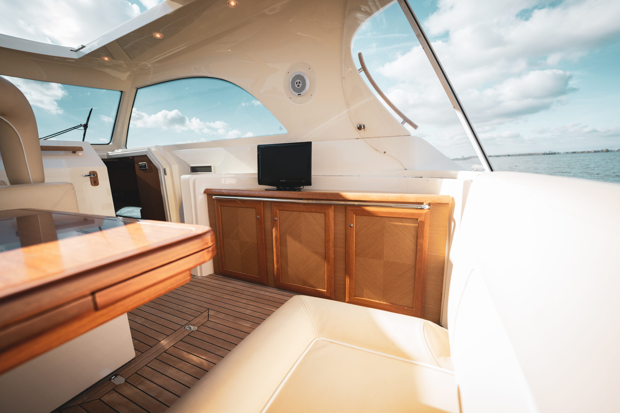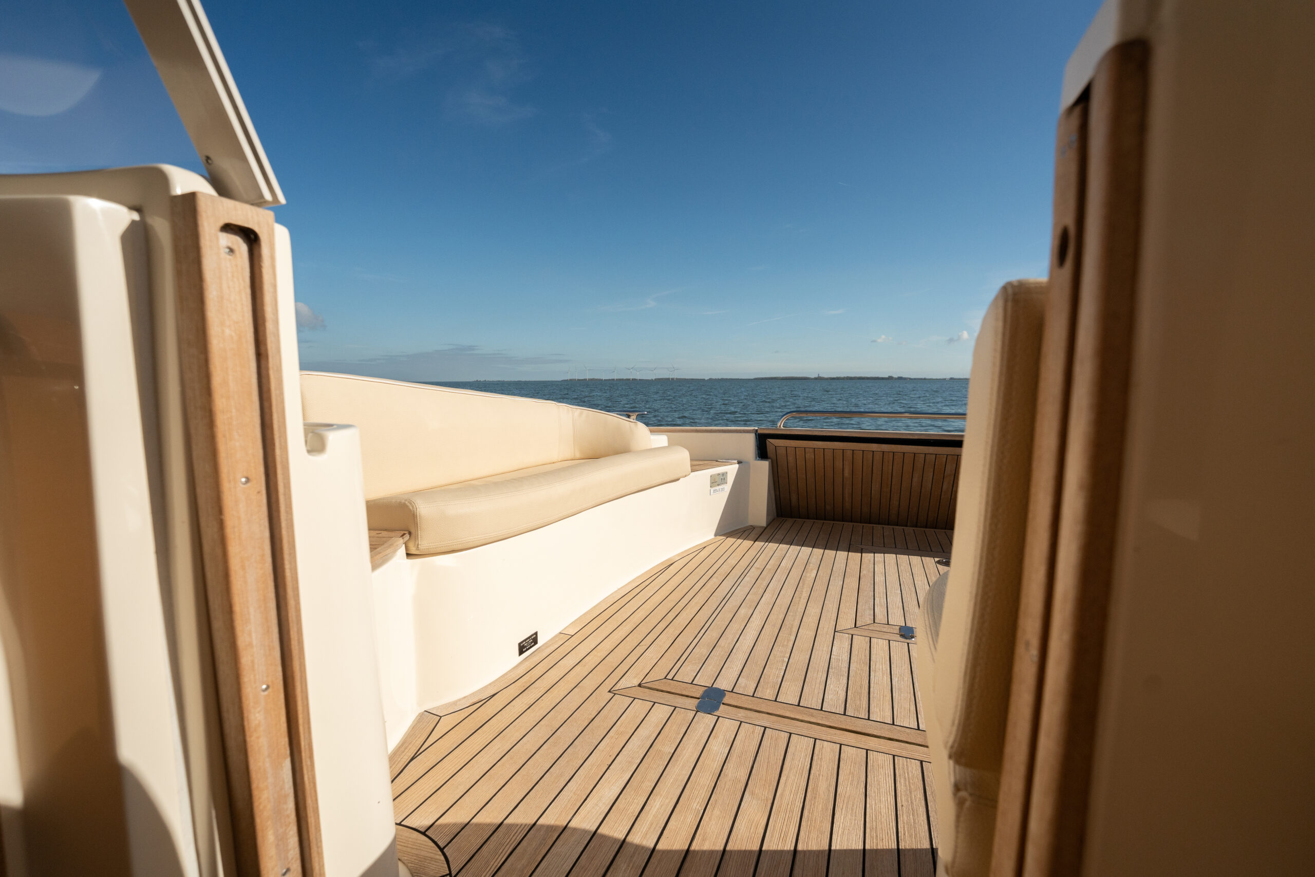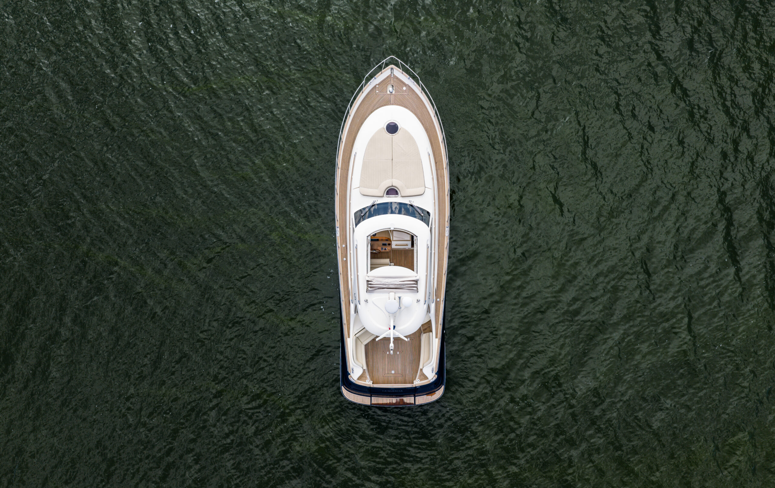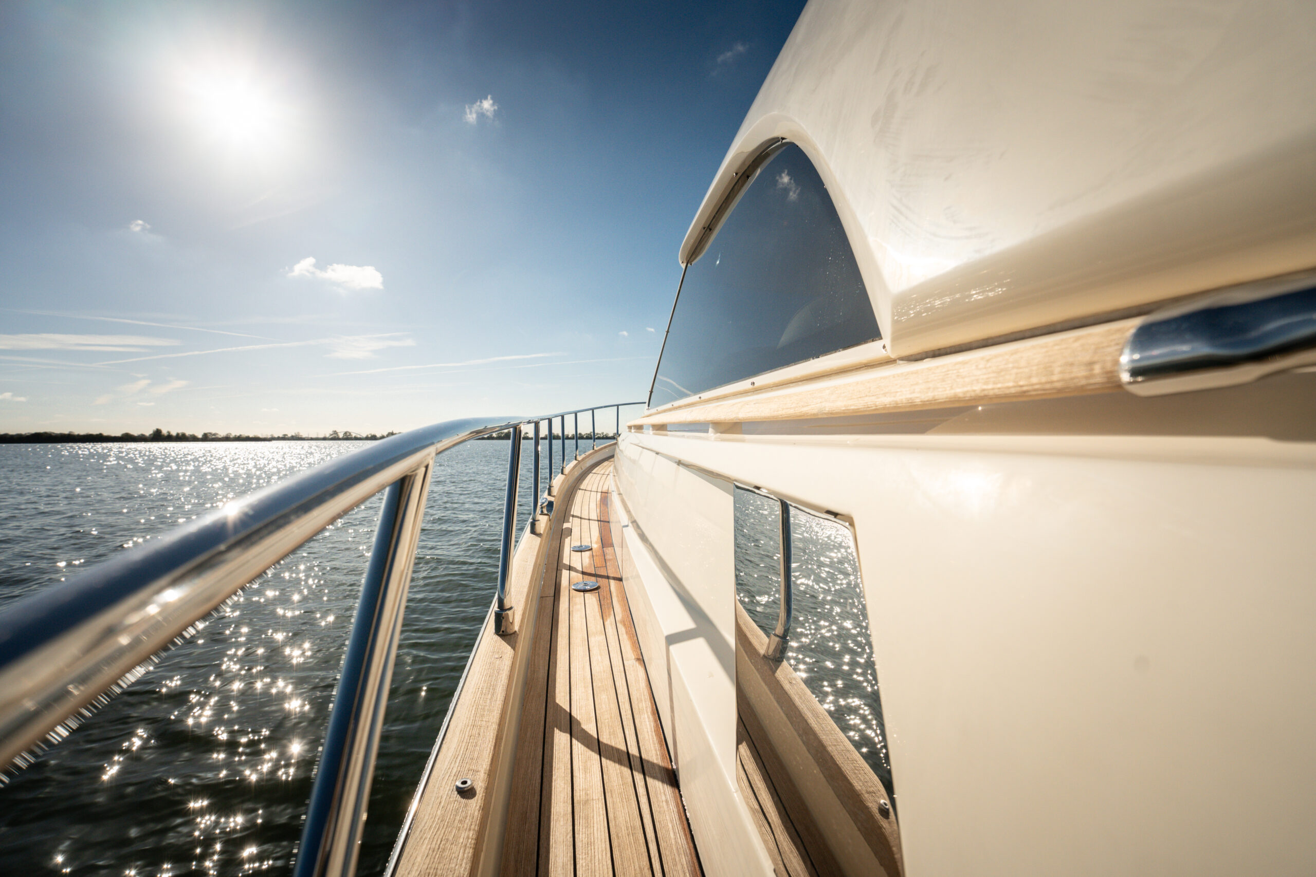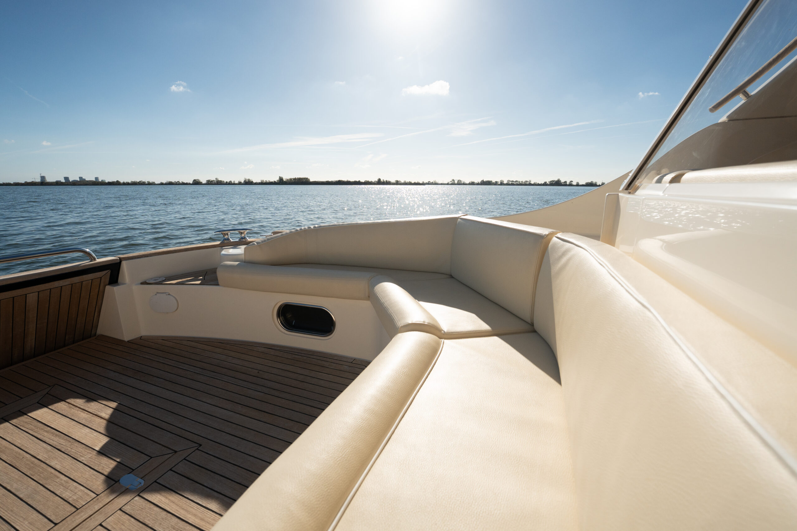 With her elegant curves, deep blue lobster hull, and unmistakable Italian soul, we offer “LA QUERCHIA”, a very well maintained Mochi Craft Dolphin 44 from the year 2012 (commissioned 2013) and built by the Ferretti Group. We delivered her to the first and only owner who used her in The Netherlands on sweet water and only in summertime.
