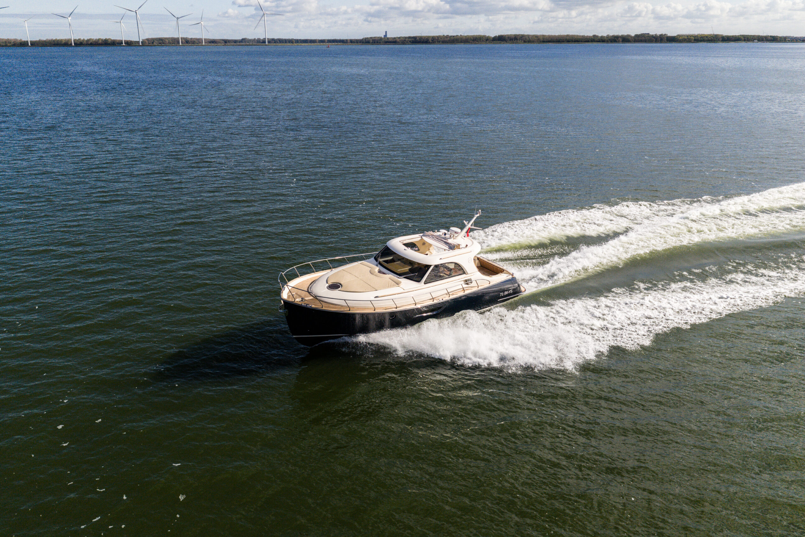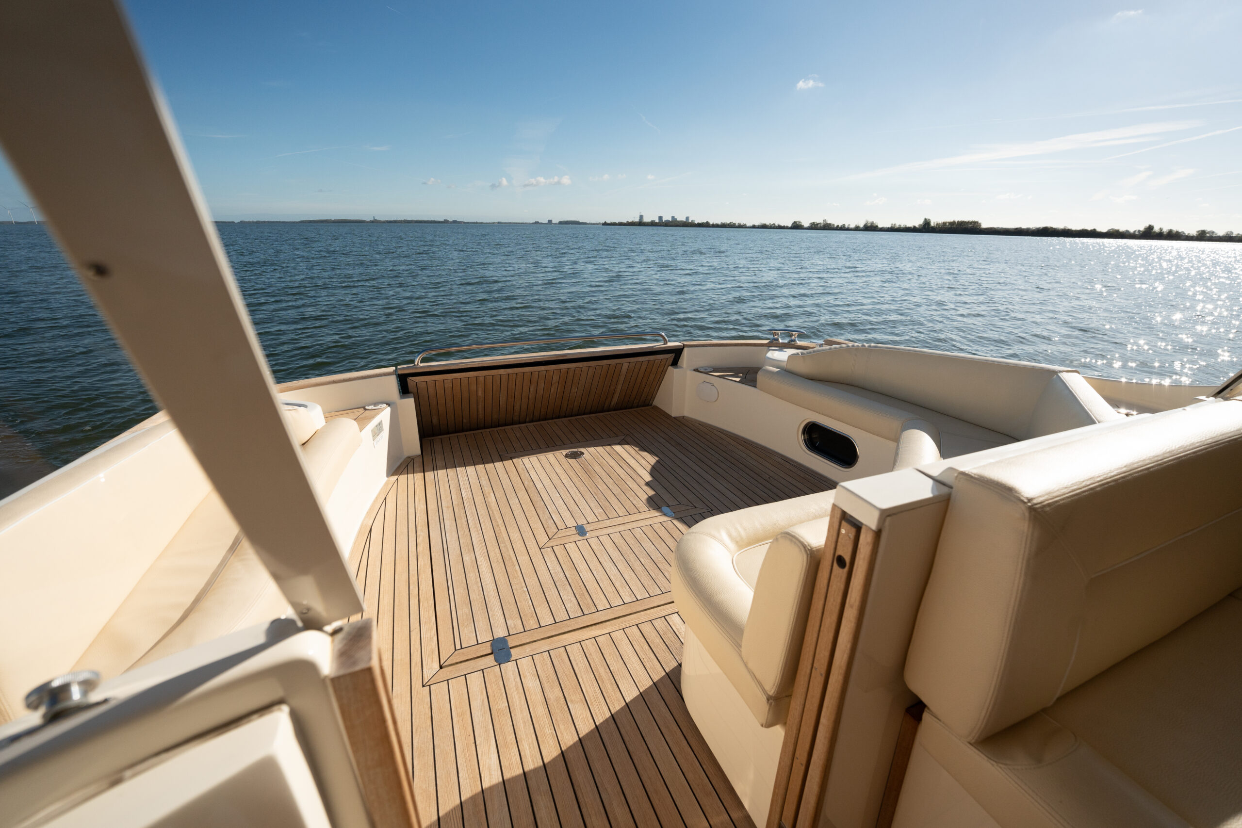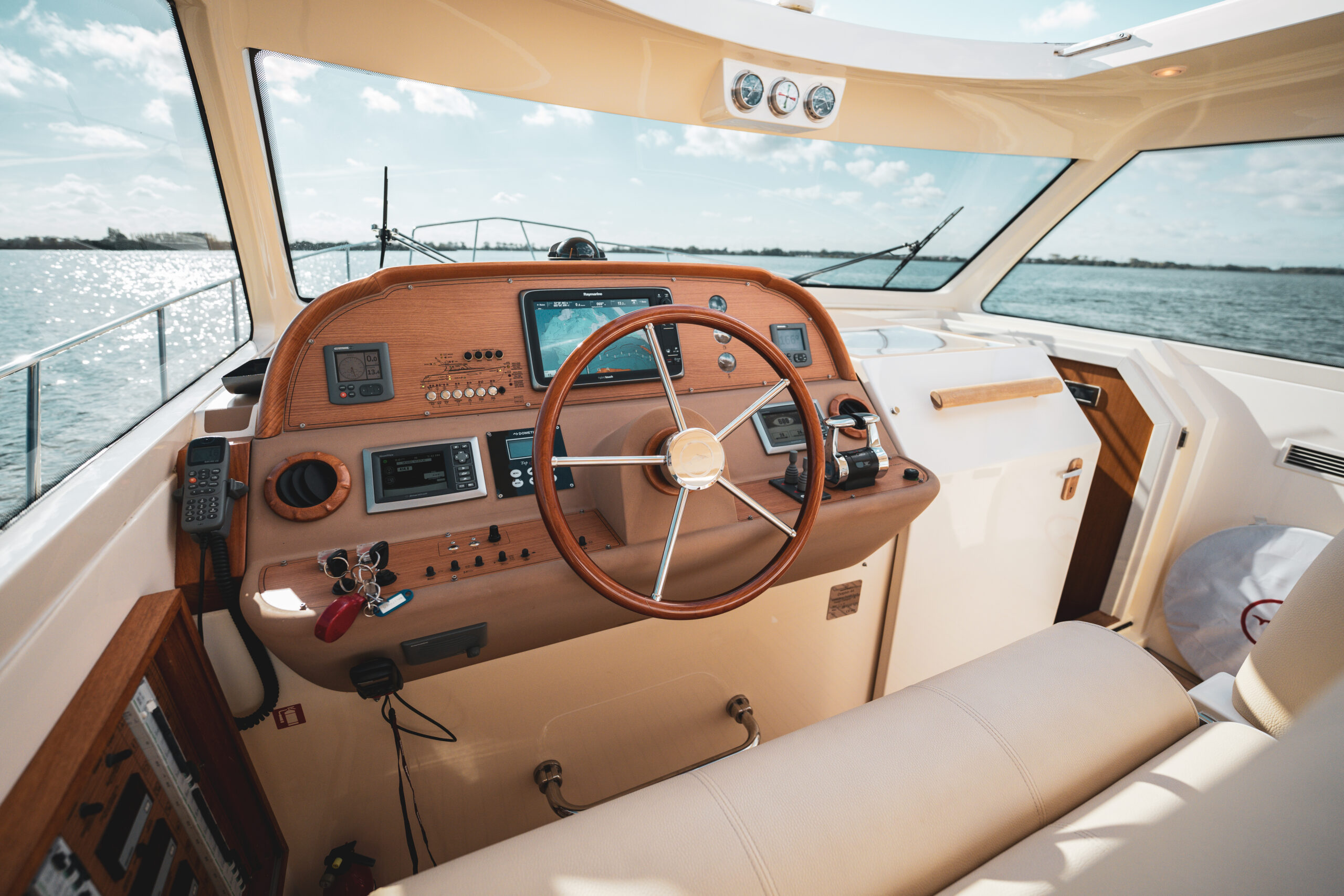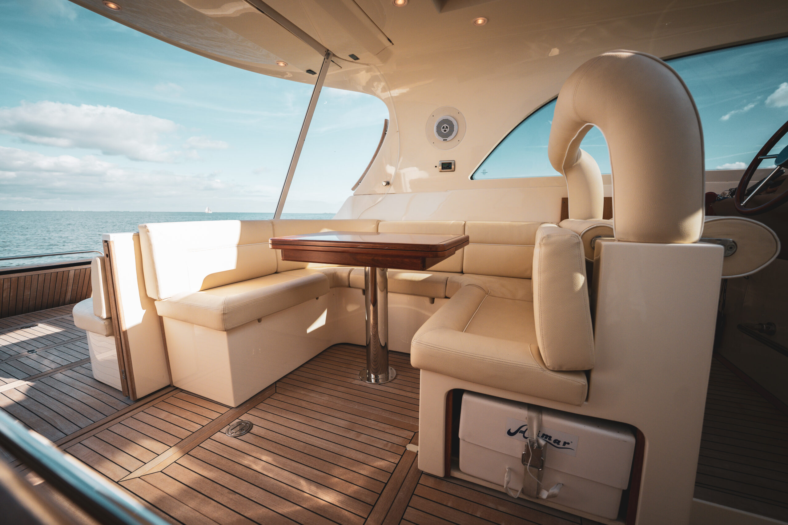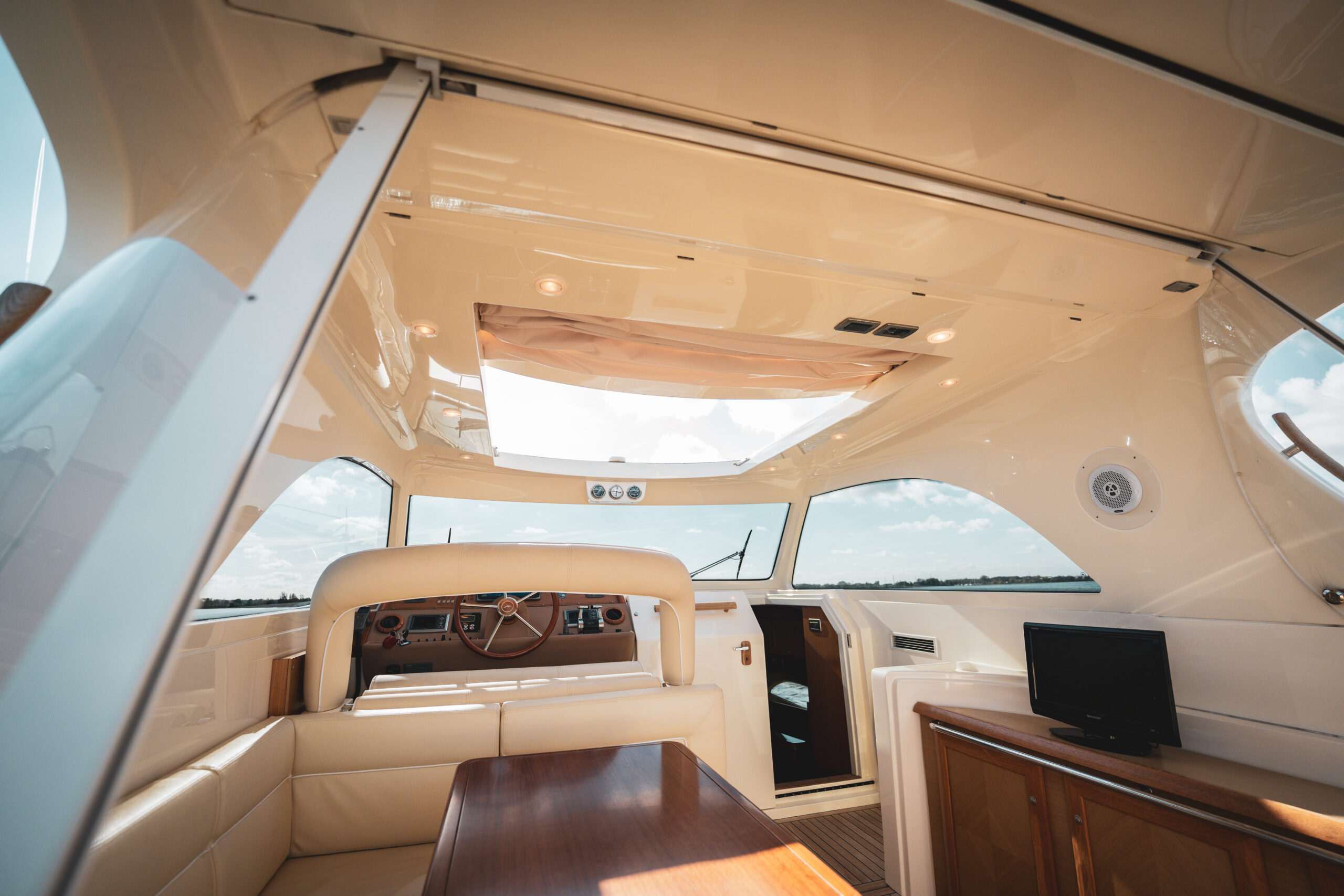With her elegant curves, deep blue lobster hull, and unmistakable Italian soul, we offer “LA QUERCHIA”, a very well maintained Mochi Craft Dolphin 44 from the year 2012 (commissioned 2013) and built by the Ferretti Group. We delivered her to the first and only owner who used her in The Netherlands on sweet water and only in summertime.