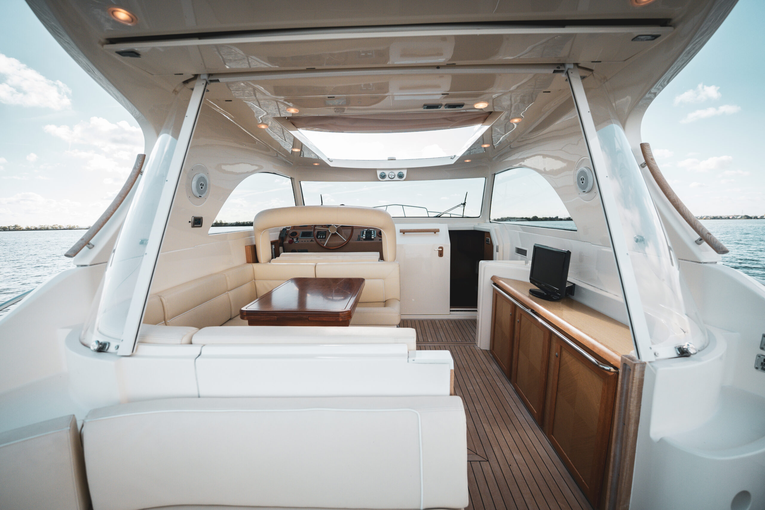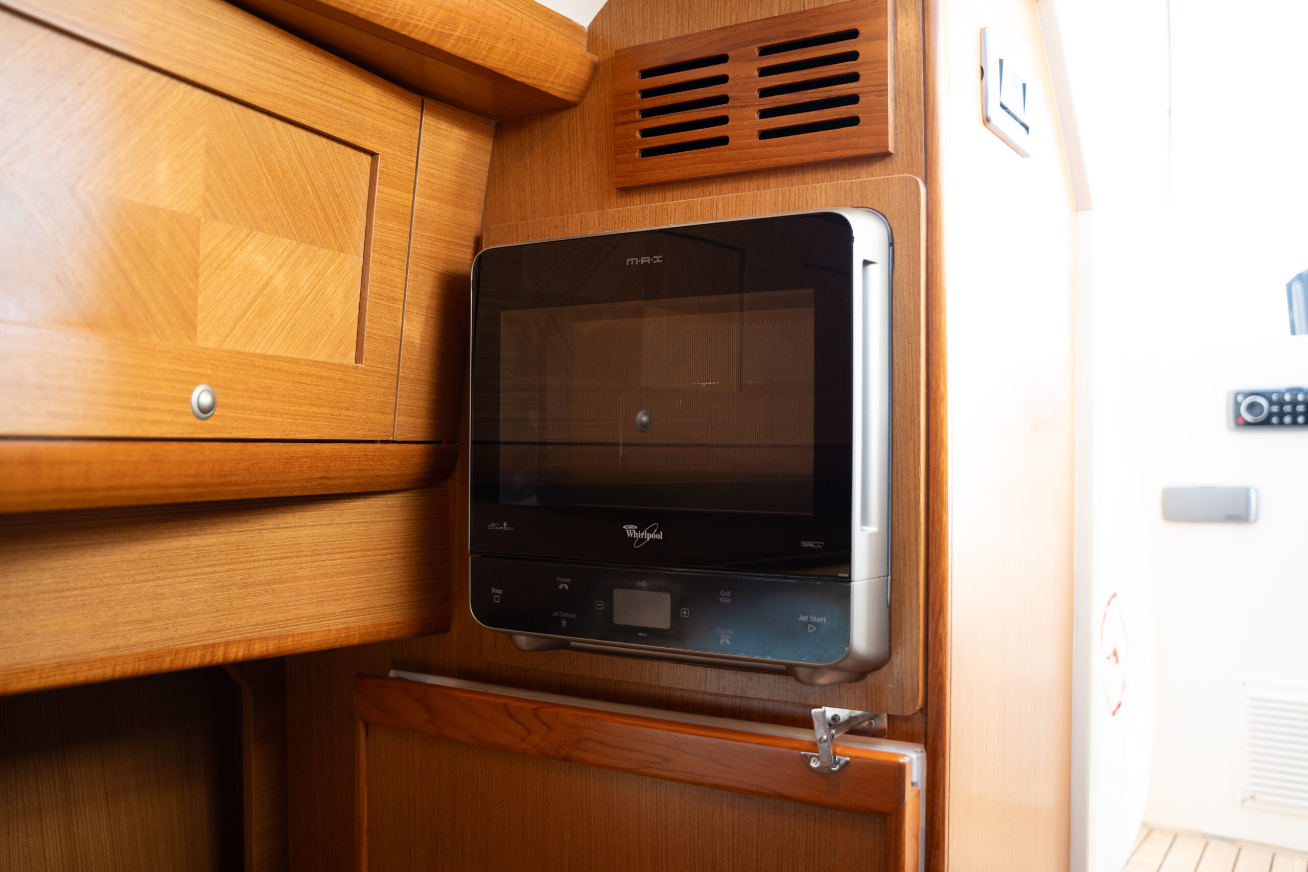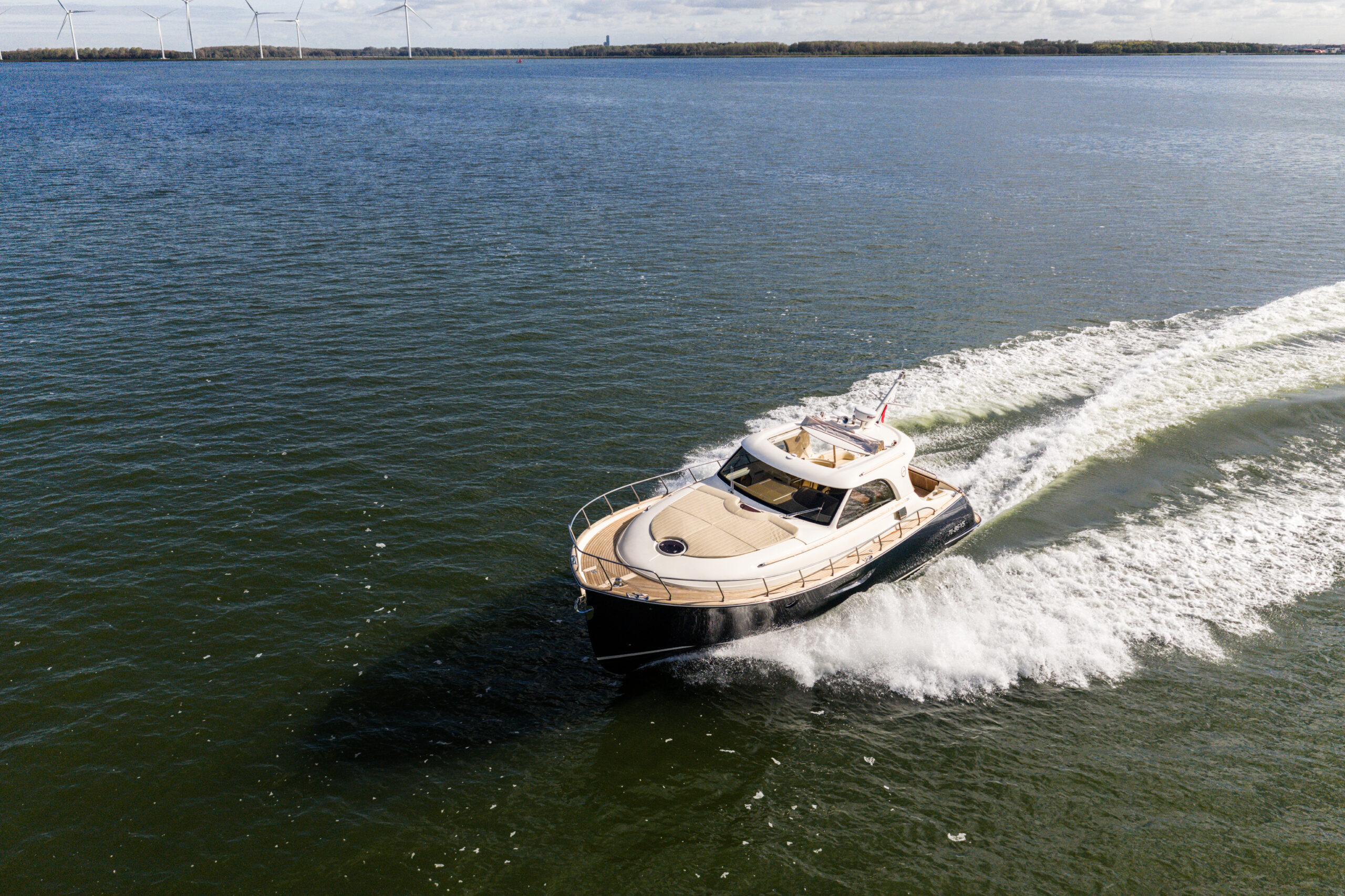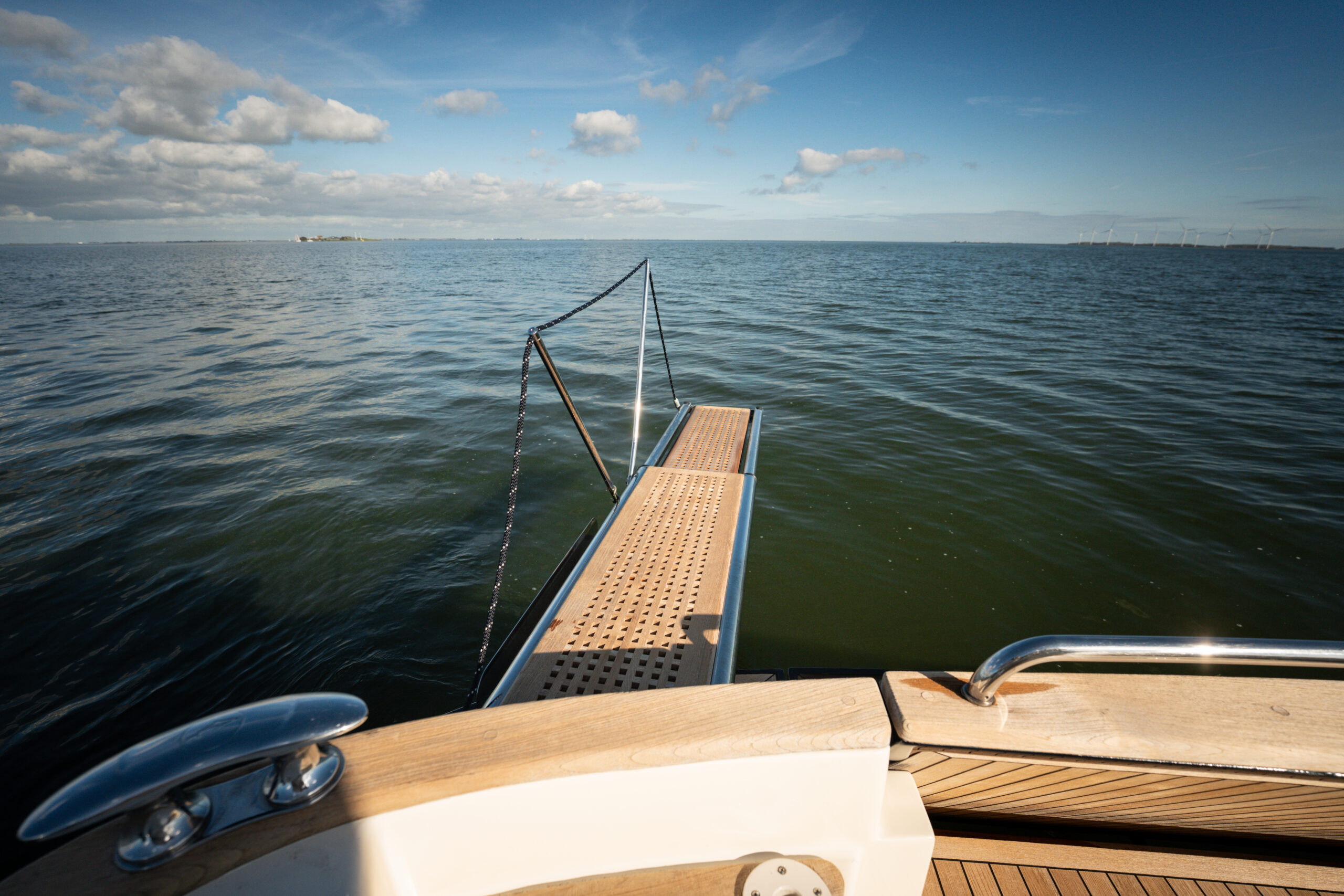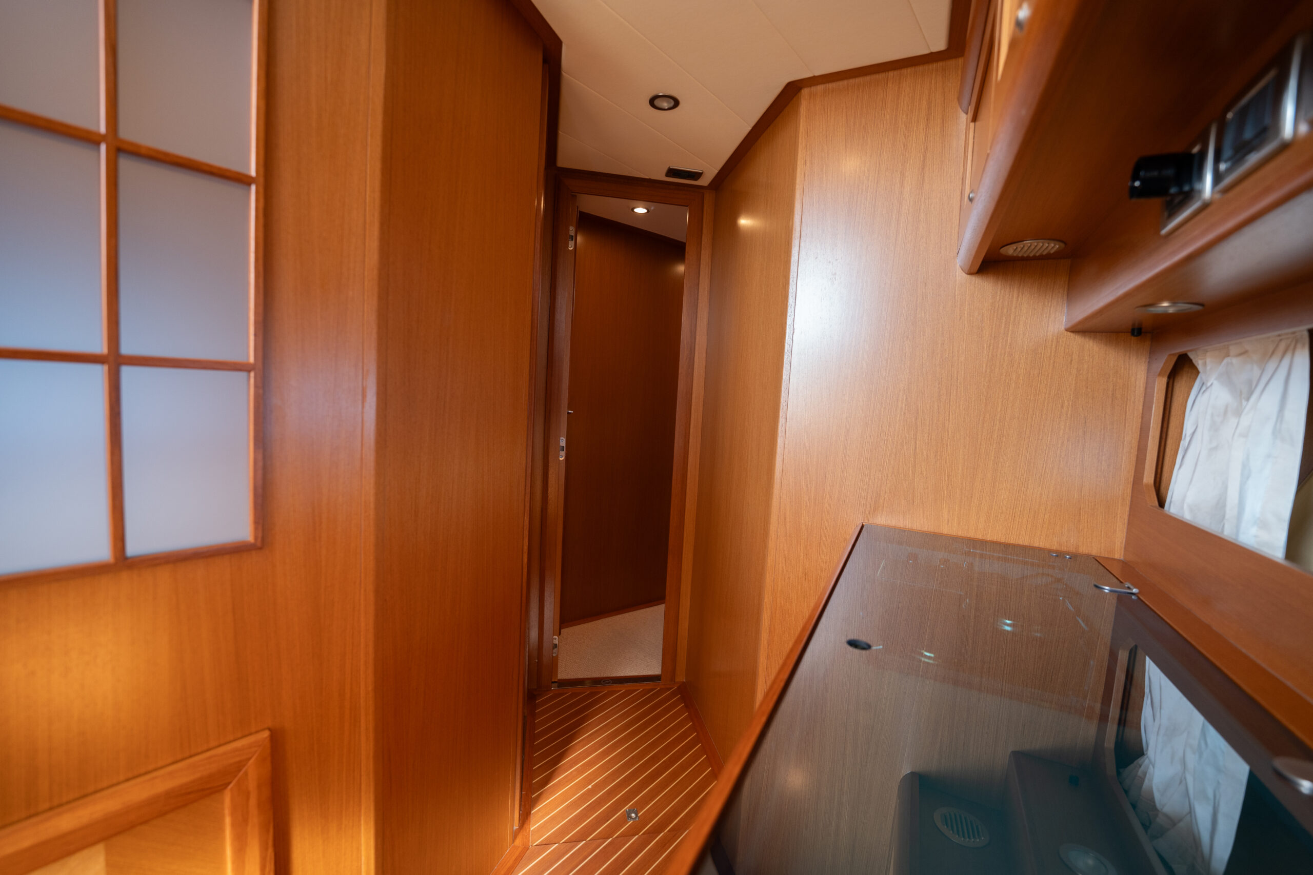 With her elegant curves, deep blue lobster hull, and unmistakable Italian soul, we offer “LA QUERCHIA”, a very well maintained Mochi Craft Dolphin 44 from the year 2012 (commissioned 2013) and built by the Ferretti Group. We delivered her to the first and only owner who used her in The Netherlands on sweet water and only in summertime.