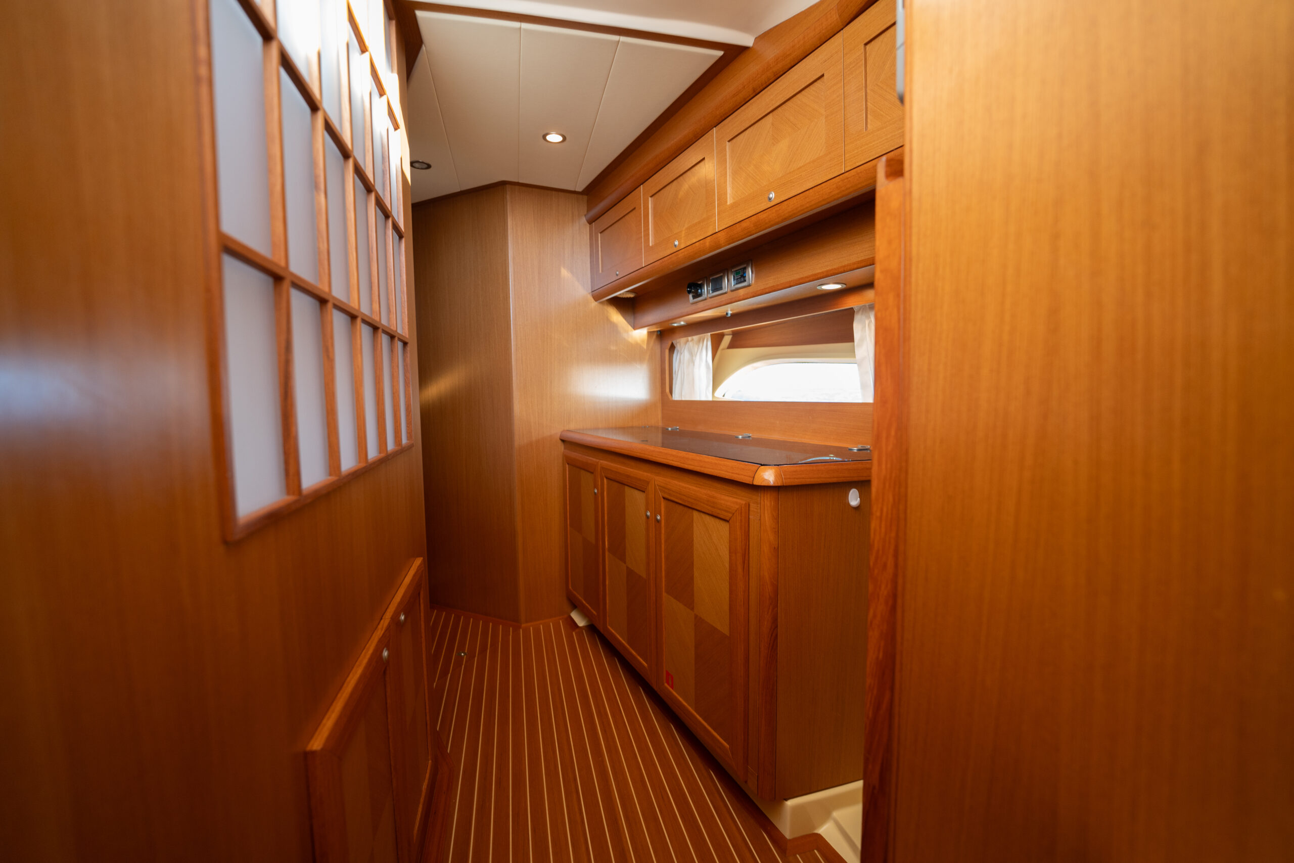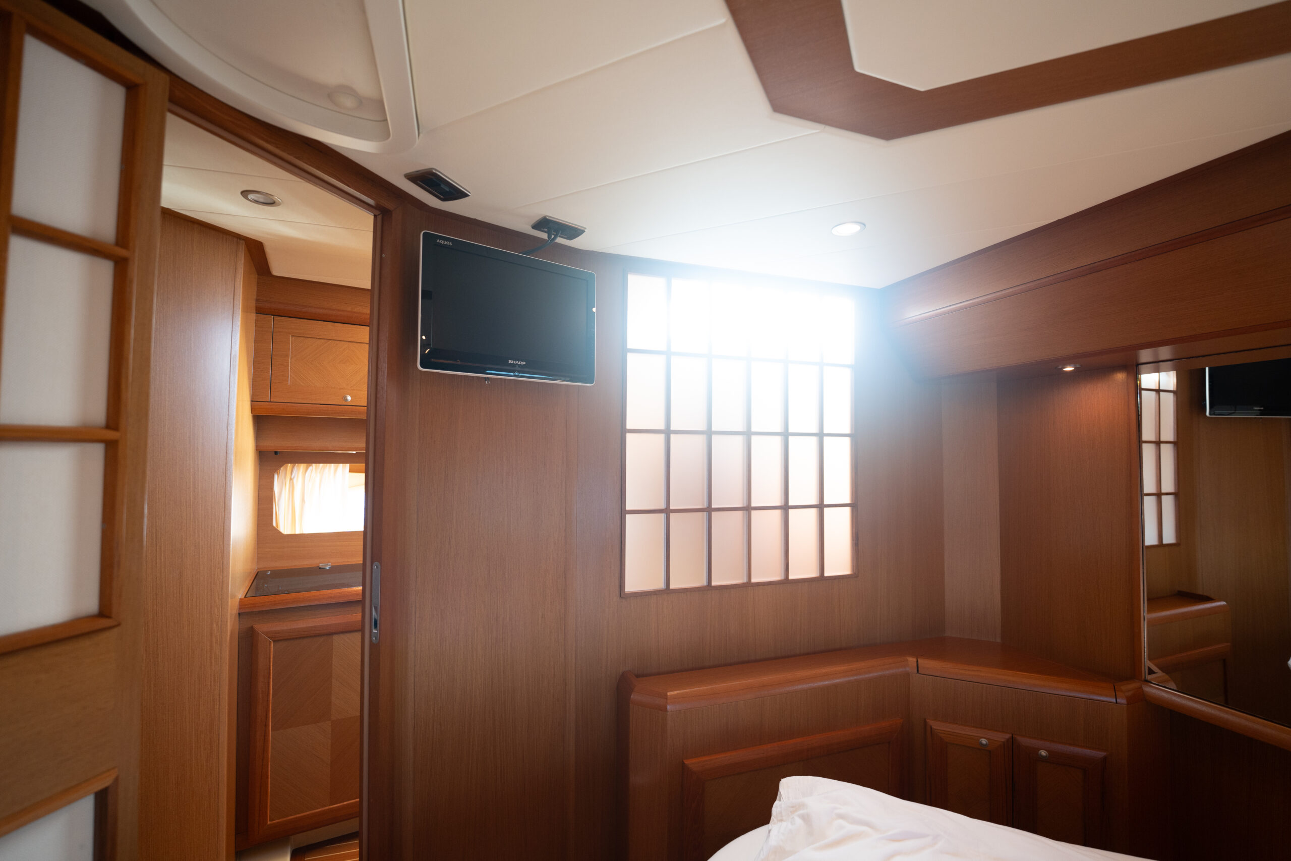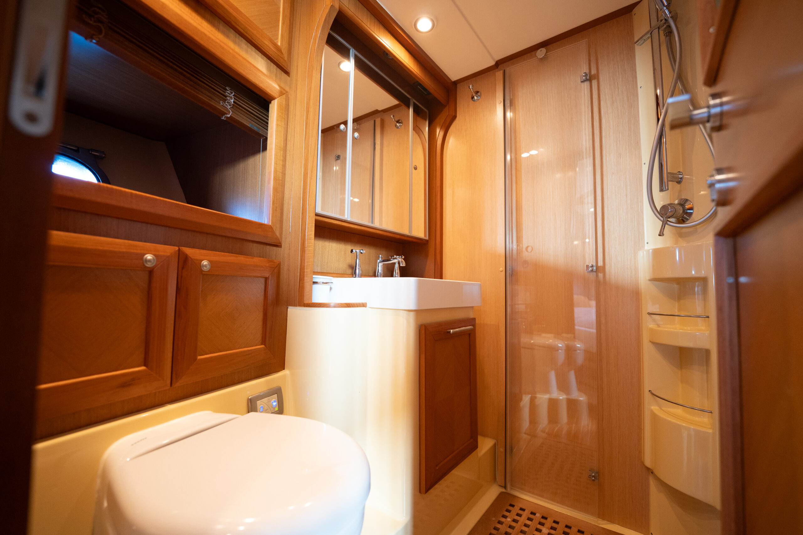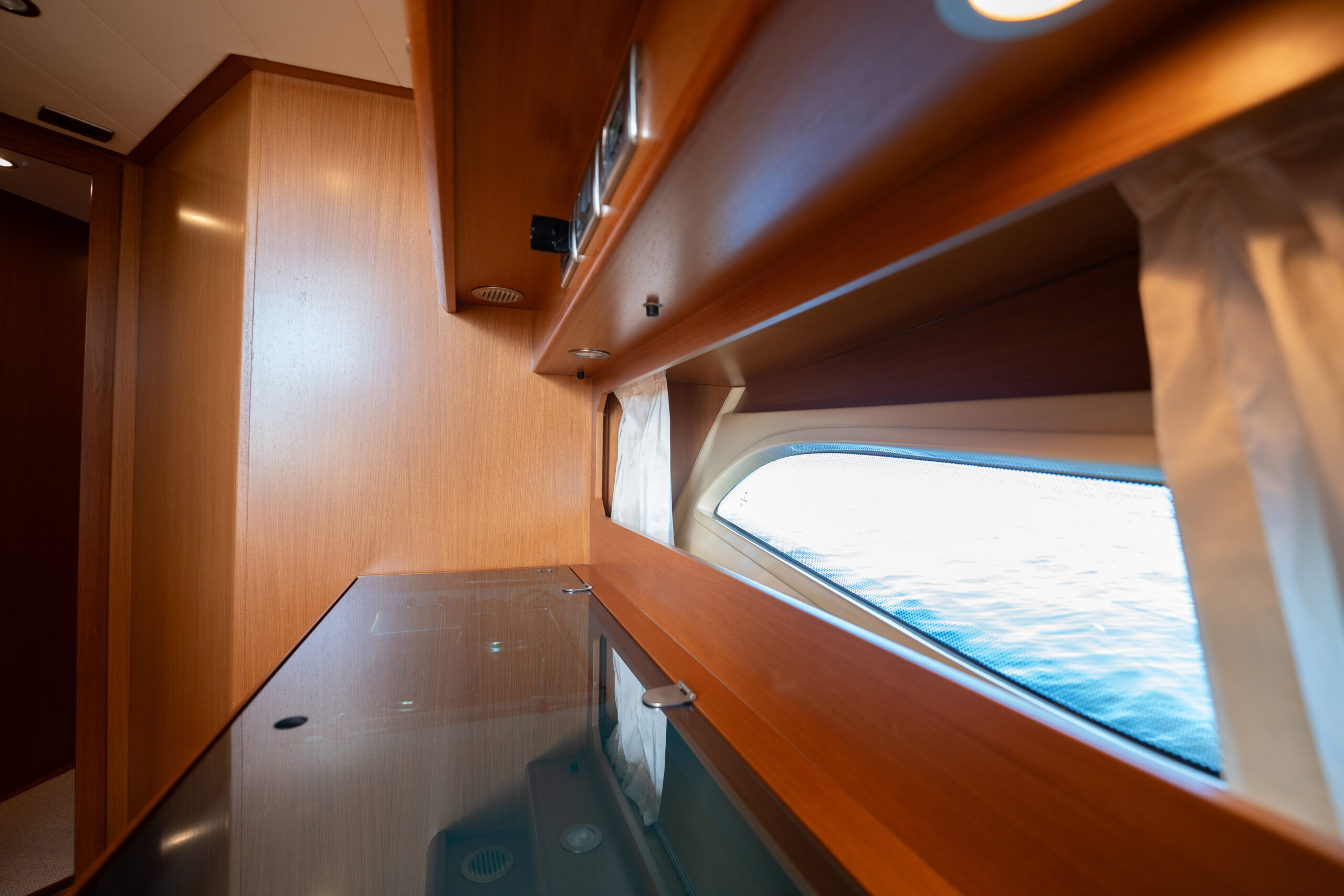 This beautiful Mochi Craft Dolphin 44 has less than 600 engine hours and is very well specified with the standard key features including an upgrade of the generator, air conditioning in all cabins, additional crew cabin, and a Kabola diesel heating.