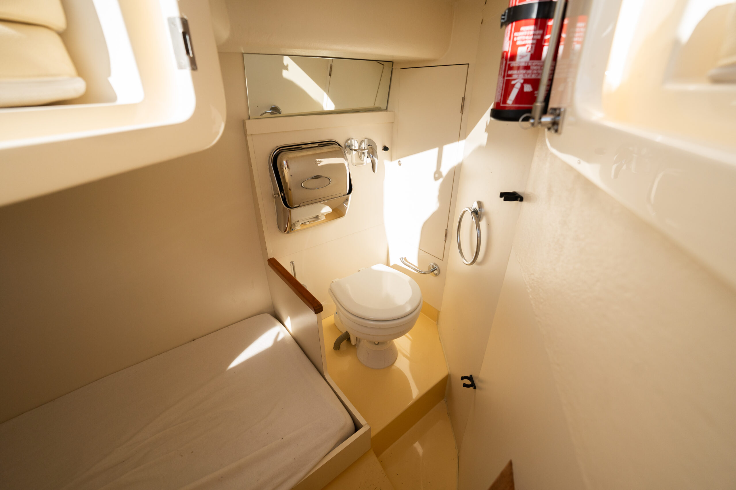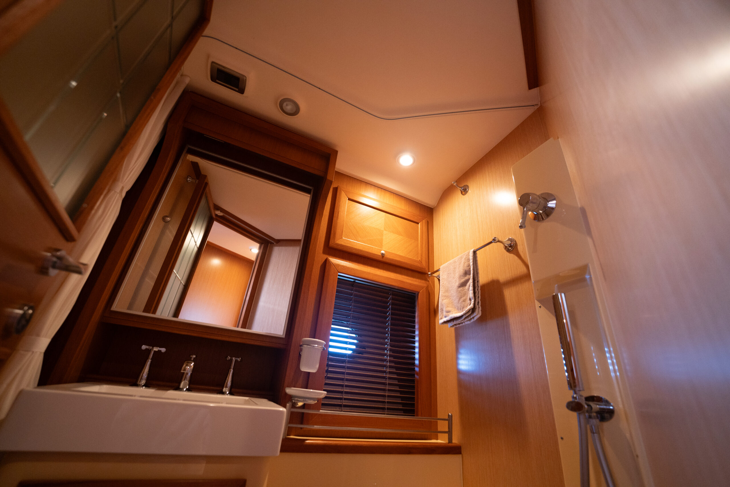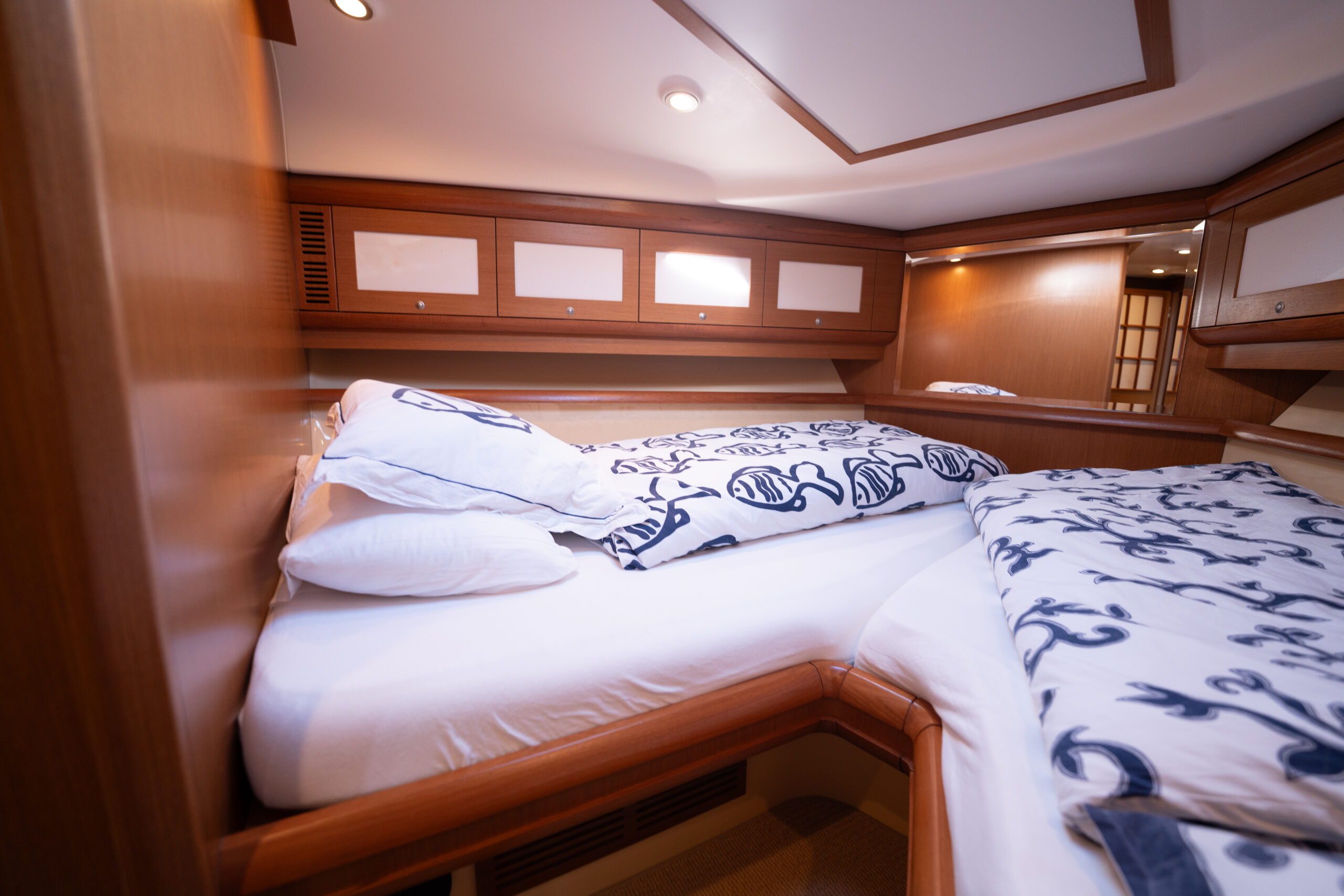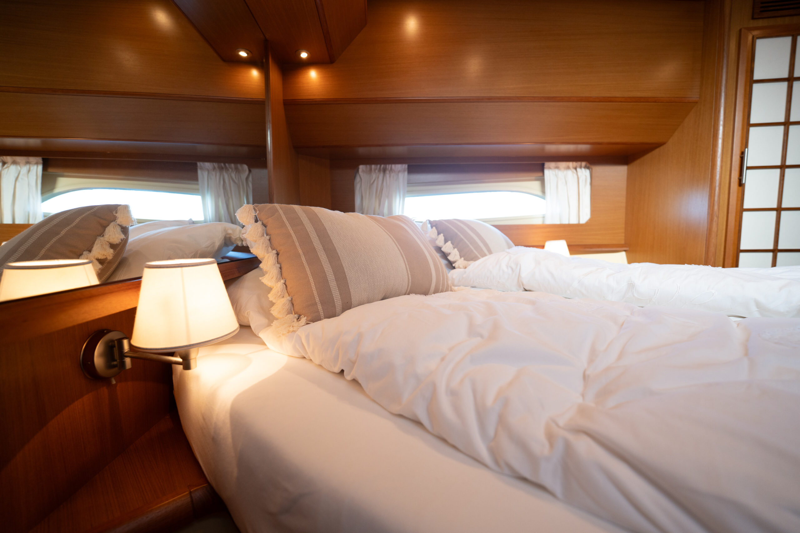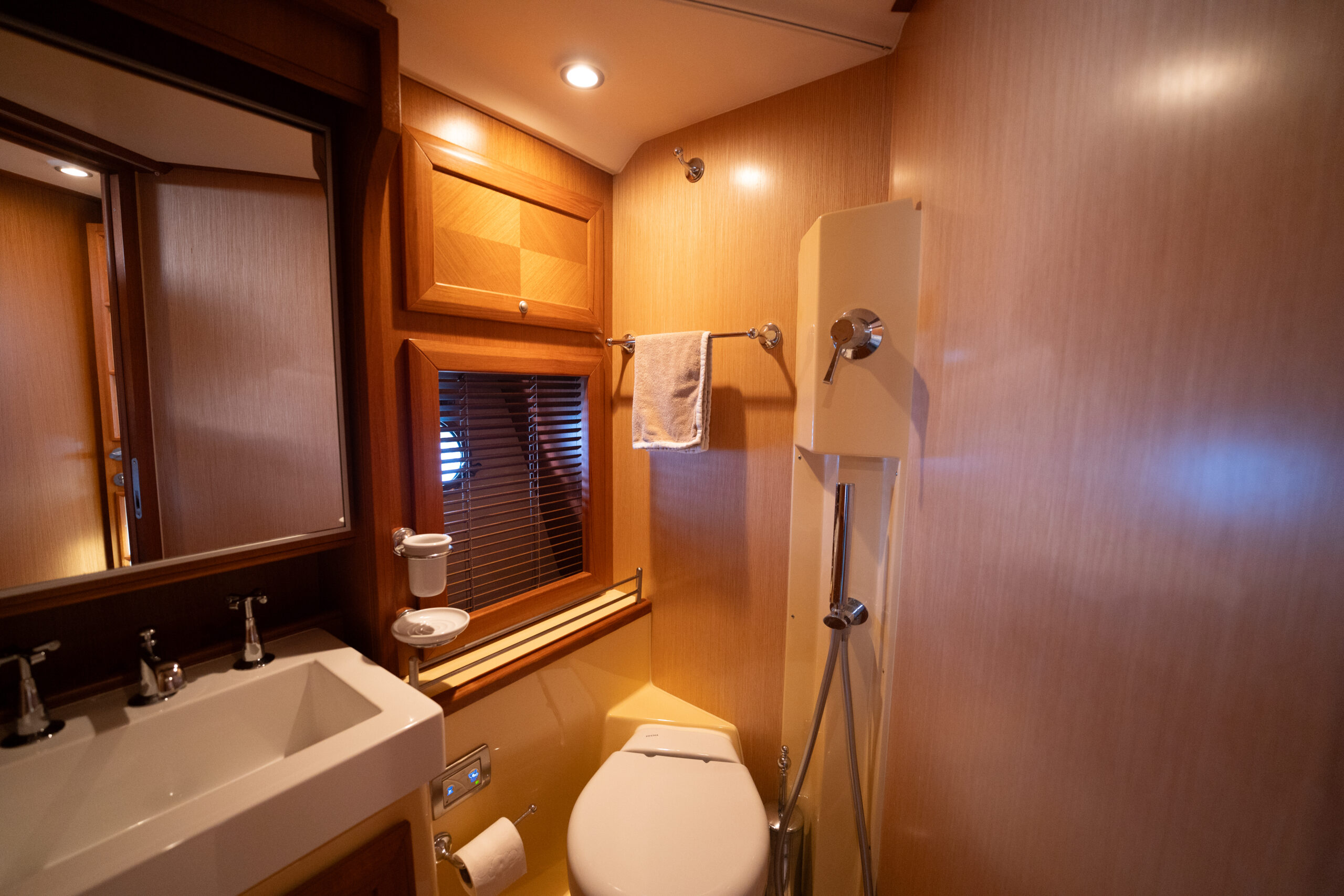This beautiful Mochi Craft Dolphin 44 has less than 600 engine hours and is very well specified with the standard key features including an upgrade of the generator, air conditioning in all cabins, additional crew cabin, and a Kabola diesel heating.