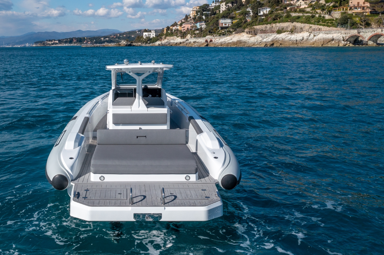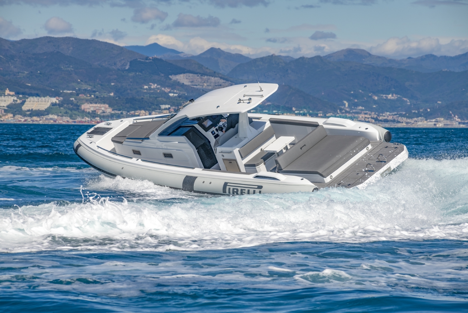 The PIRELLI 35 takes the RIB concept to the next level, combining unmistakable Italian design with powerful performance and smart functionality. Its dynamic lines and refined detailing create a bold presence on the water, while the well balanced layout ensures both comfort and ease of movement on board.