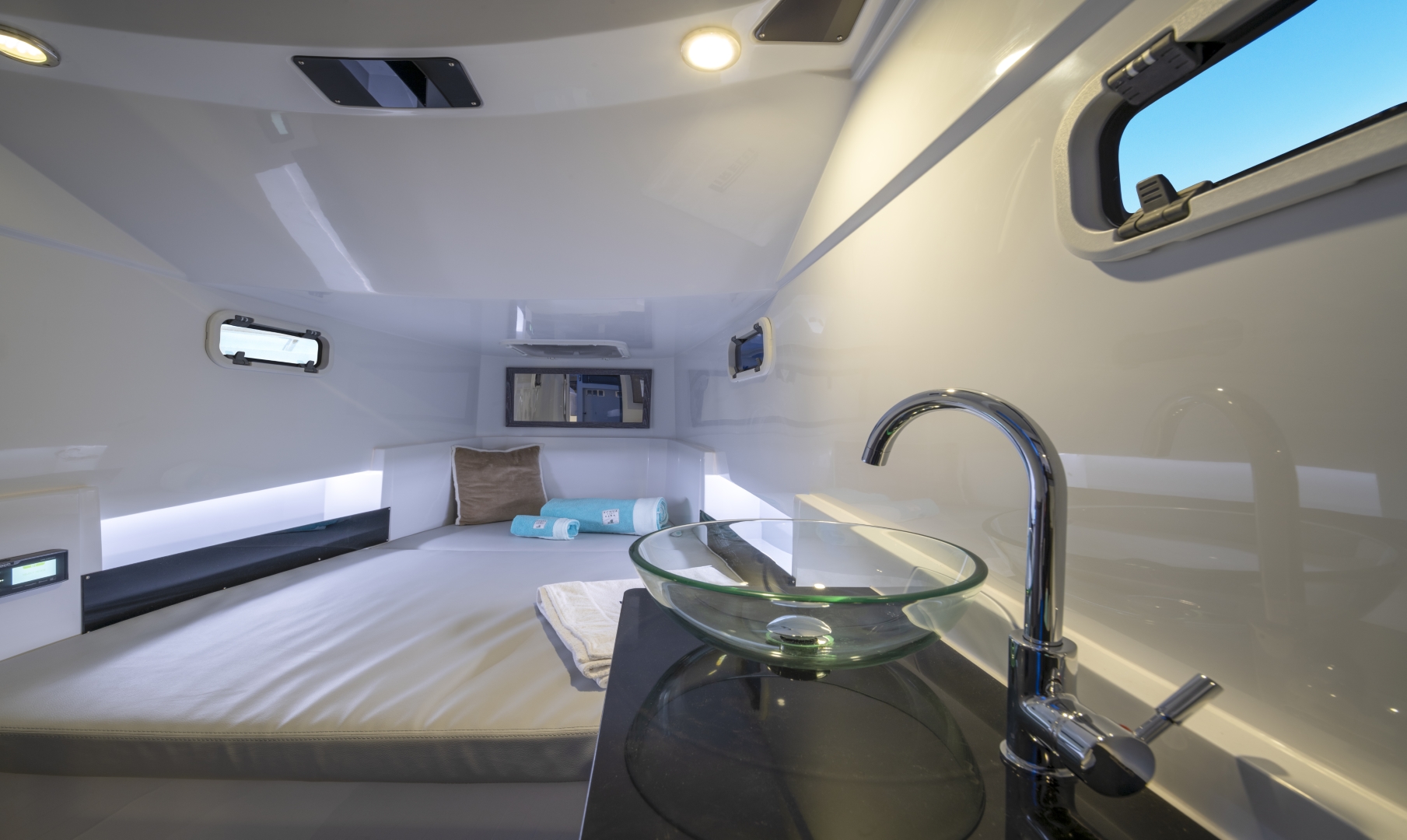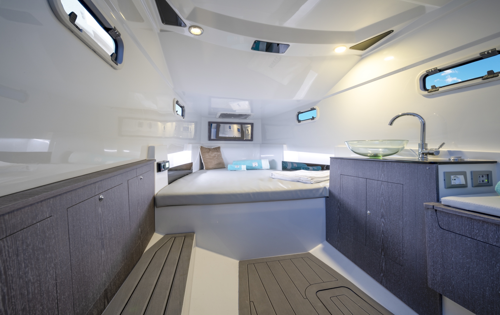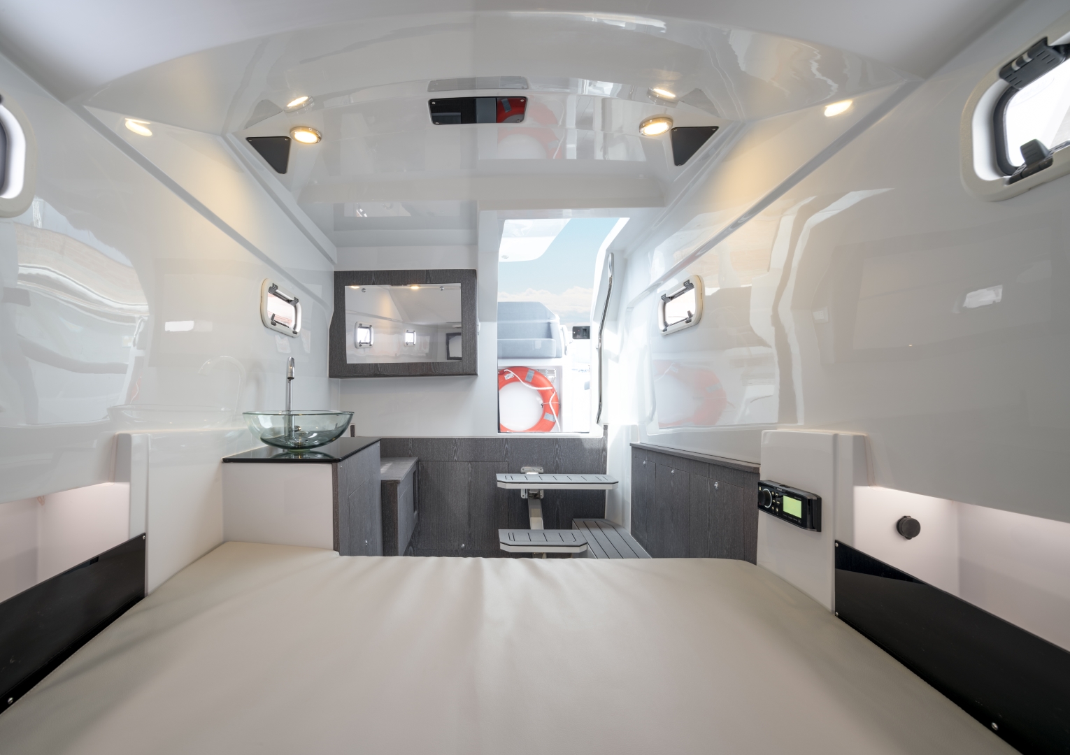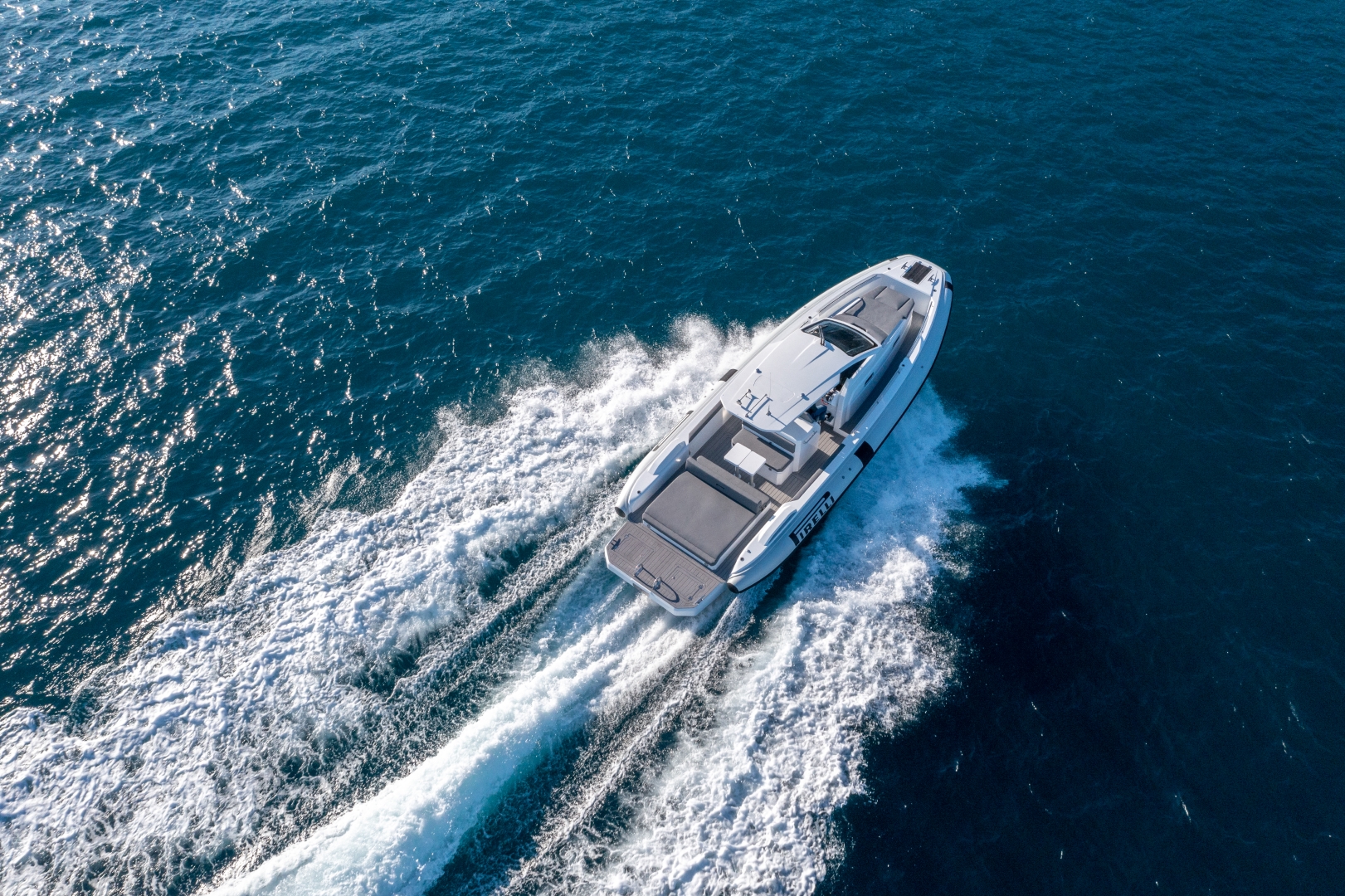 Spacious sunbathing areas, a welcoming cockpit, and wide walkways invite relaxed social moments, while the cabin offers practical accommodation for short stays. Built with advanced engineering and high quality materials, she delivers a smooth, responsive ride at any speed. Stylish, versatile, and full of character, the PIRELLI 35 perfectly blends sportiness, comfort, and contemporary lifestyle.