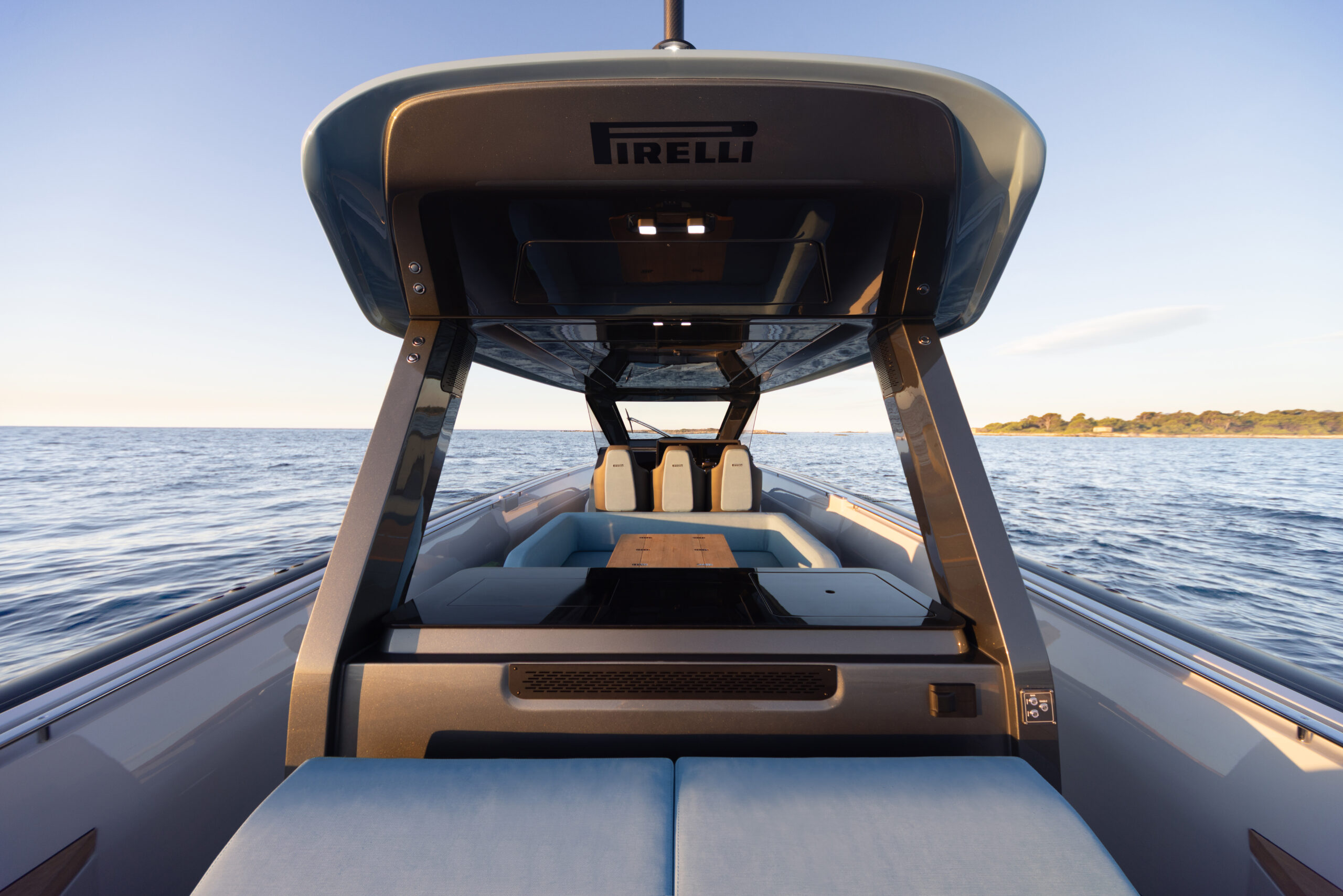 Available in both Open and Closed versions, the layout offers flexibility between an airy, outdoor-focused experience and a more protected environment, while wide walkways and generous social areas ensure effortless movement and comfort on board. With customizable configurations and refined interiors for short stays, the PIRELLI 47 perfectly balances sportiness with true usability, redefining what a high-performance luxury RIB can be.