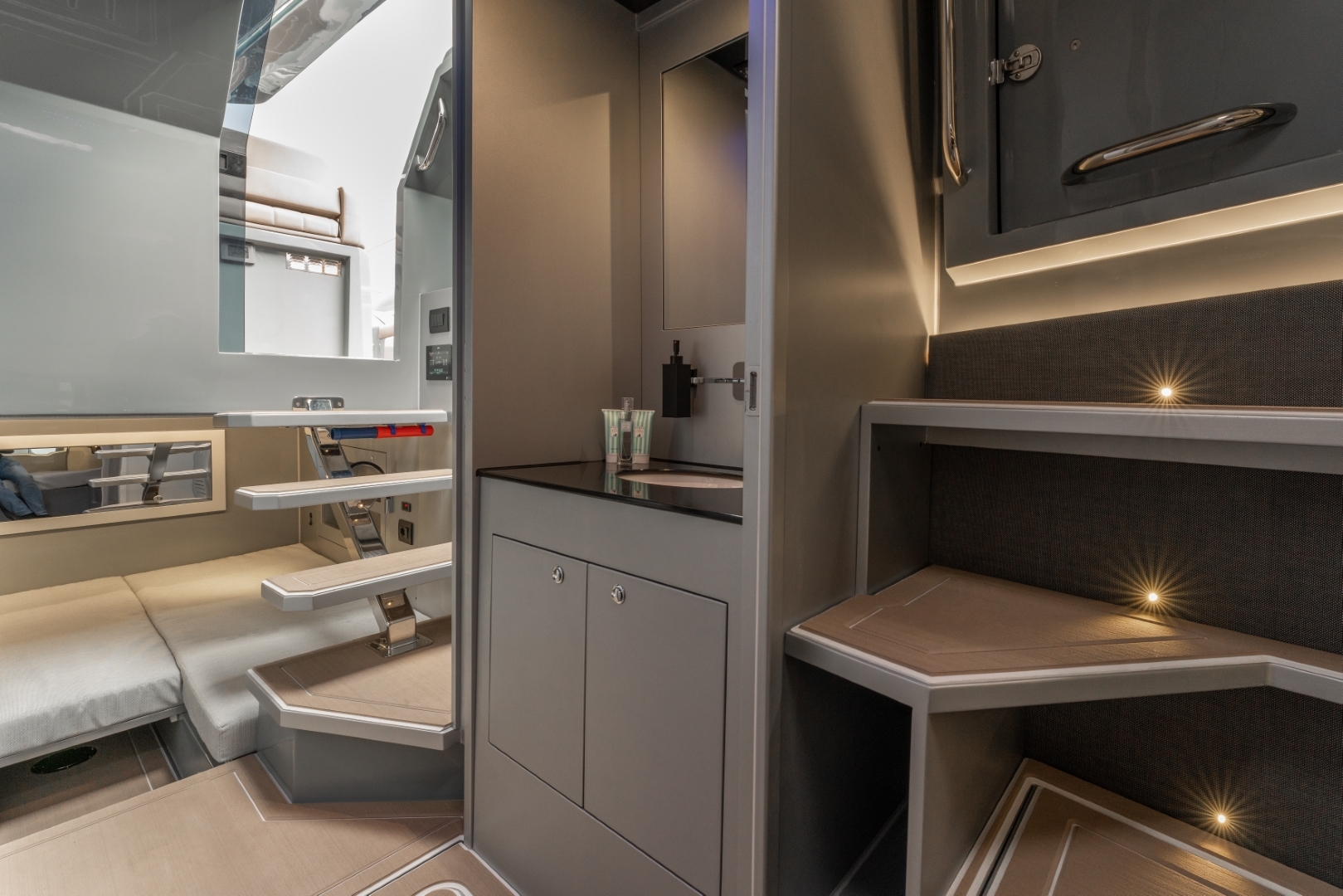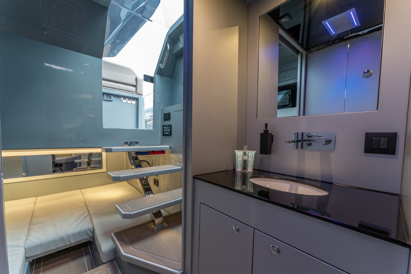 Wide walkways, expansive sunbathing areas, and a versatile cockpit create an inviting environment for both social moments and relaxed cruising, while the deep-V hull ensures a smooth, stable ride even at higher speeds. With flexible engine configurations and a layout focused on usability and flow, the PIRELLI 50 delivers a confident mix of performance, luxury, and everyday practicality on the water.