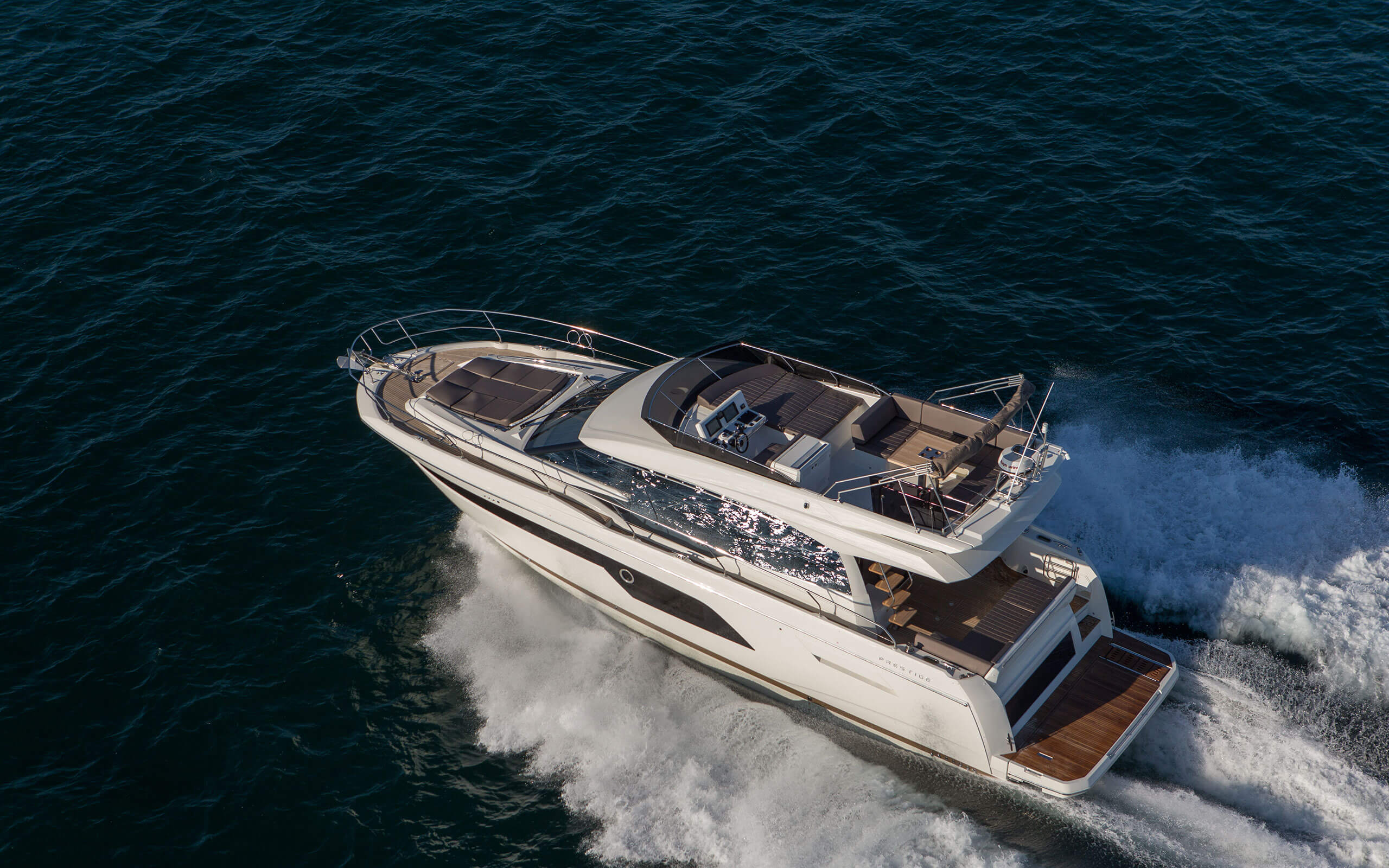 In a pure, dynamic style, the PRESTIGE 520 offers multiple zones for relaxing in comfort. First, we have the XXL Flybridge, unique on a motor yacht of 52 feet!