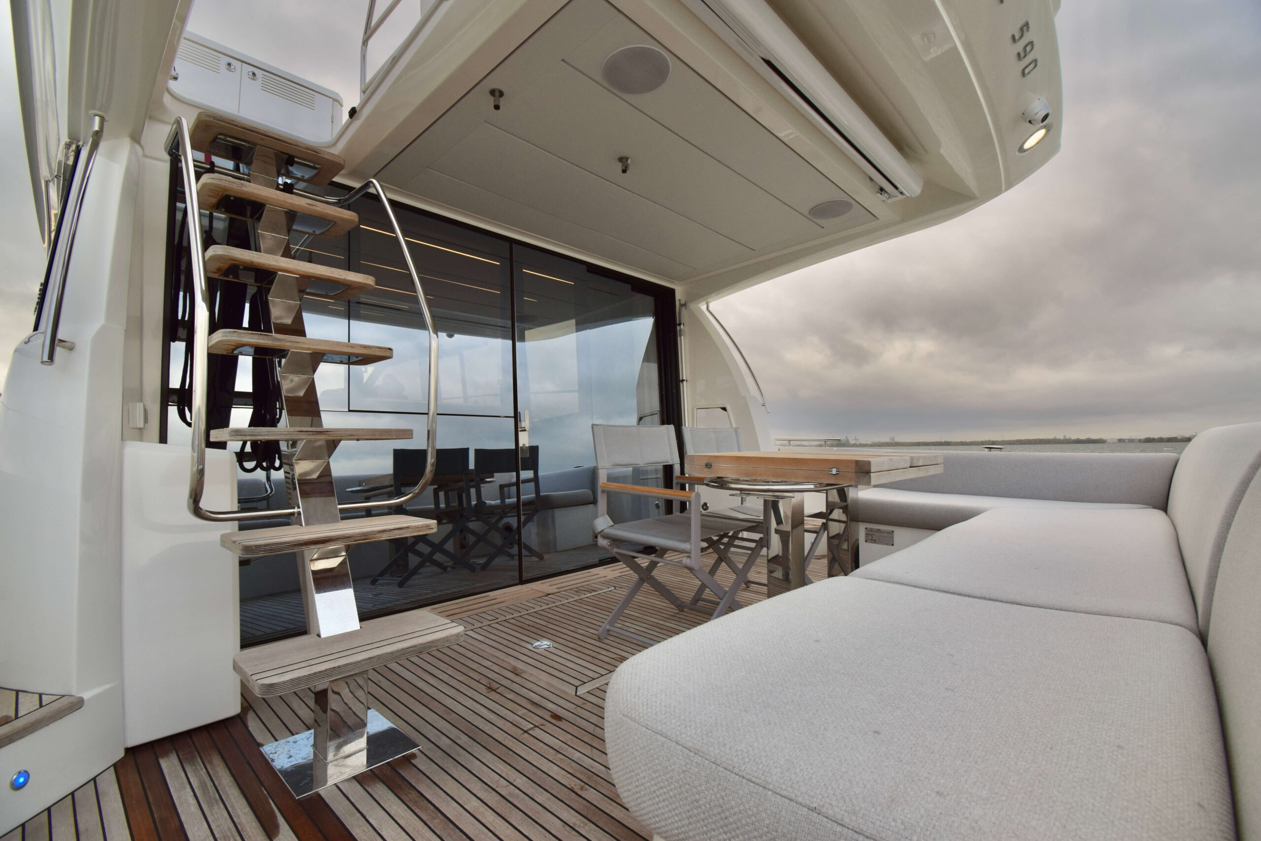 Now for sale, the most complete young pre-owned Prestige 590 Flybridge on the market.