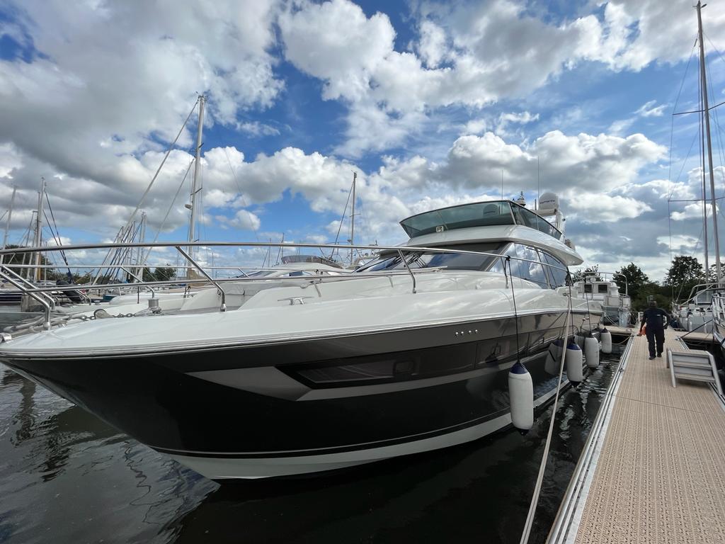 Prestige 630, now available at Lengers Yachts. The Prestige Yachts 630 flybridge can be recognized by her well-balanced exterior design with bold, clean lines and by the elegance of her bright interior layout. Generous living spaces include the immense saloon, three cabins with private head and shower compartments, including a centre-line owner’s cabin, and the flybridge, for absolute comfort on board.