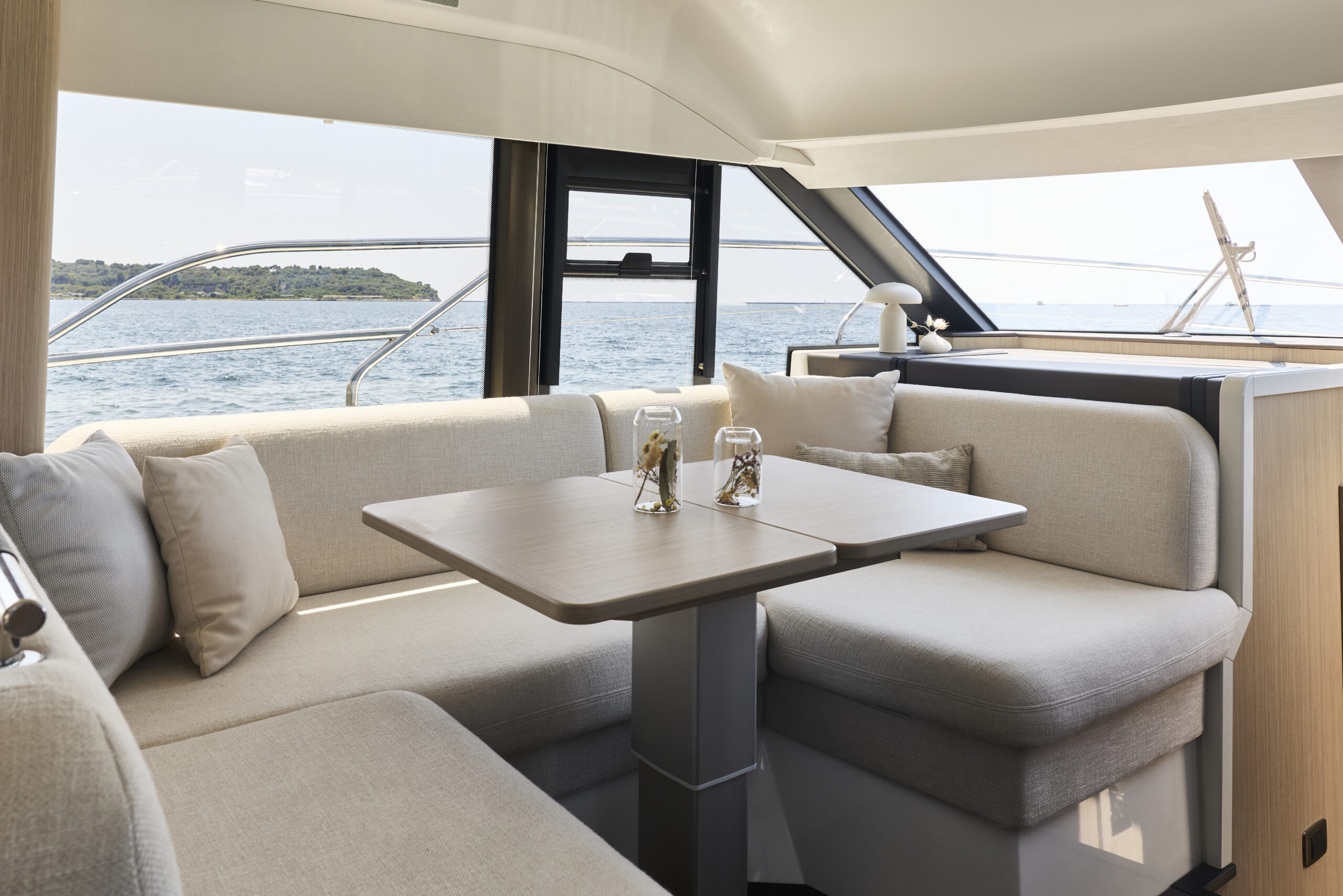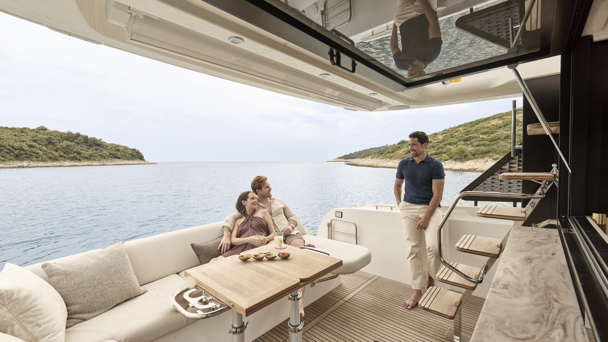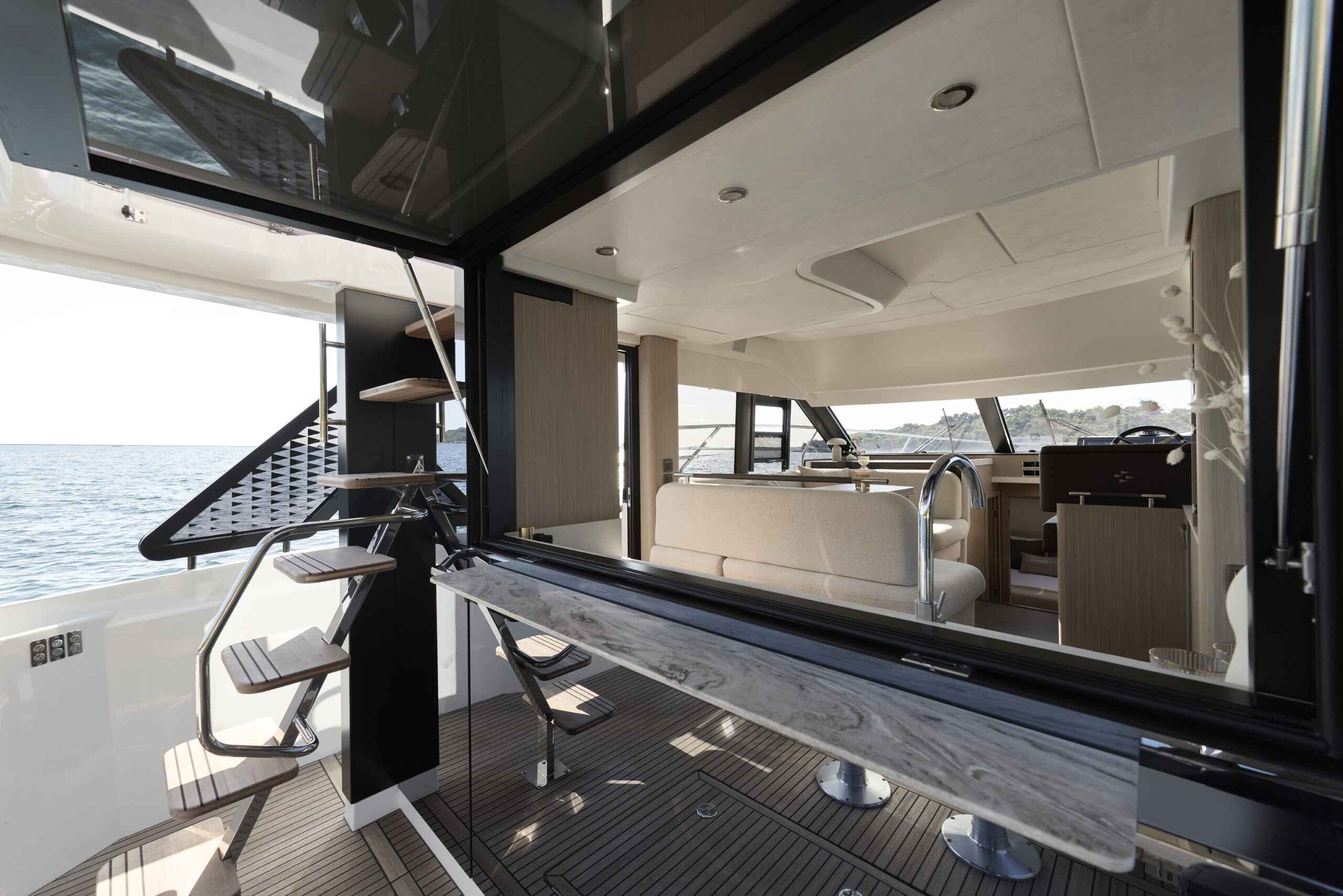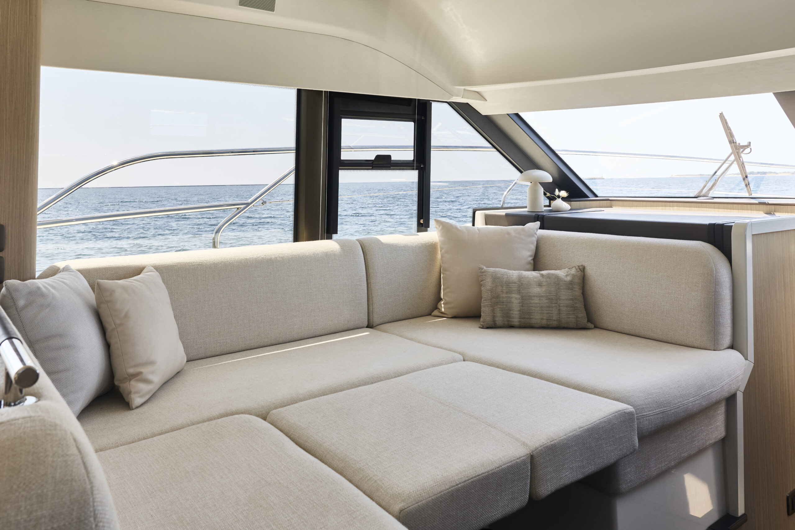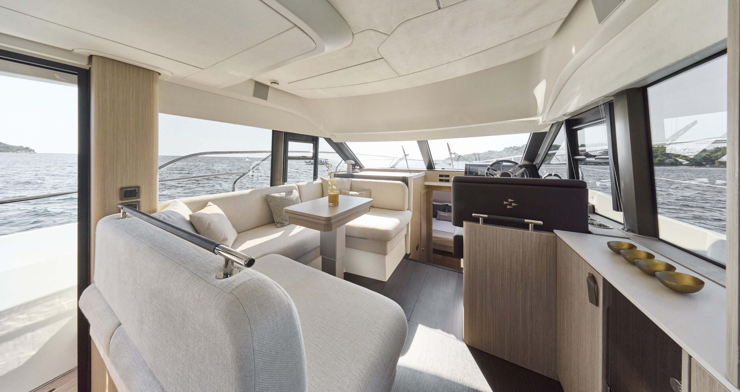Shaped by bold decisions, this 43-foot model welcomes you aboard with the elegance and refinement distinctive of the new generation of the F-Line.