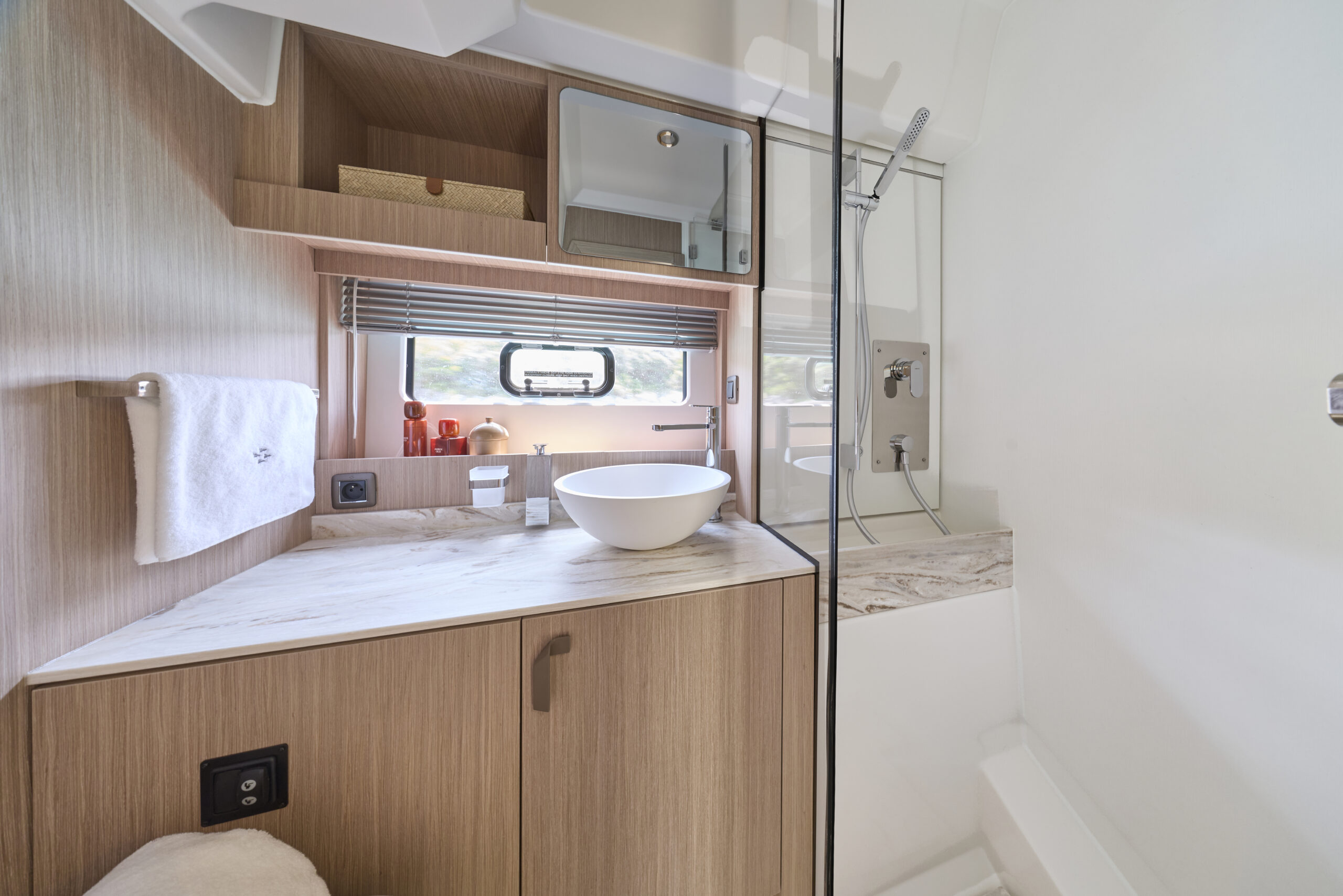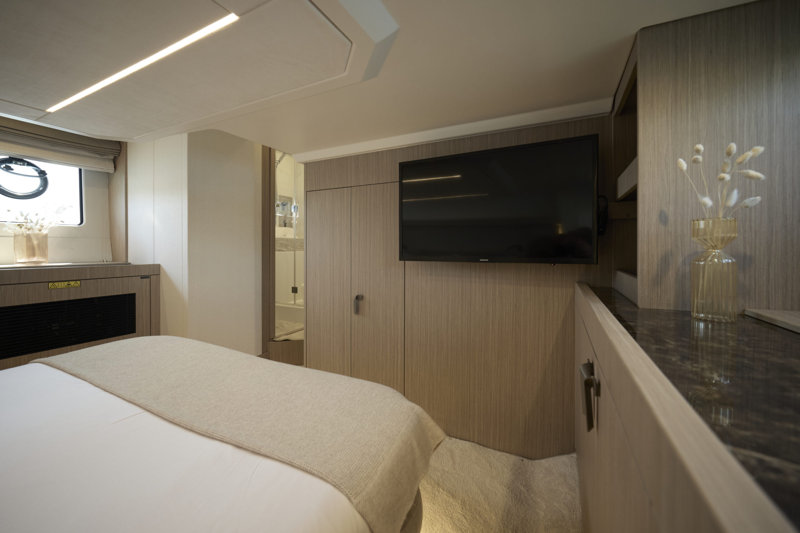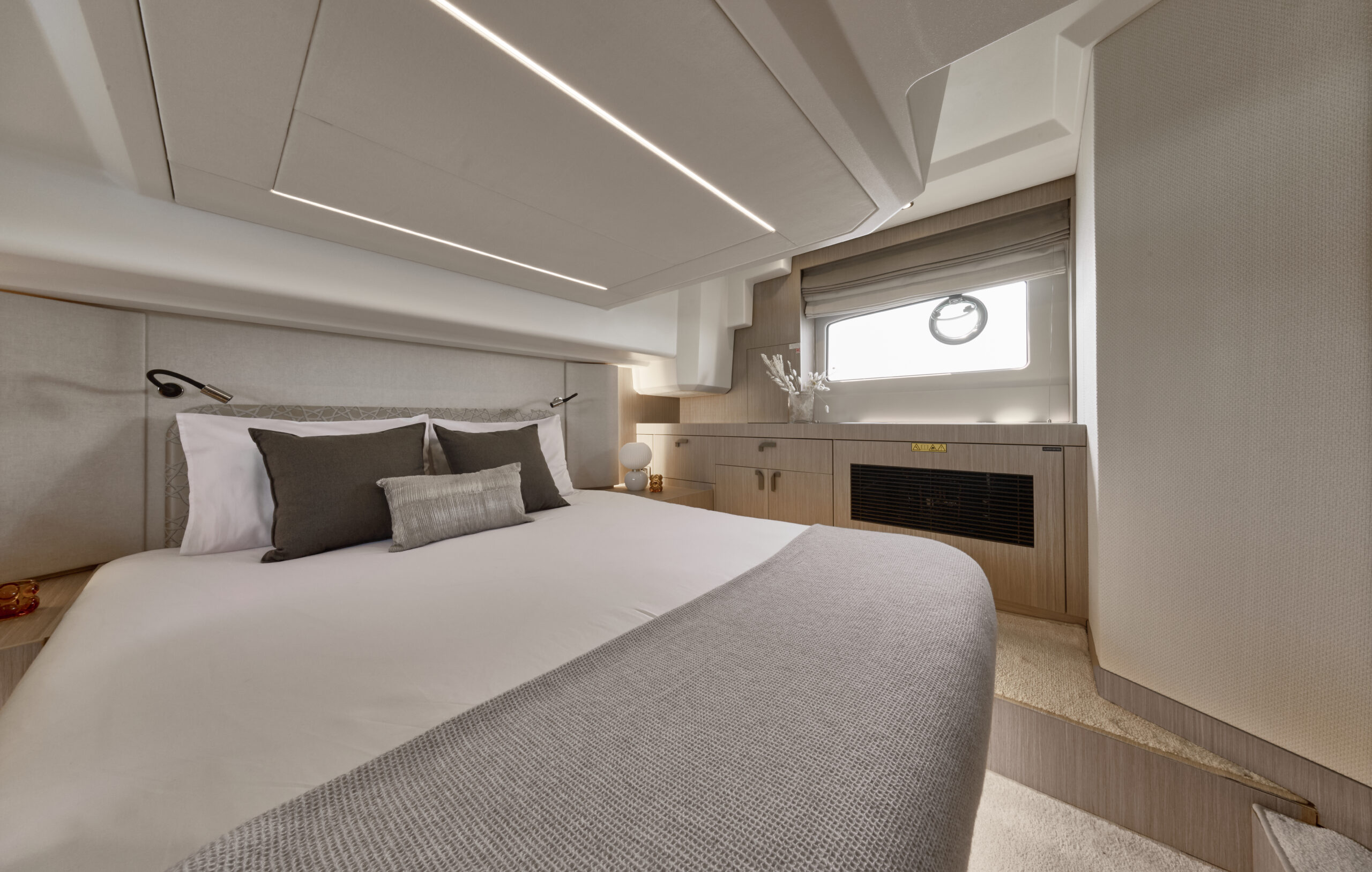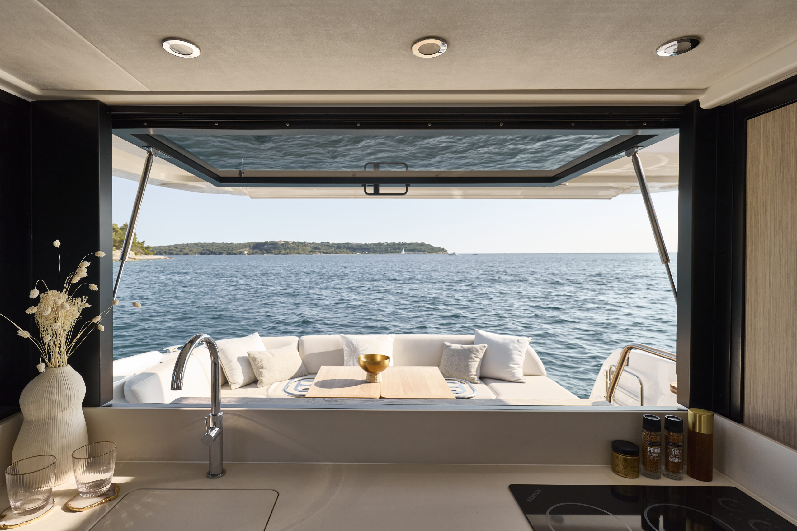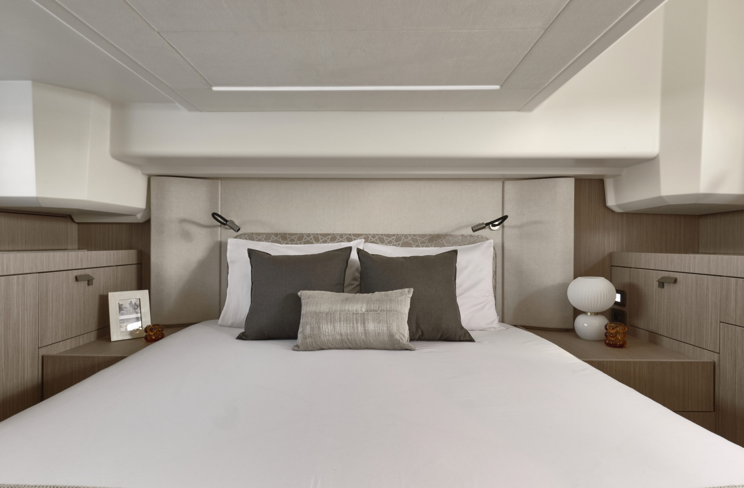 Shaped by bold decisions, this 43-foot model welcomes you aboard with the elegance and refinement distinctive of the new generation of the F-Line.