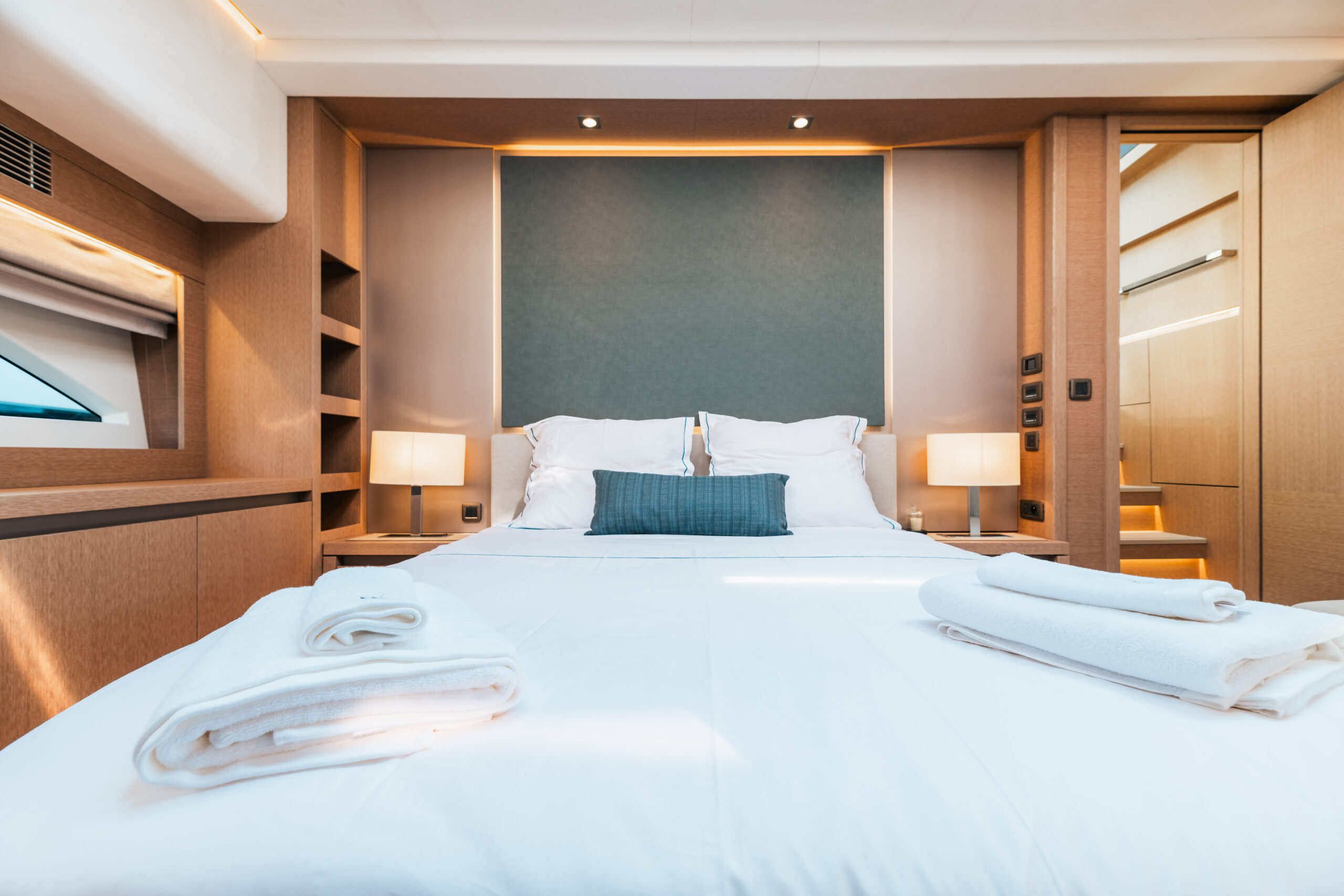 With its spacious layout, modern technology, and high-quality finishes, this yacht is perfect for both relaxing cruises and exciting adventures at sea. The interior is elegant, with plenty of natural light and comfortable seating, making it perfect for extended stays on board. With its sleek design and powerful engine, the Prestige 690 offers an incredible cruising experience. The large flybridge, panoramic salon, and luxurious master suite guarantee comfort and relaxation on board.