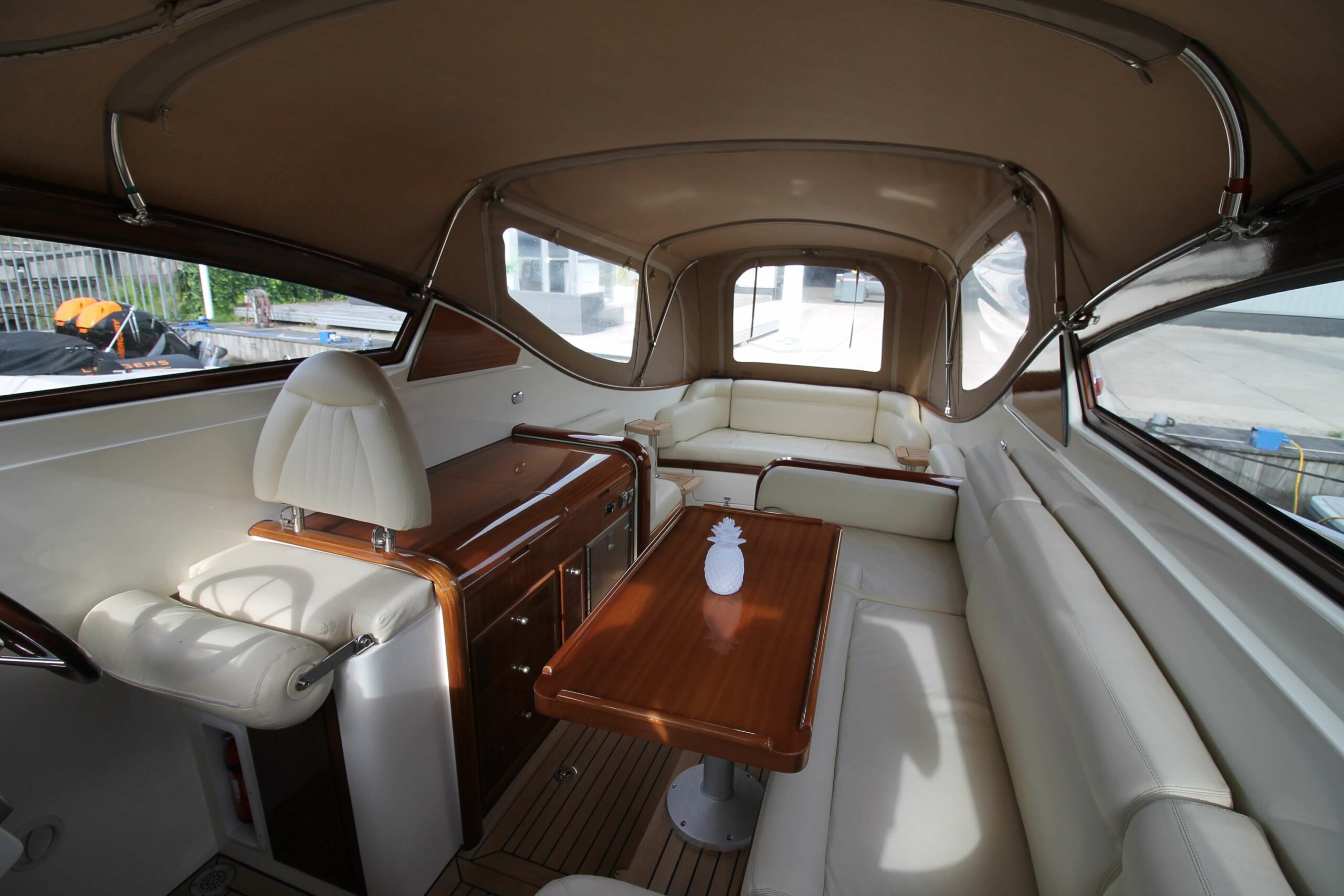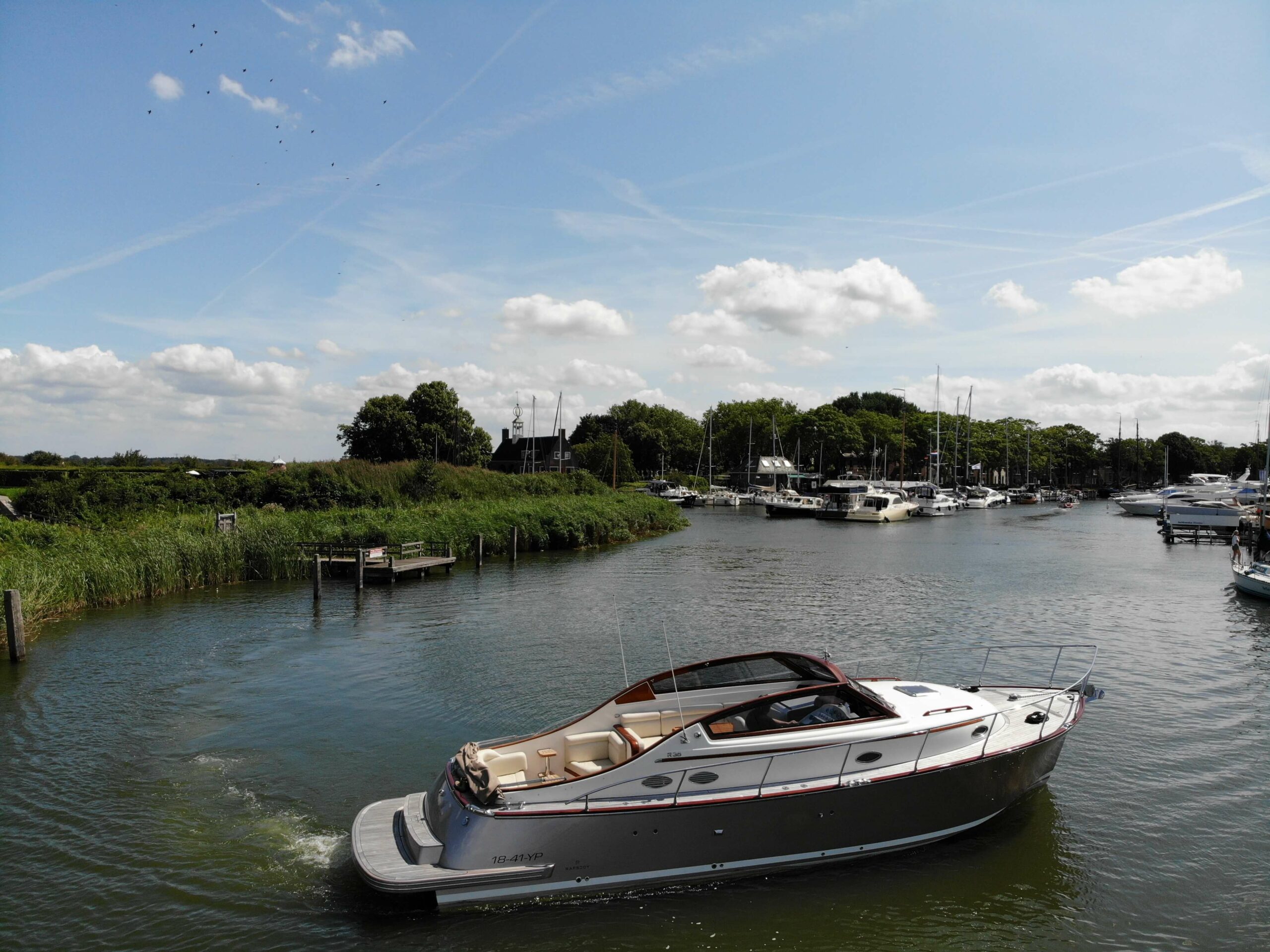 Rapsody R36 Cabrio from 2009 for sale. The Rapsody R36 Cabrio excudes class. She is more than seaworthy and built for top speeds up to 36 knots. The yacht is equipped with a Volvo Penta D6 Diesel engine with 330 hp and has a proven underwatership. The R36 is the ultimate ‘couple’s cruiser’ but thanks to the second cabin also suitable for families and / or guests. The shower and toilet area is generous, just like the open cockpit with an outdoor kitchen.