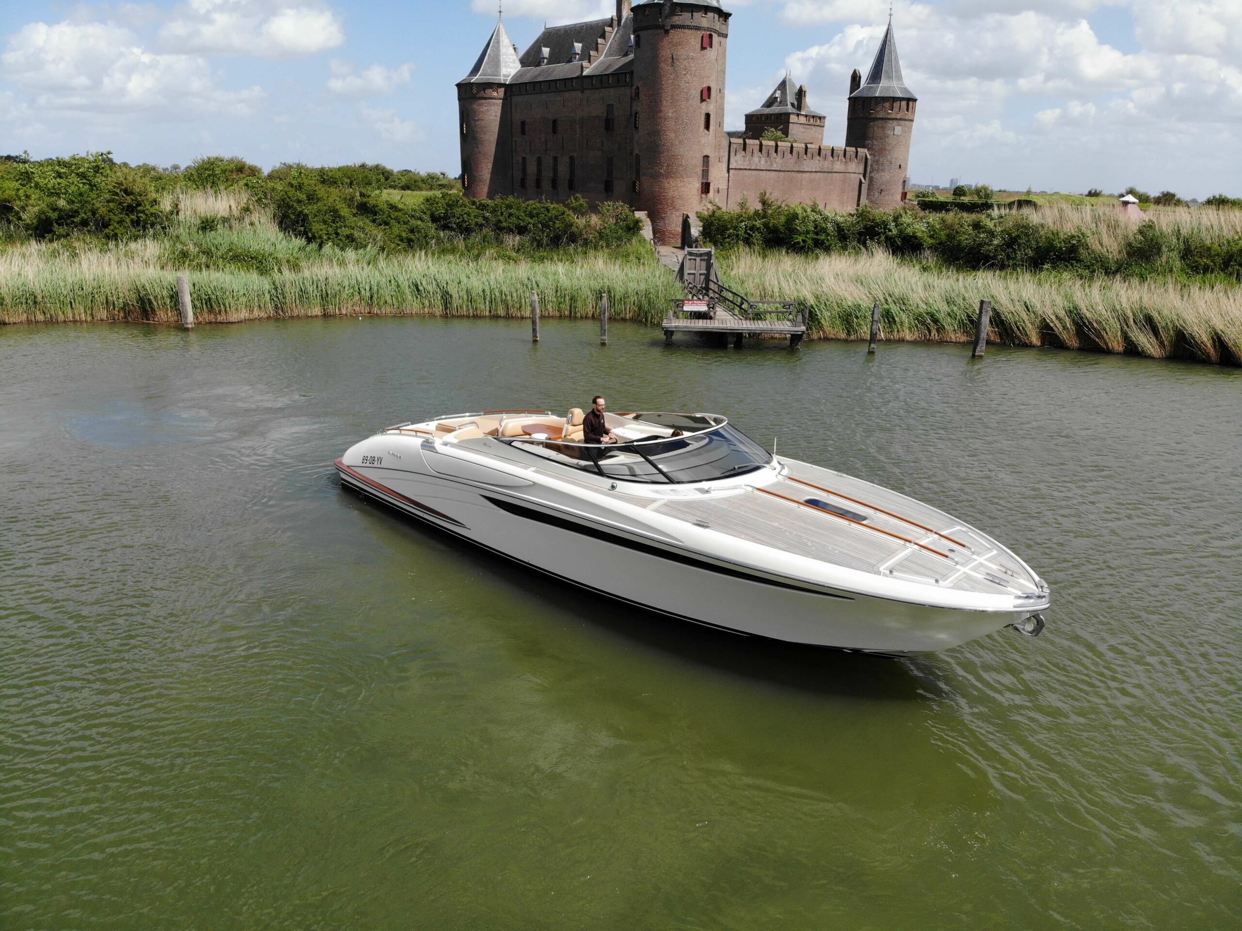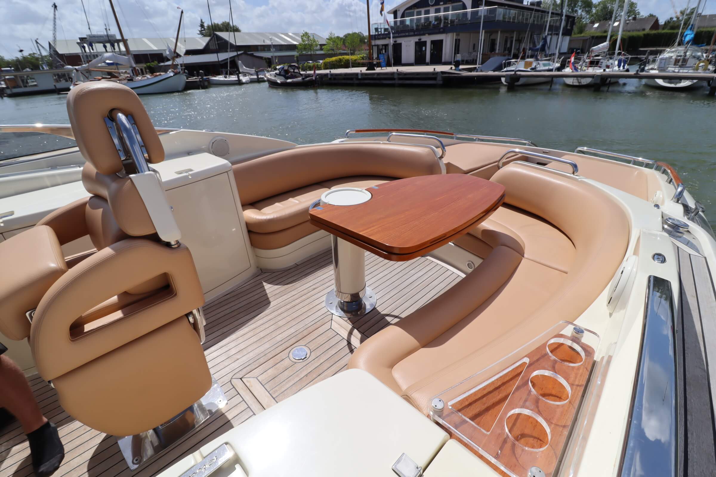 Riva 44 Rivarama for sale. La dolce vita – stunning Riva 44 Rivarama from the year 2007 in the beautiful color combination Riva Cream and caramel biscuit cushions. Very well maintained, new teak fore deck with teak on side walks, interior finished in matte Canaletto walnut. Ensuite cabin with galley, bathroom and mid ship 2nd (crew) cabin for 1 person. Dutch flagged, Dutch owned and available for a visit.