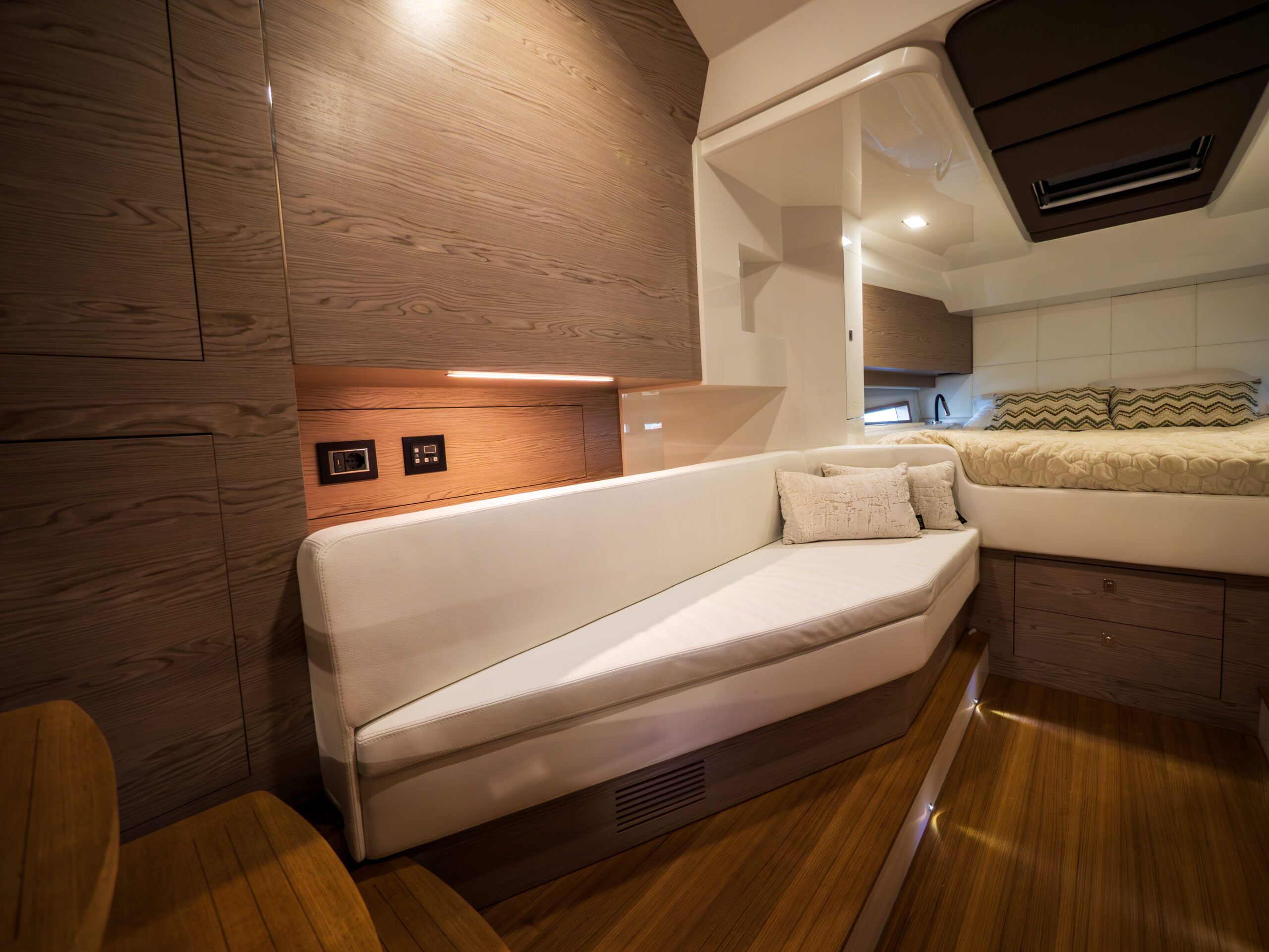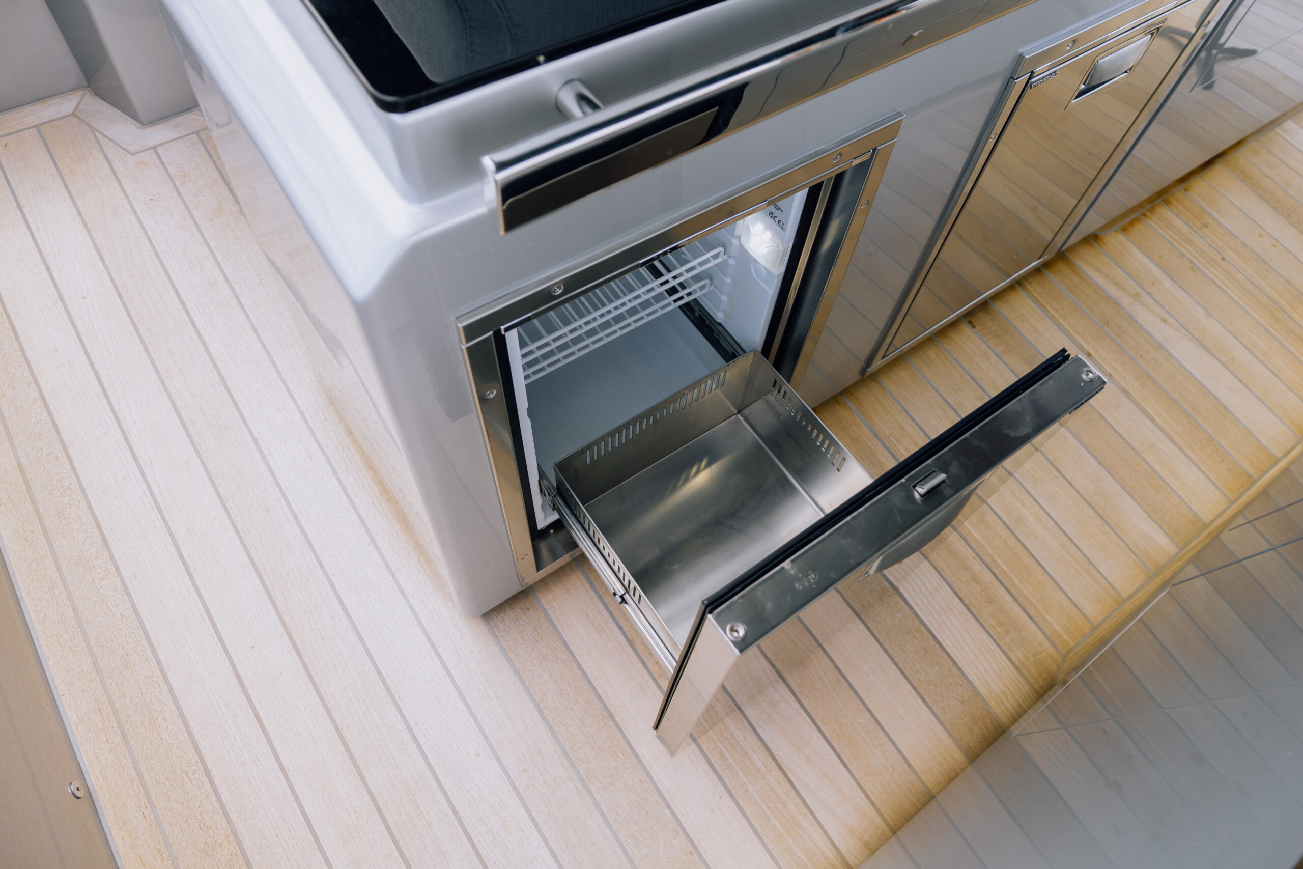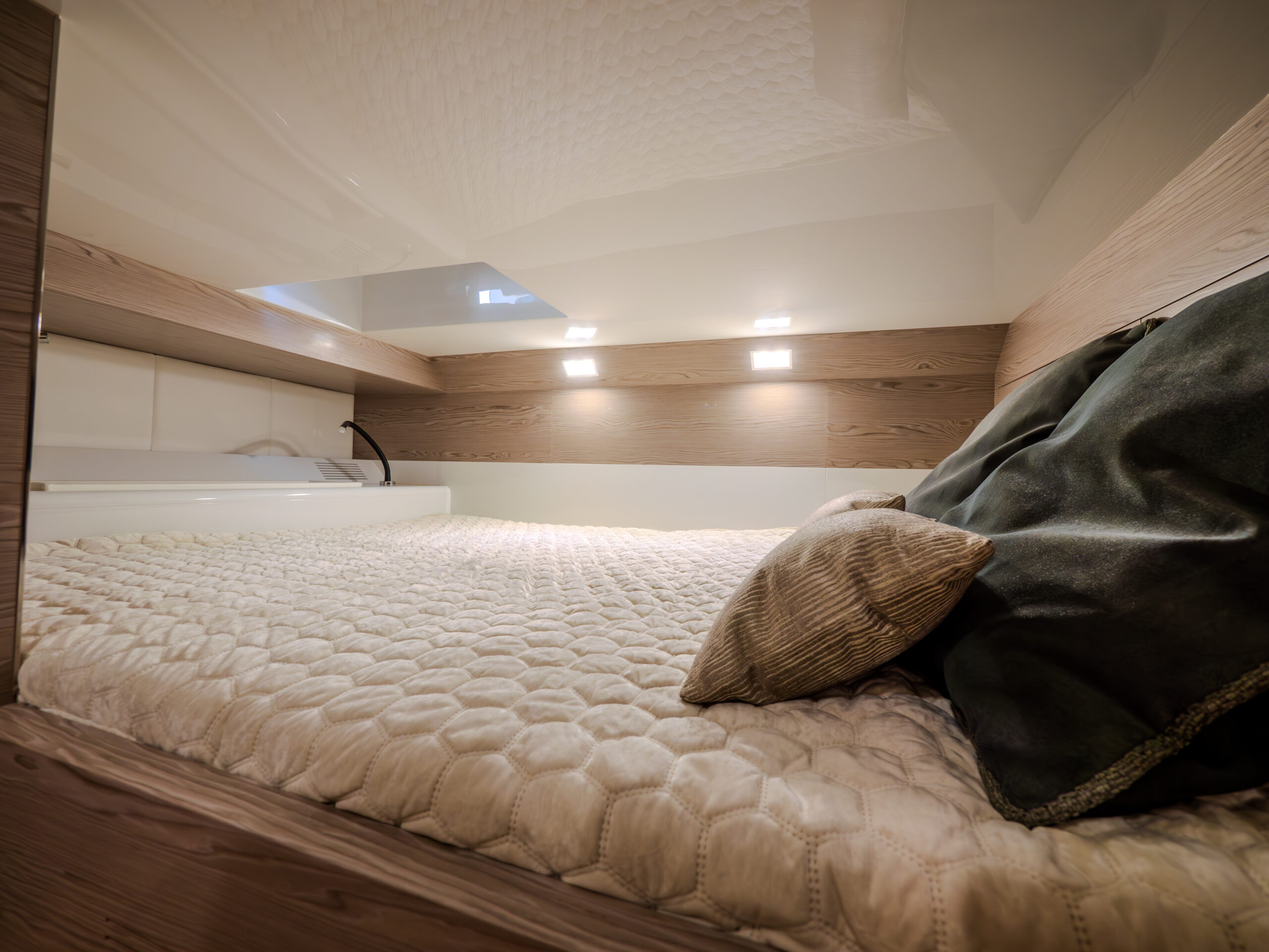 On board, the intelligent use of space stands out. Every detail has been designed to be rational, elegant and comfortable, ensuring a pleasurable cruising experience for both short trips and longer adventures. Social areas are spacious yet intimate, blending practicality with luxury, making her the perfect yacht for entertaining, relaxing and exploring new waters.