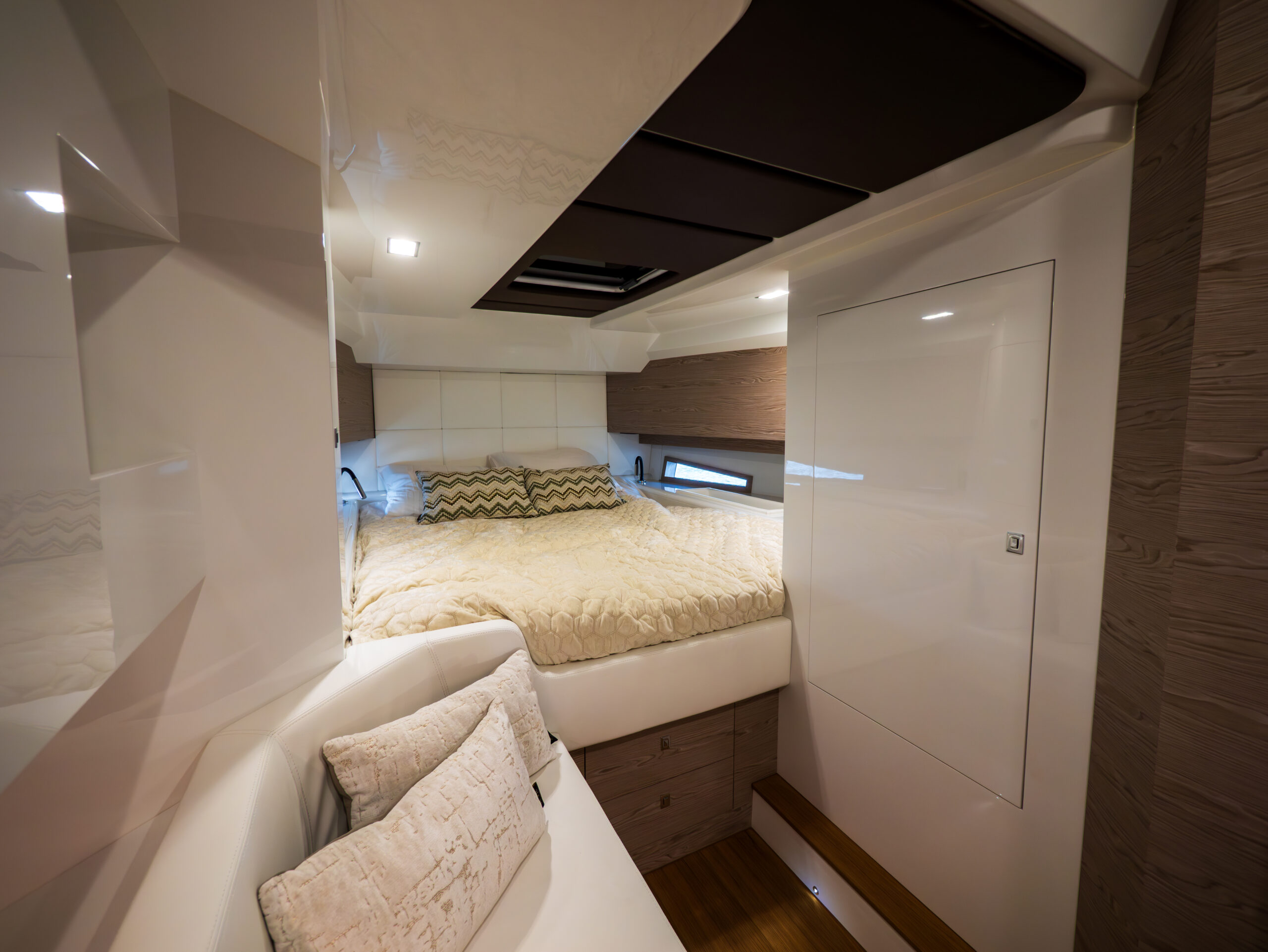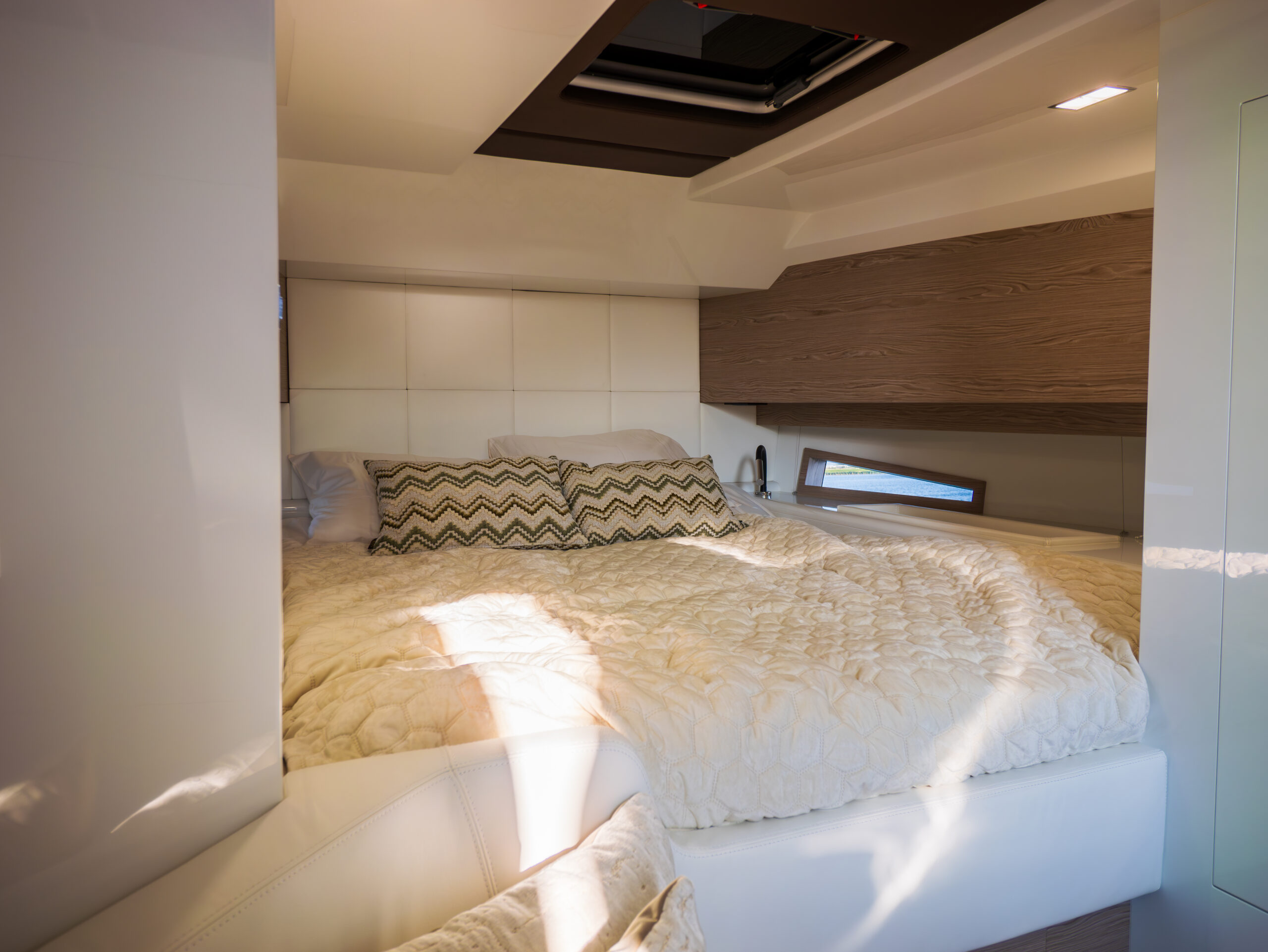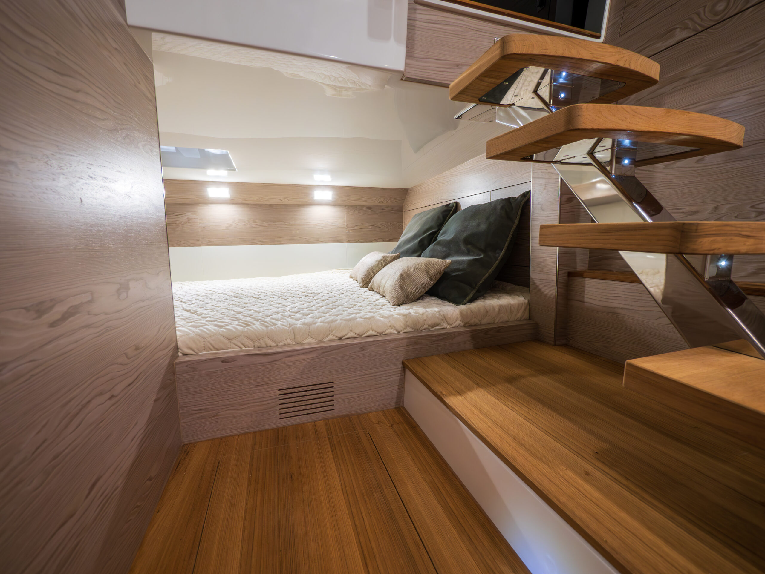 On board, the intelligent use of space stands out. Every detail has been designed to be rational, elegant and comfortable, ensuring a pleasurable cruising experience for both short trips and longer adventures. Social areas are spacious yet intimate, blending practicality with luxury, making her the perfect yacht for entertaining, relaxing and exploring new waters.