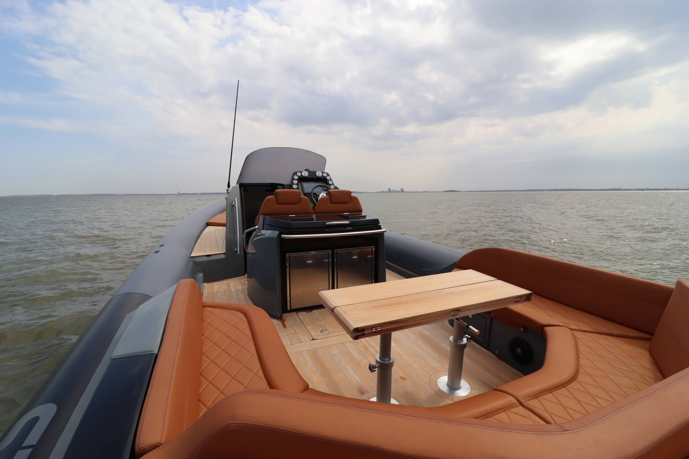 This Sacs Strider 13 is equipped with the largest V8 gasoline engines possible at Sacs Marine this impresses everyone. She has a top speed on heavy seas of 41 knots. Comfortable cruising at heavy seas guaranteed!