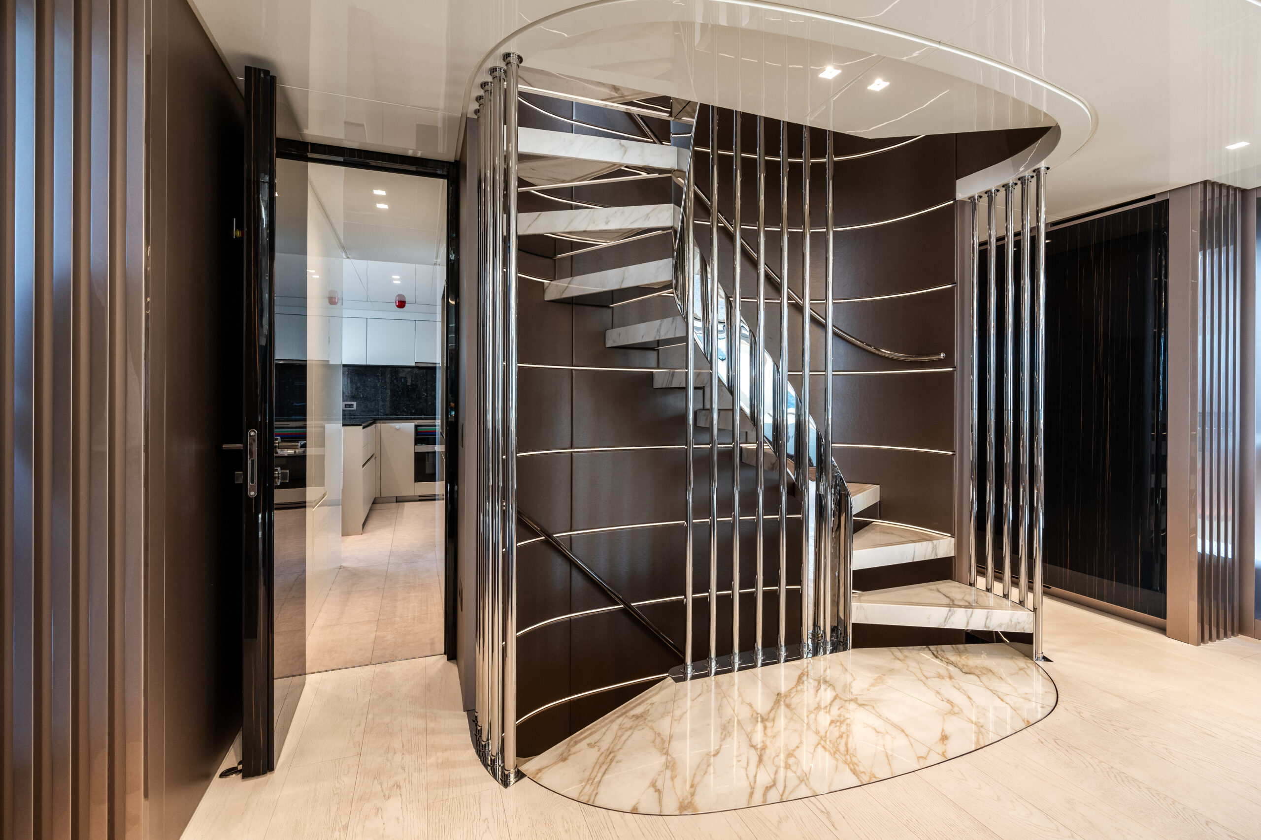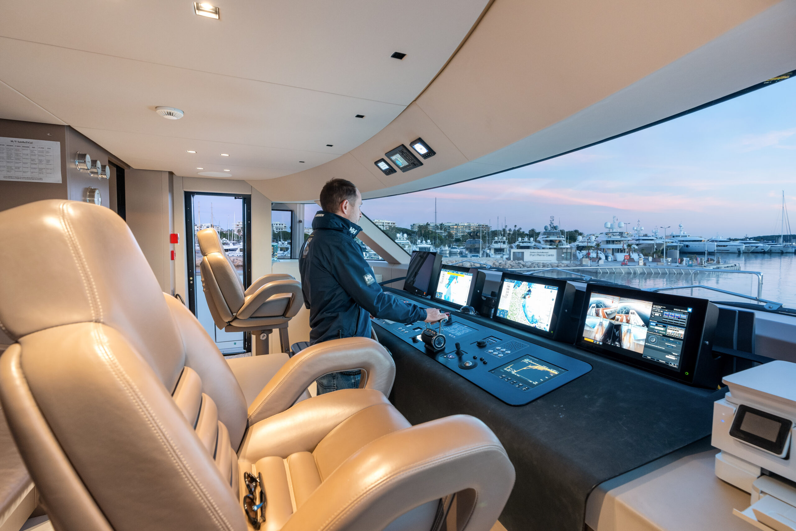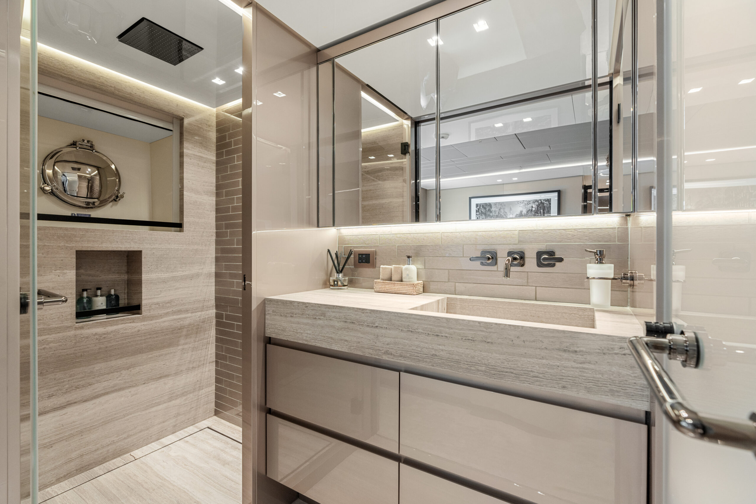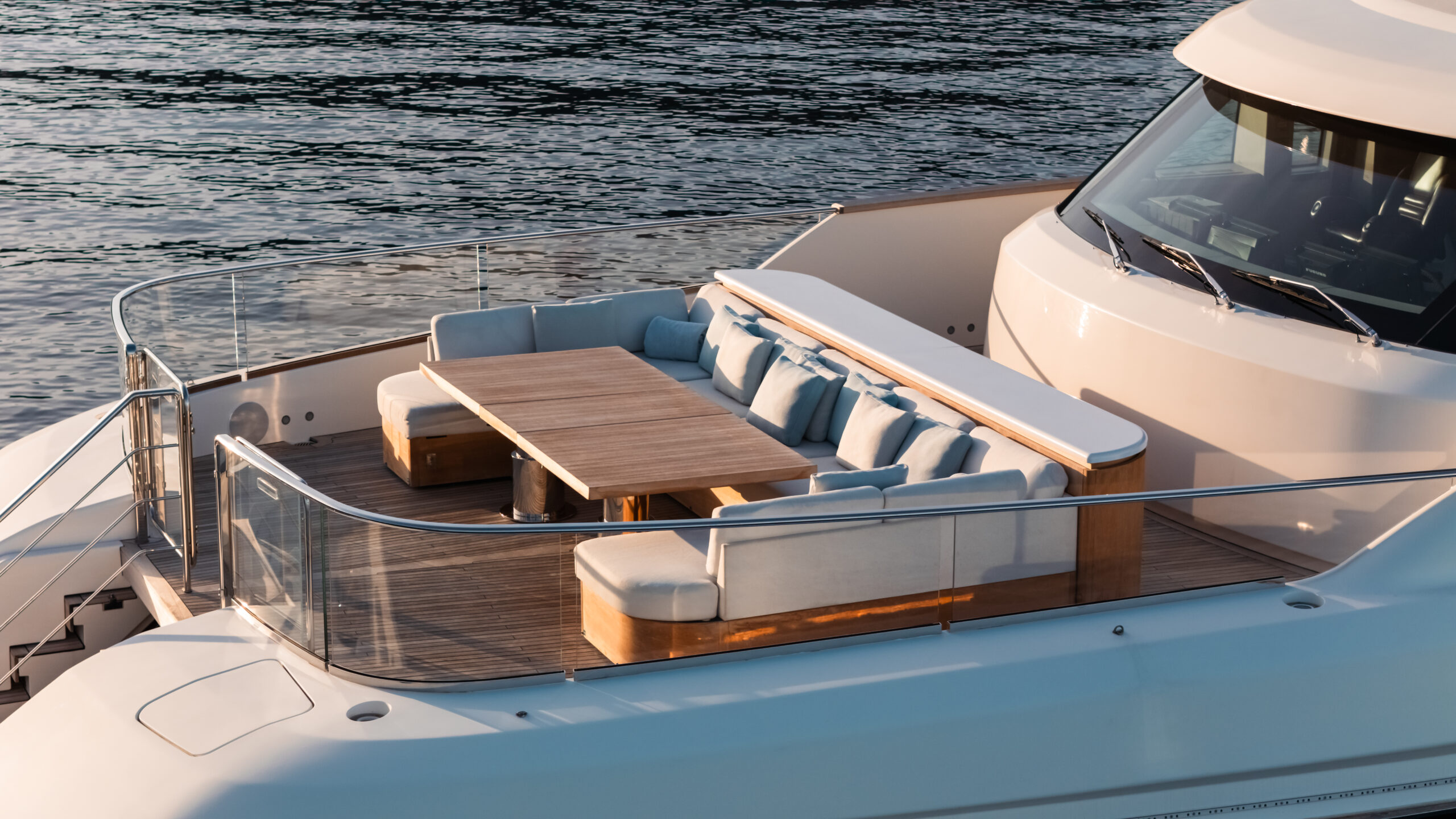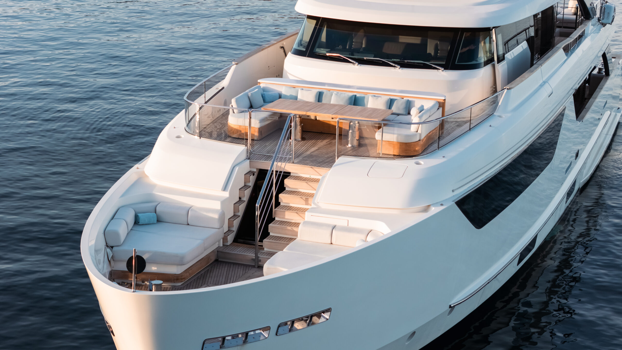 Registered under the Maltese commercial flag, she offers complete flexibility for private cruising or charter operation. Her asymmetric upper deck and wide-body layout create an exceptional sense of space and seamless flow between interior and exterior areas. The three-sided beach club with fold-down terraces transforms into a spectacular, water-level living area which is unmatched in her class. The owner’s suite on the main deck features private access to the foredeck lounge, providing an intimate and sheltered retreat.