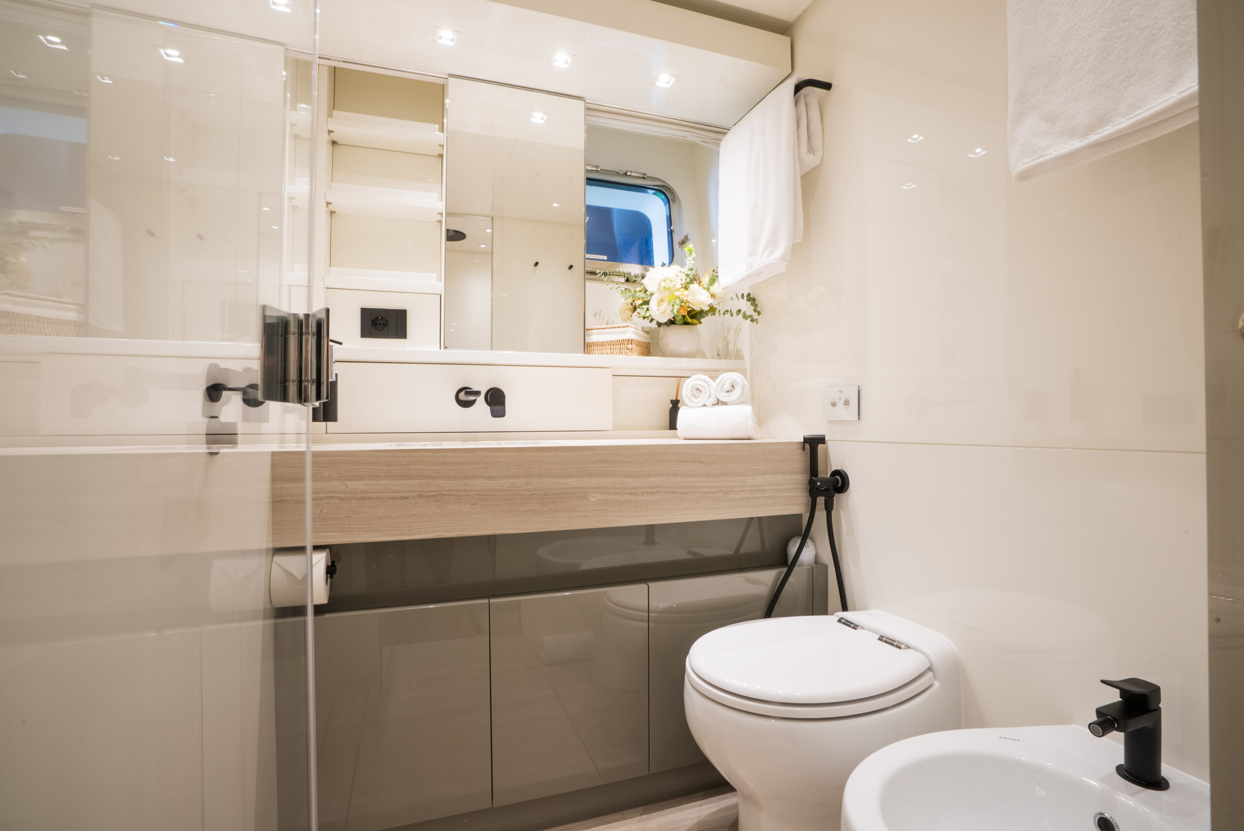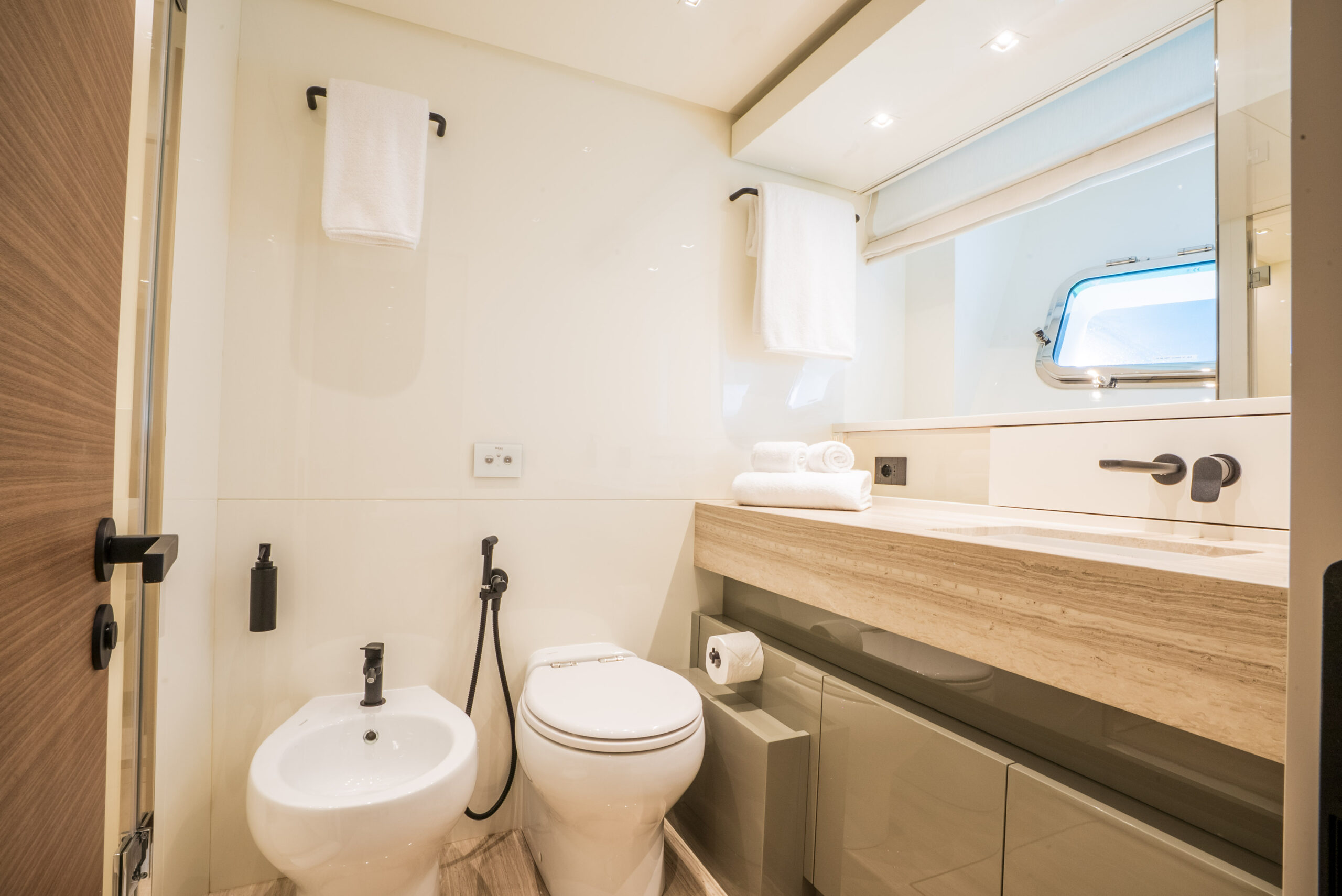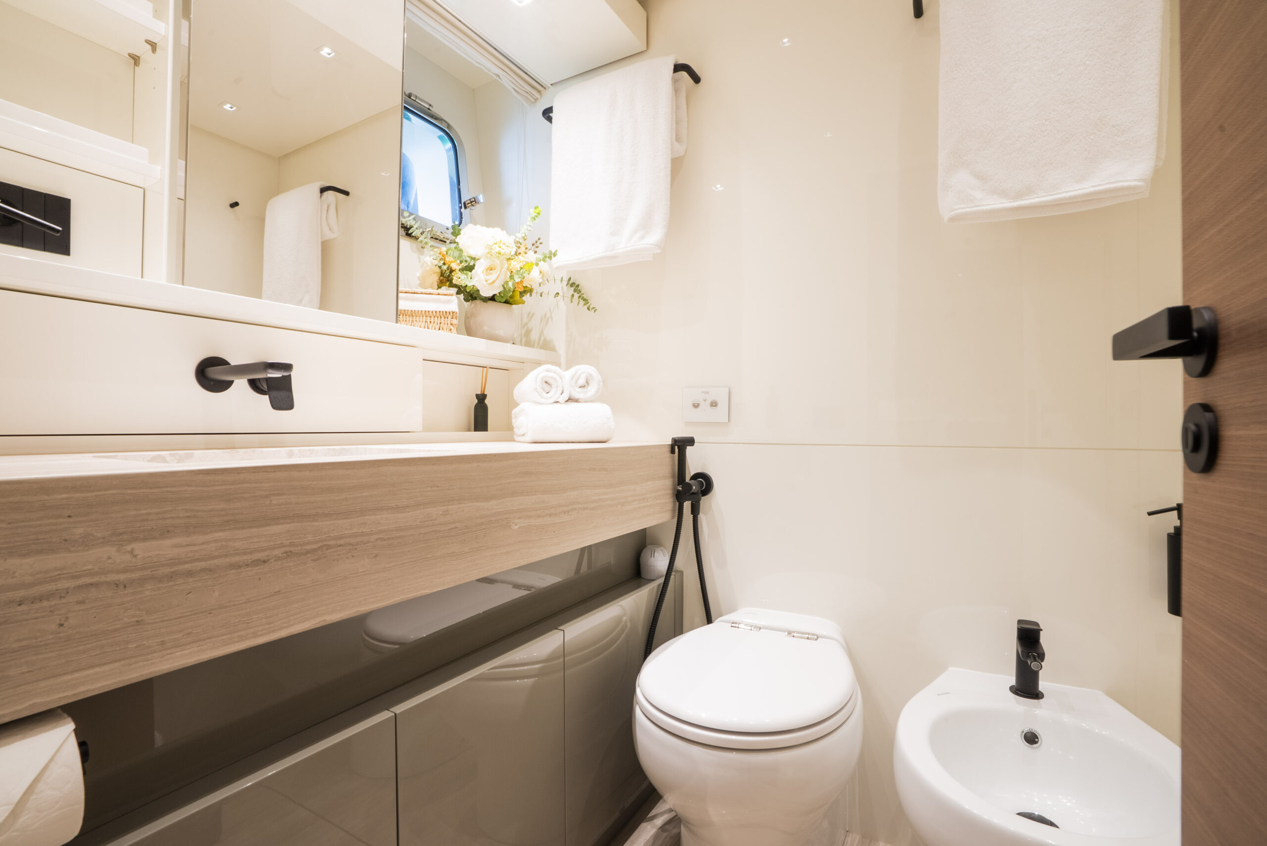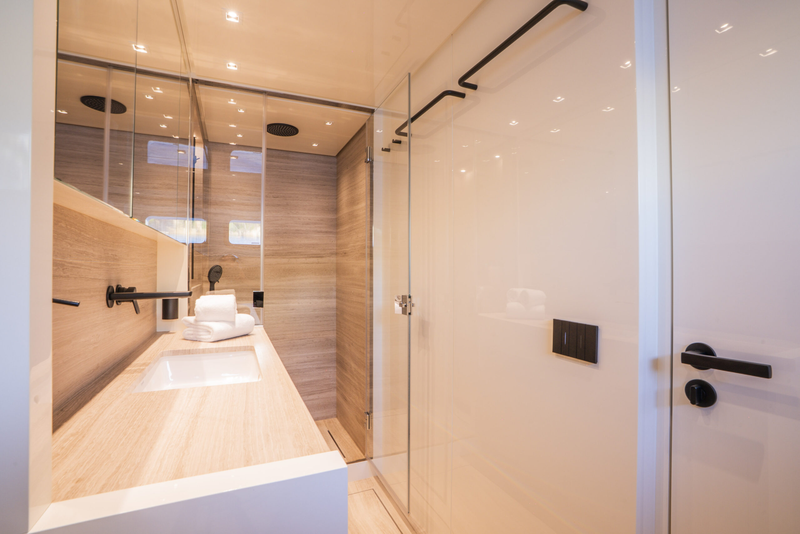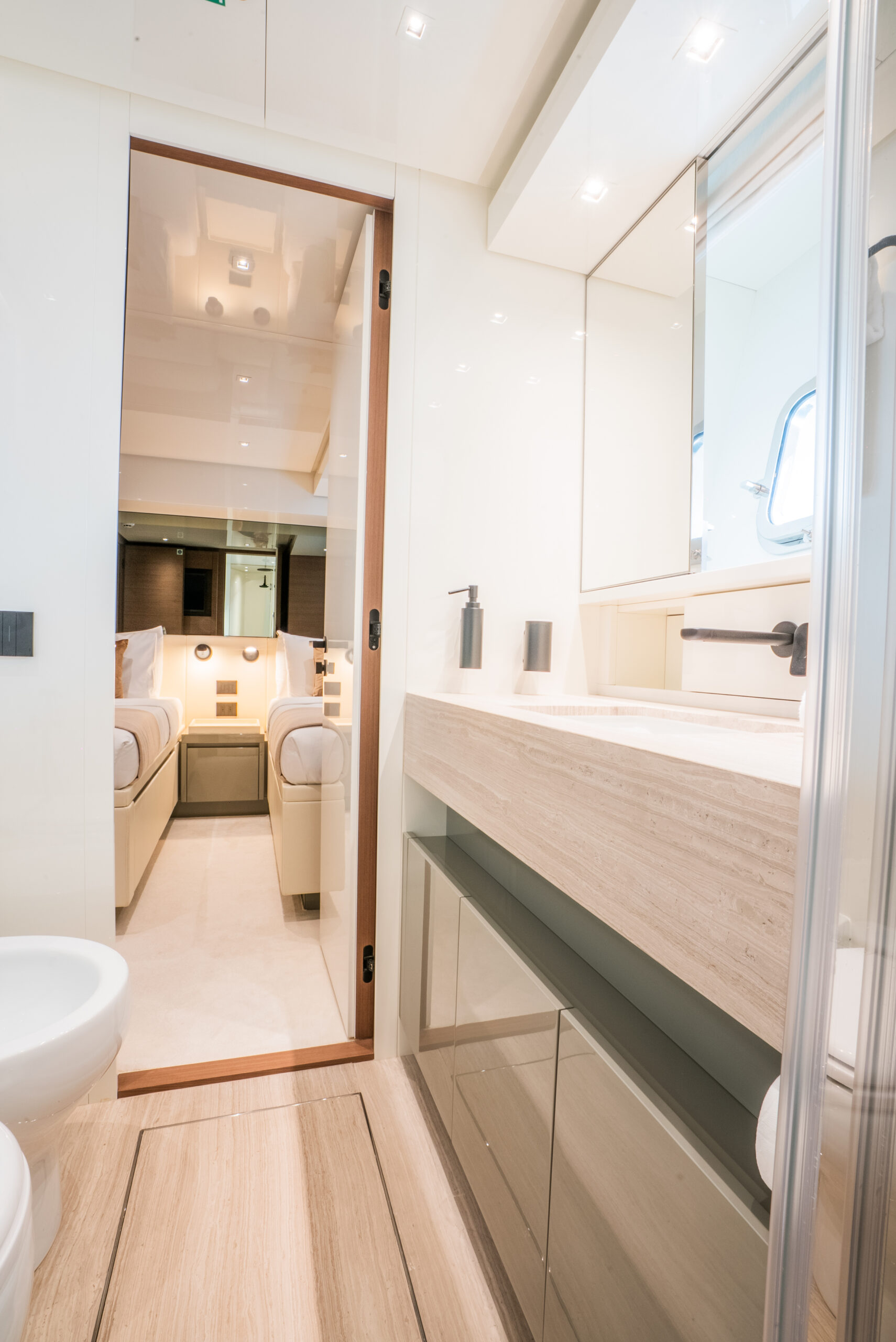 Experience the breathtaking sea views from the comfort of the salon sofa, thanks to the larger side windows cut into the bulwarks that allow for an abundance of natural light. The spacious salon on the SL86 is wider, brighter, and fresher, without compromising the iconic sober lines that Sanlorenzo is known for.