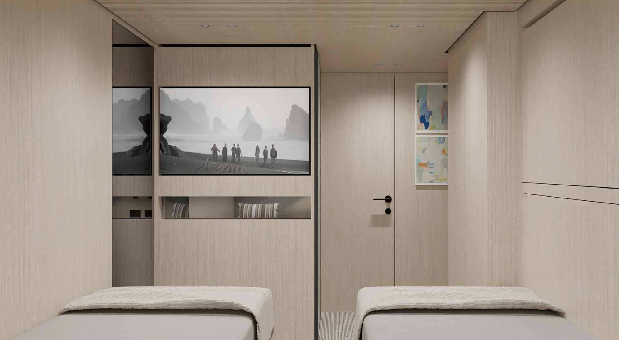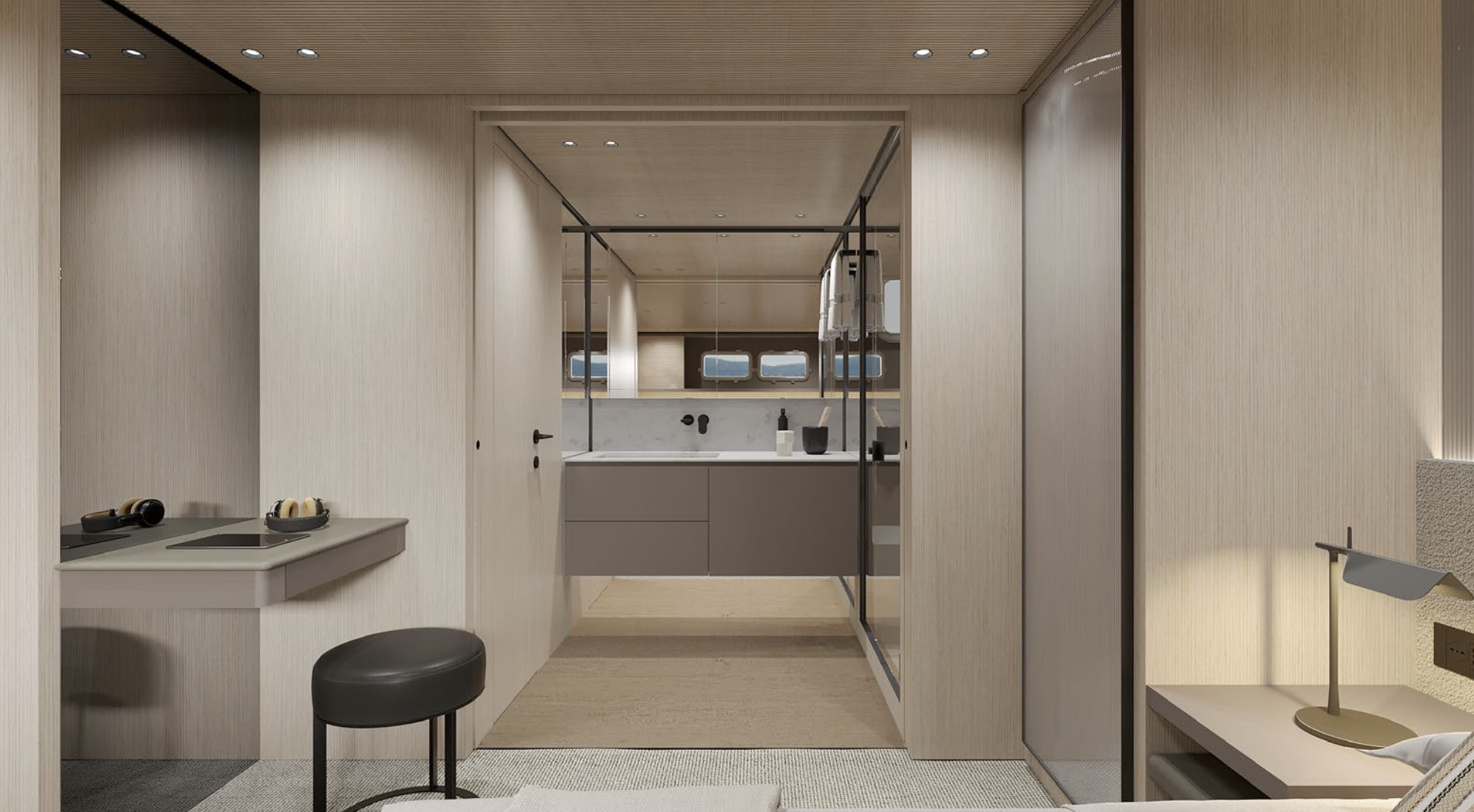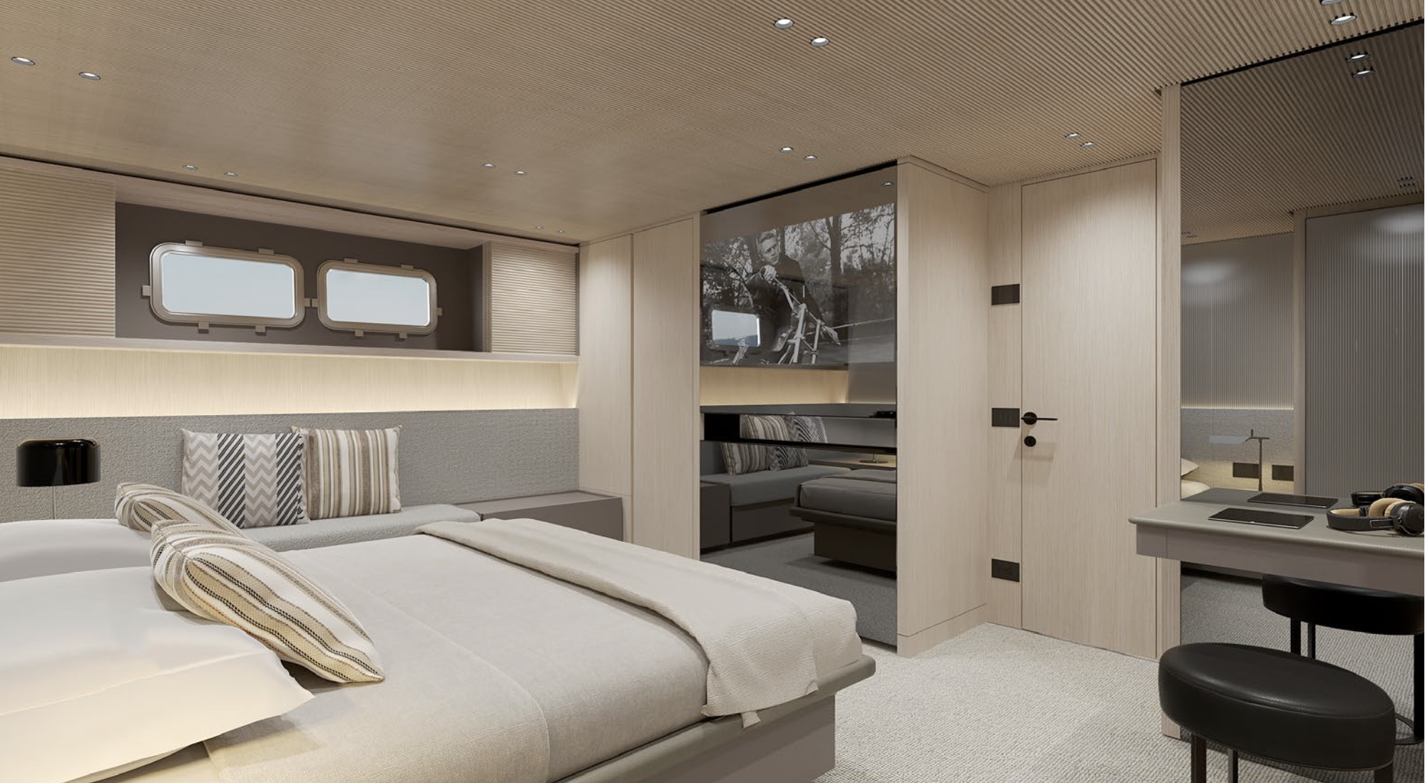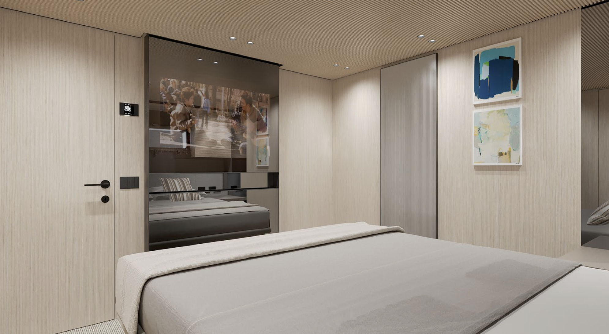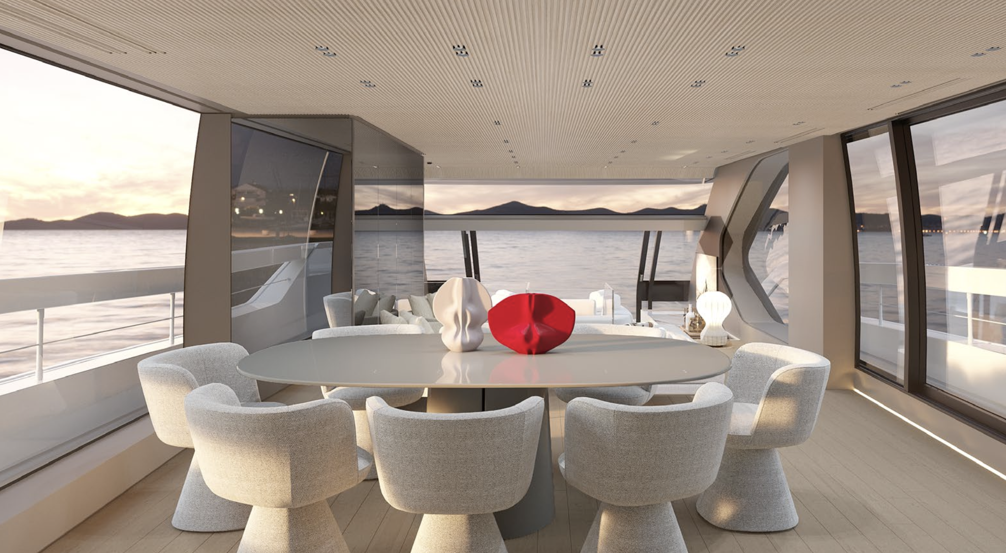 The water jet propulsion ensures top efficiency and comfort at every speed range and the solar panels supply power to run the hotel load. A new generation of yacht is born.