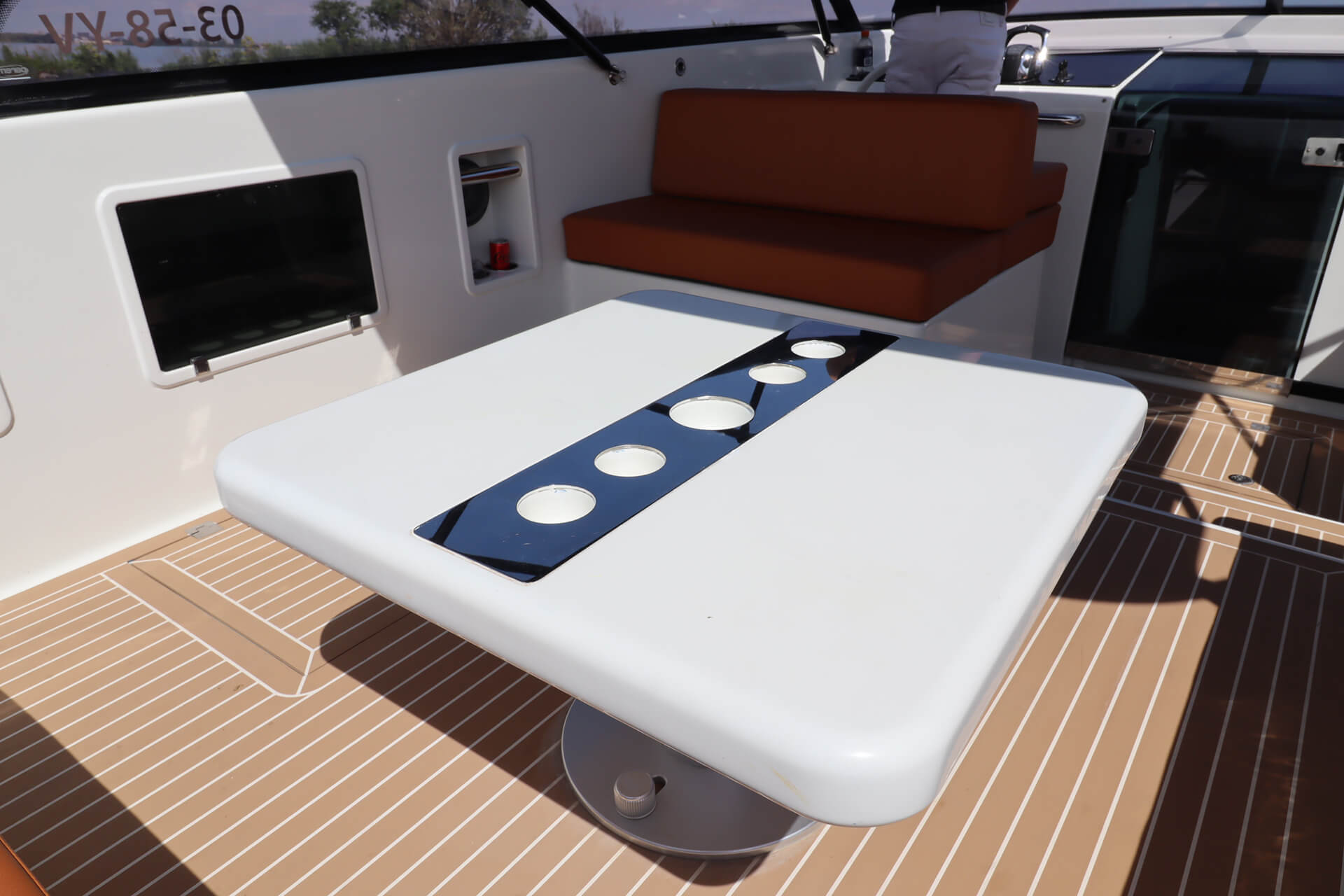 Turn your sporty boat into a comfortable overnight cruiser. The VanDutch 40’s cabin features a convertible queen-size bed.